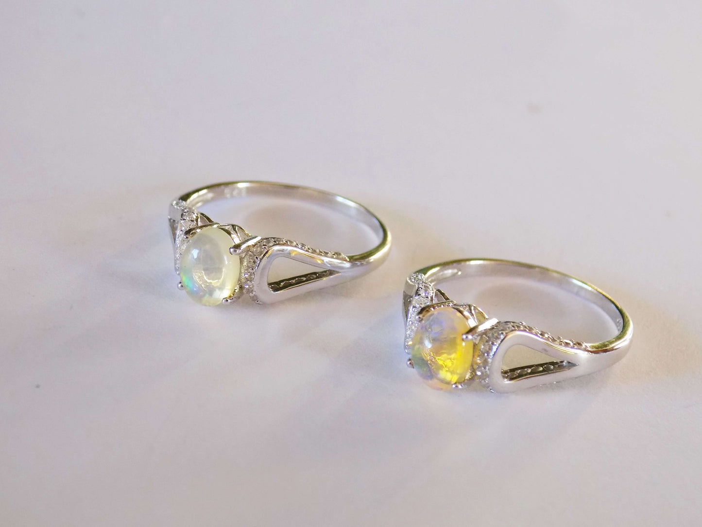 Dabīgie dārgakmeņi: Etiopijas opāls 1 gab. (0,52 cm x 0,72 cm) un cirkoni 38 gab. (0,1 cm x 0,1 cm).