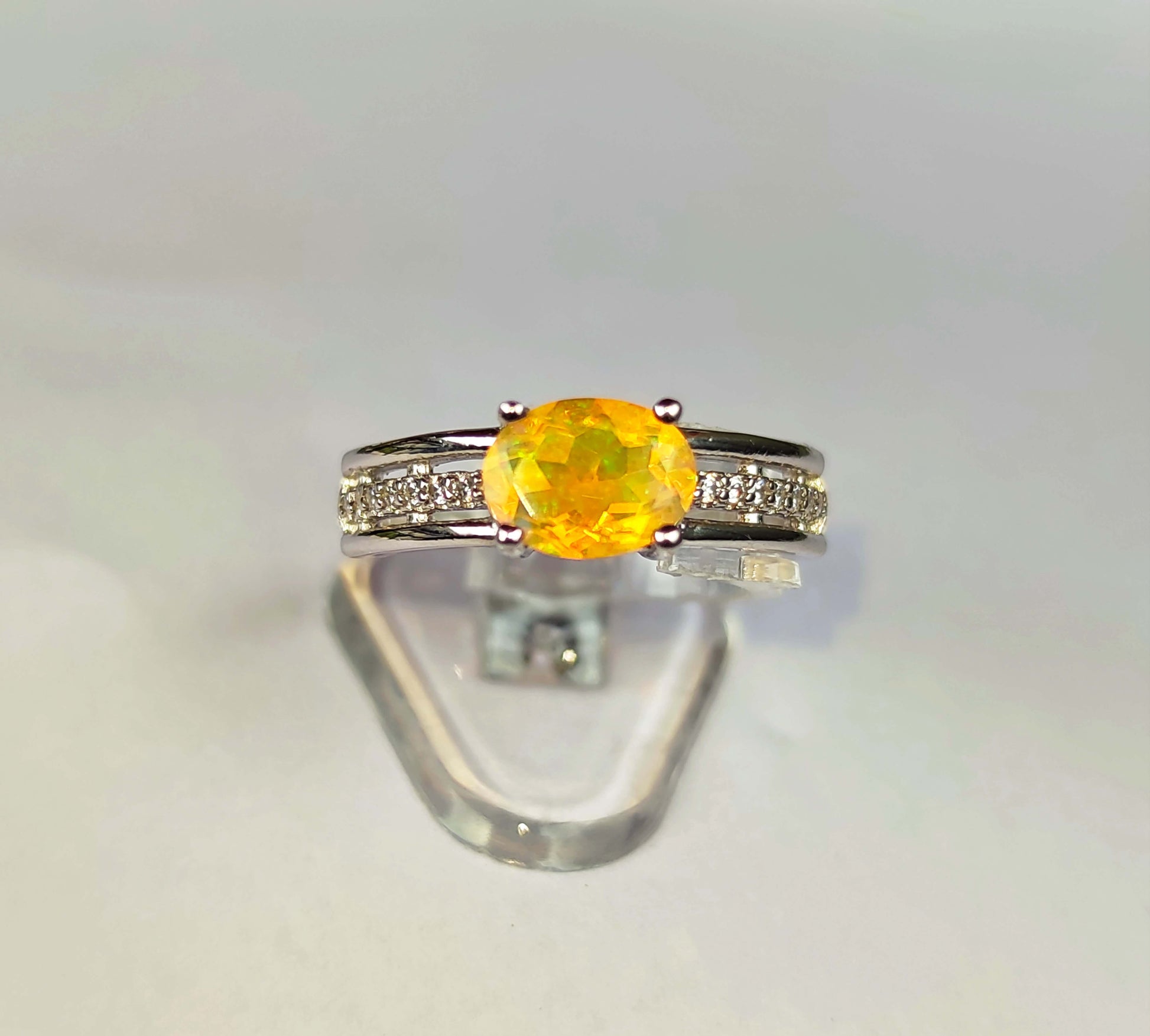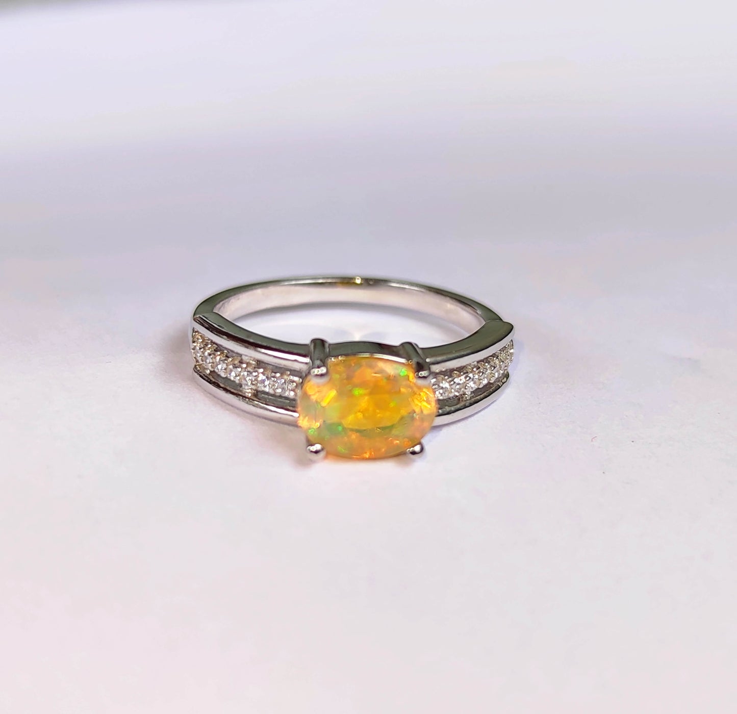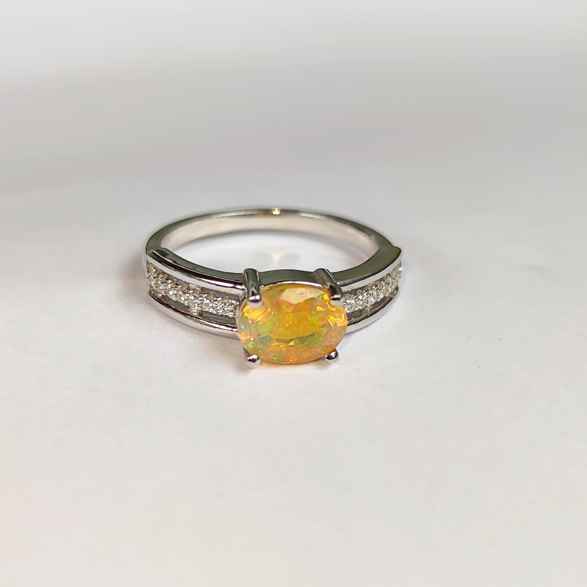Sudraba gredzens ar Etiopijas opālu un cirkoniem