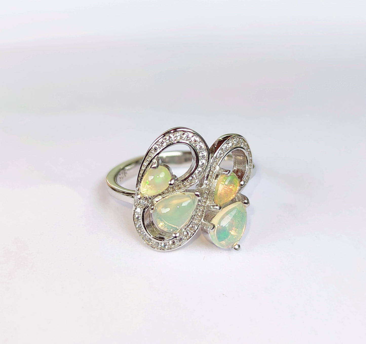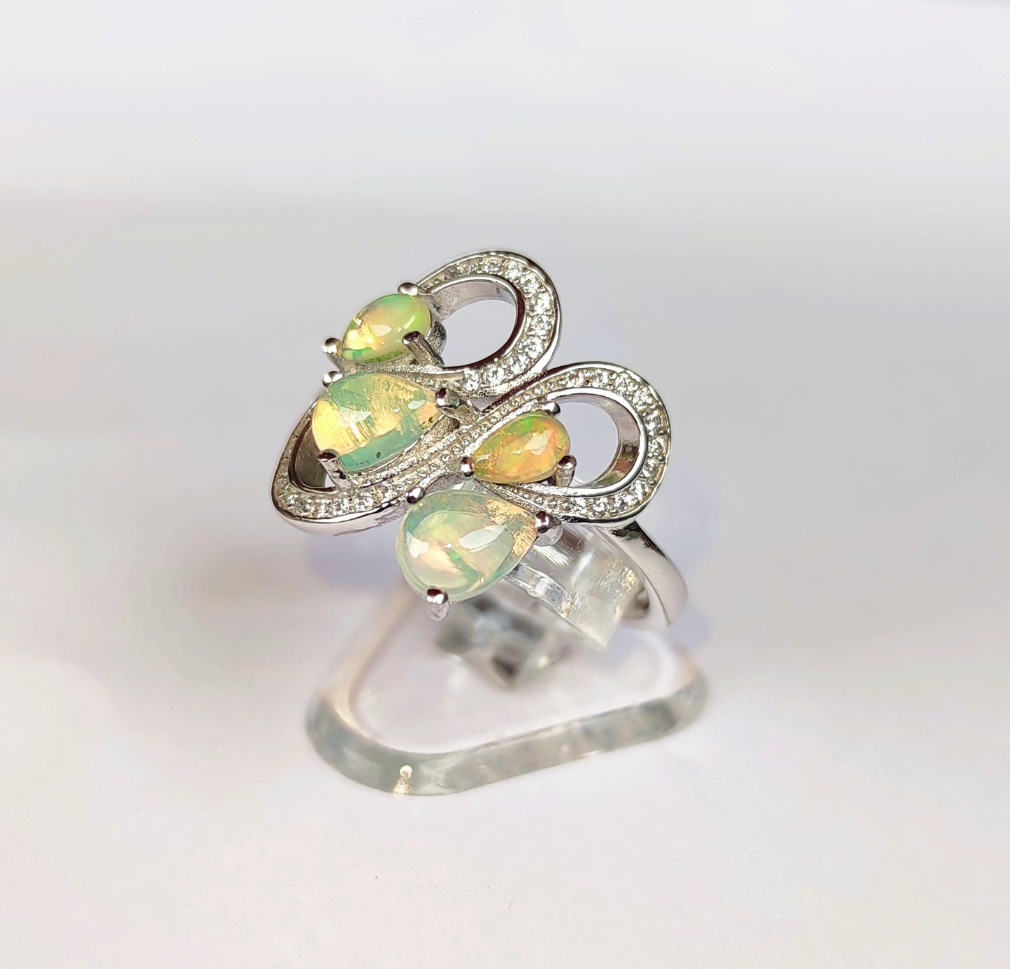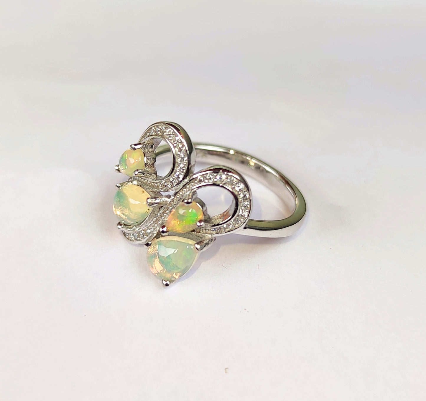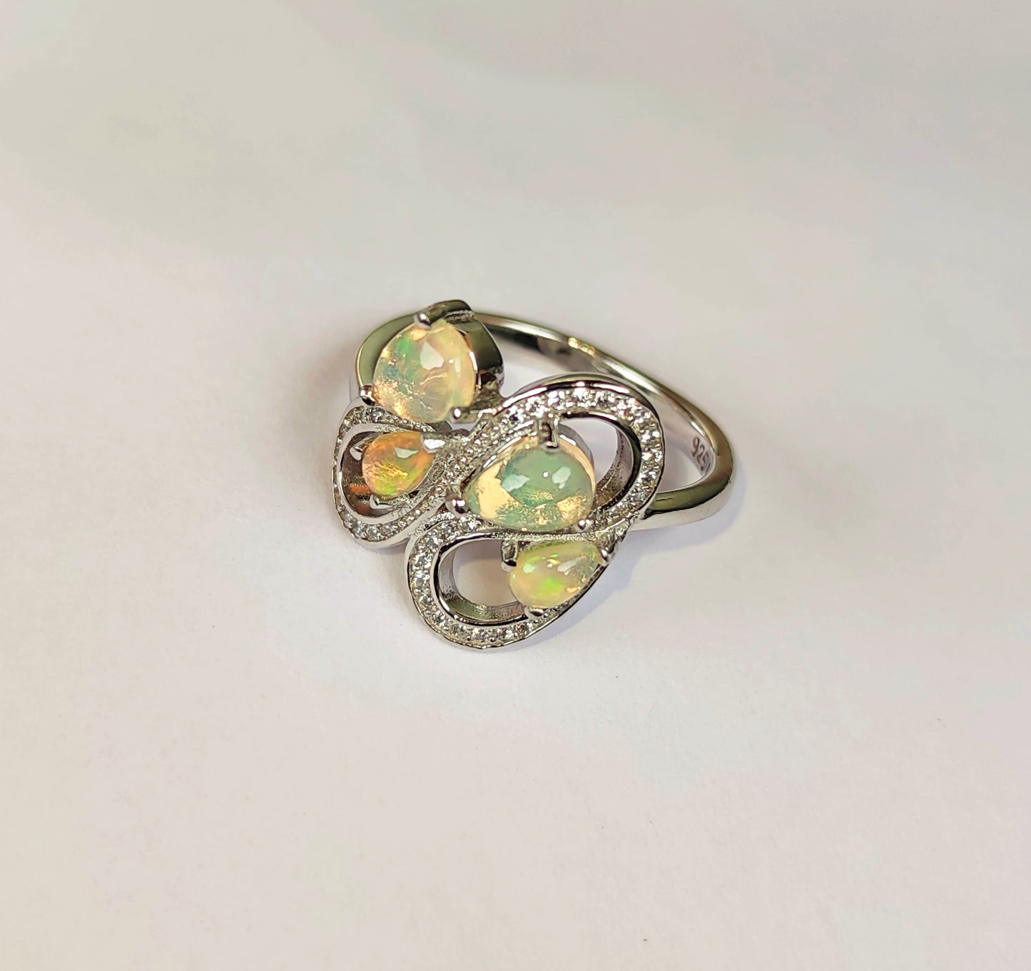 Sudraba gredzens ar Etiopijas opāliem un cirkoniem