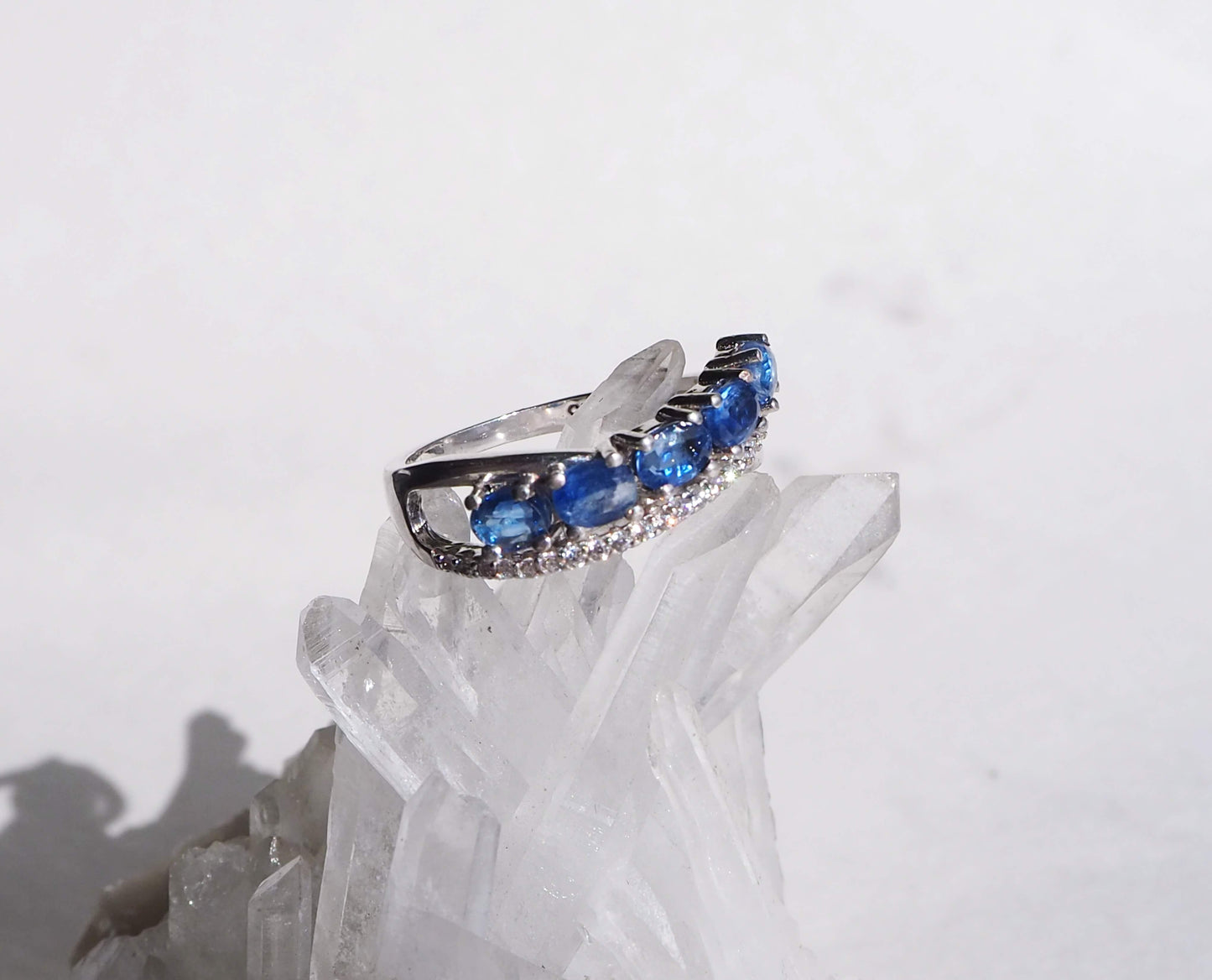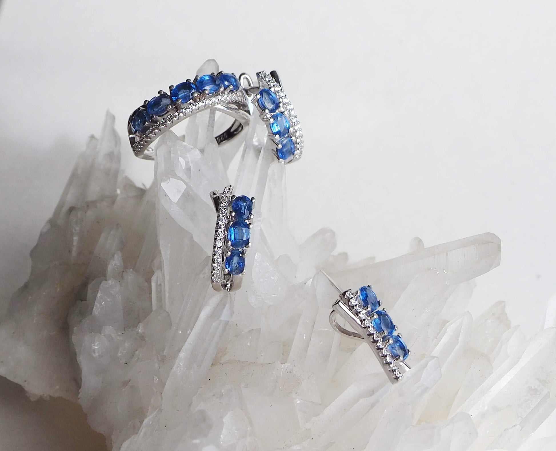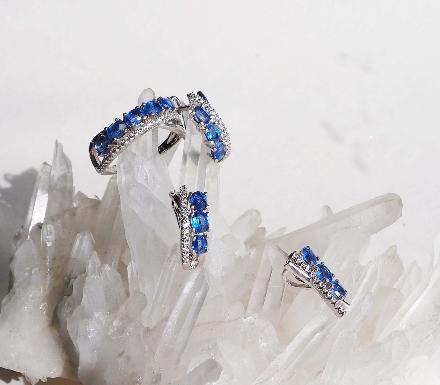 Dabīgie dārgakmeņi: Kianīti 5 gab. (0,3 cm x 0,4 cm) un cirkoni 23 gab. (0,1 cm x 0,1 cm).