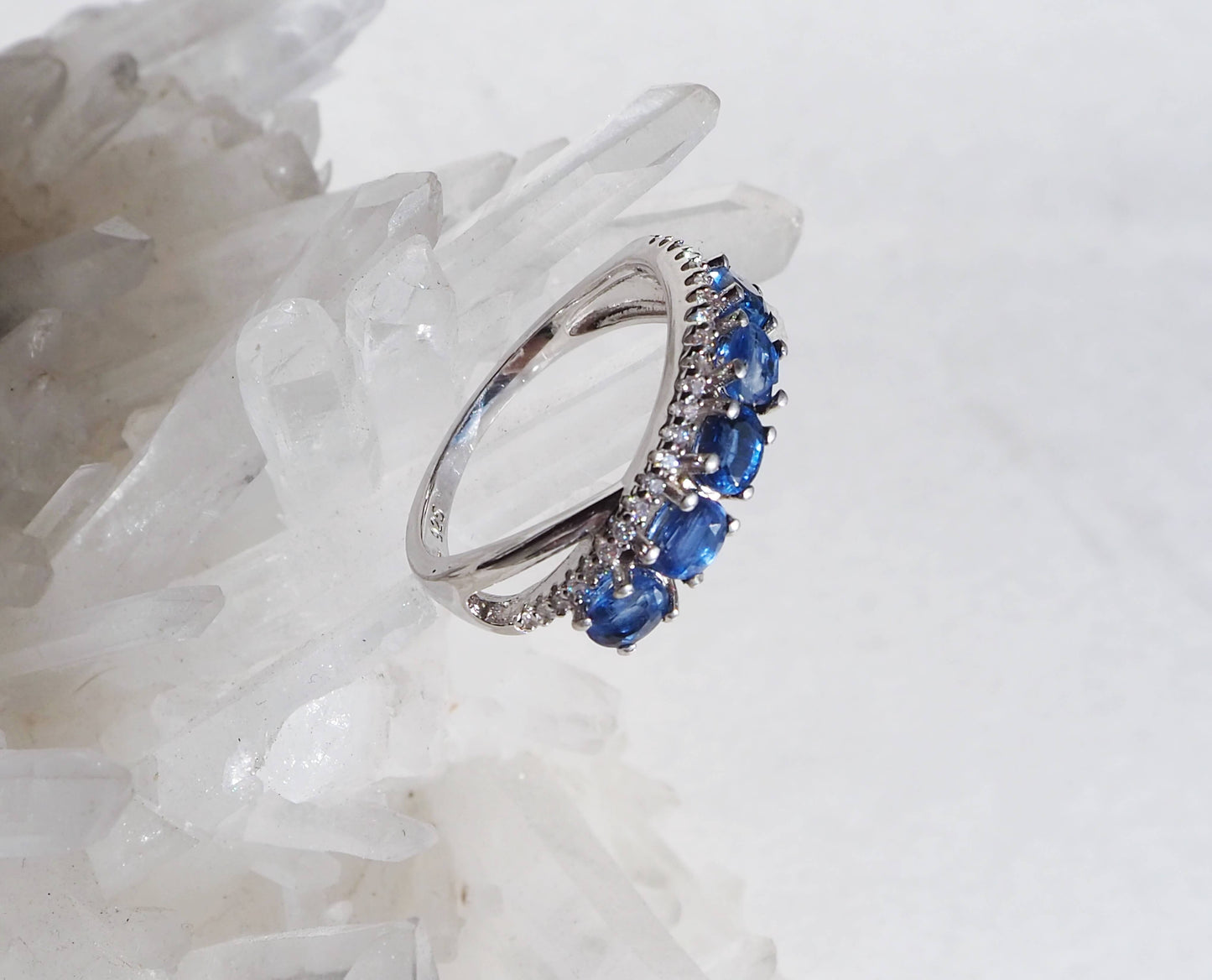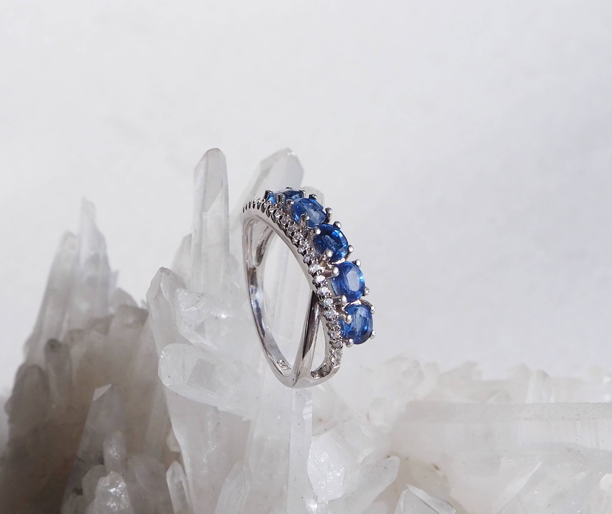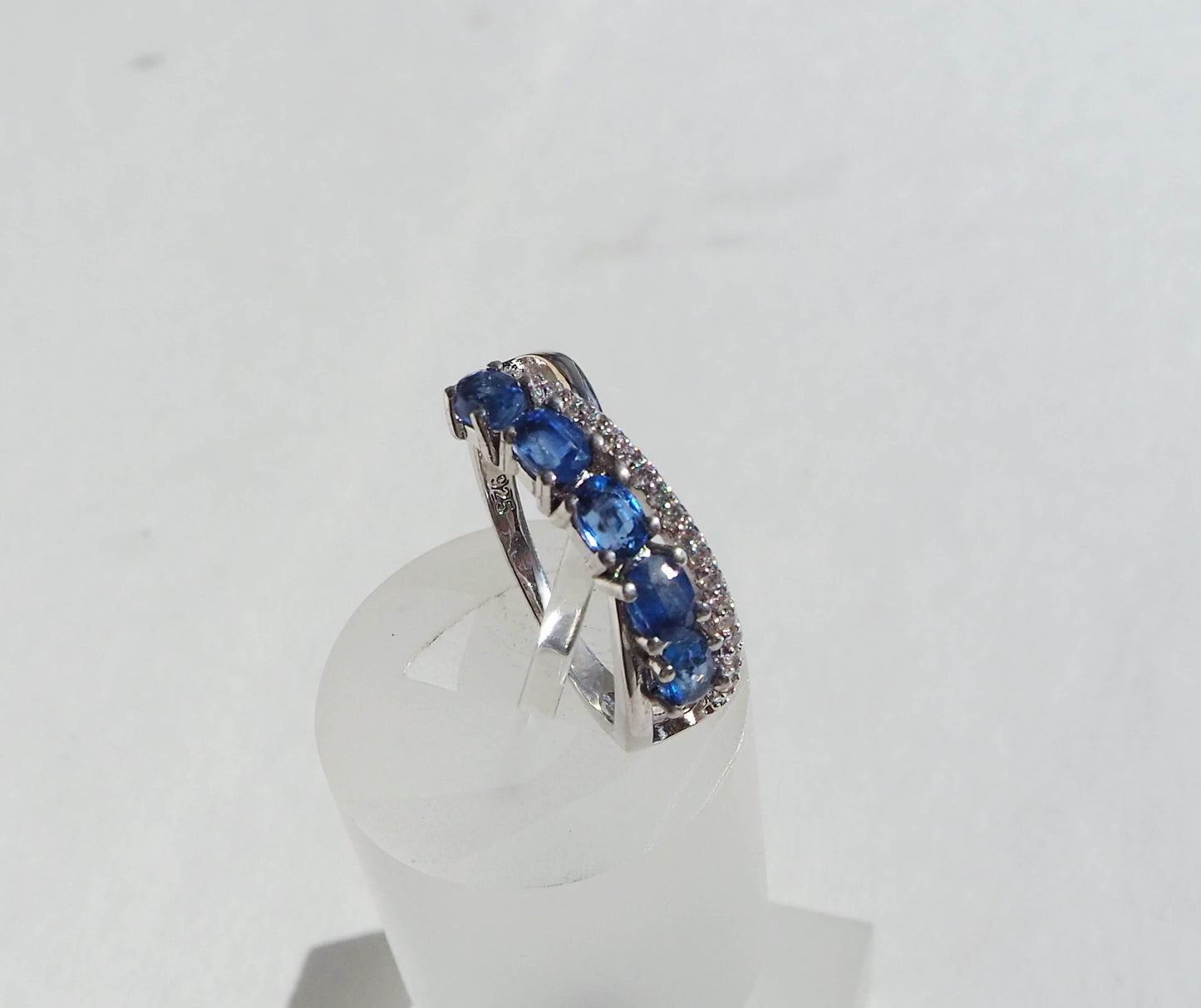 Dabīgie dārgakmeņi: Kianīti 5 gab. (0,3 cm x 0,4 cm) un cirkoni 23 gab. (0,1 cm x 0,1 cm).