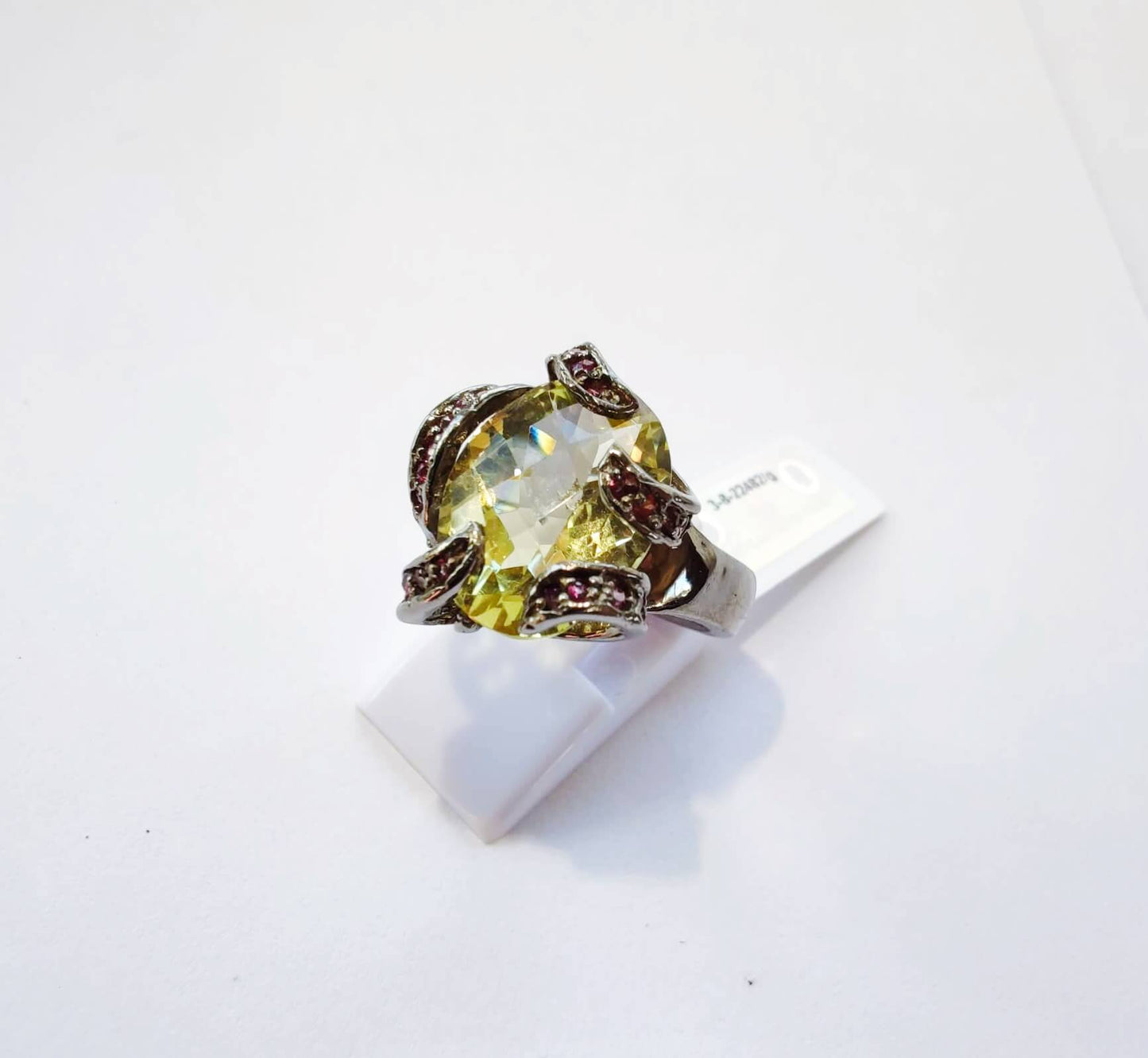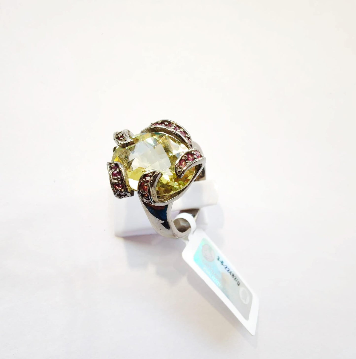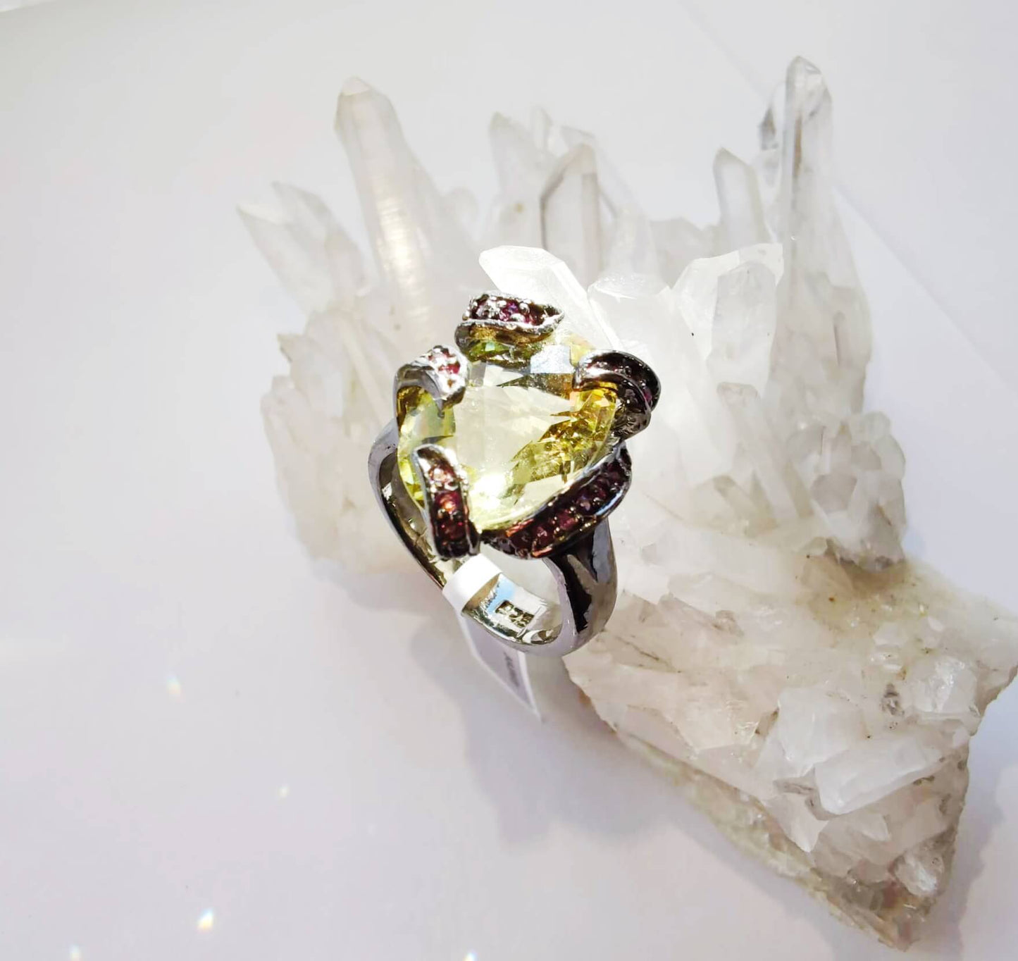 Sudraba gredzens ar citrona citrīnu un rodolīta granātiem