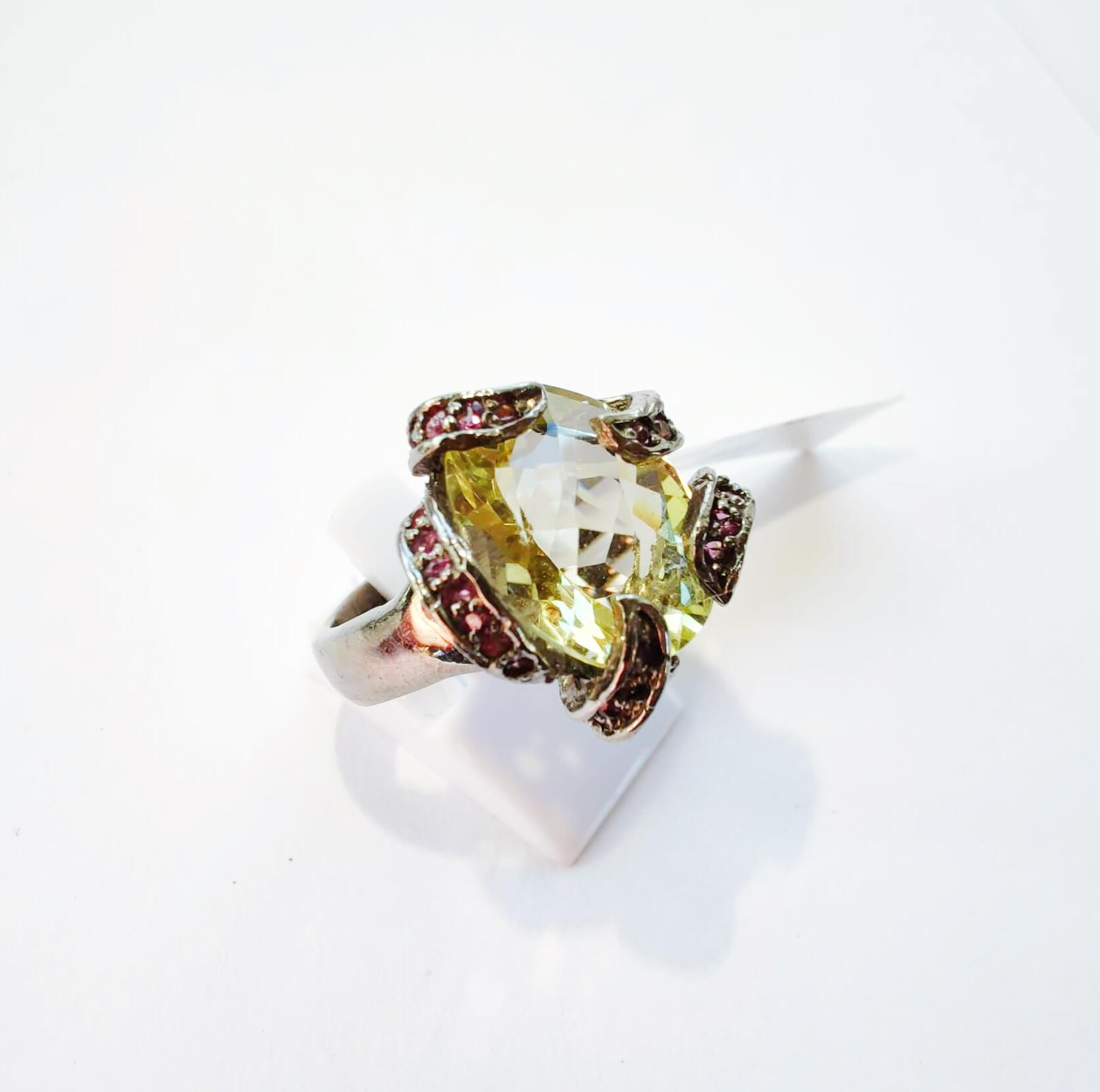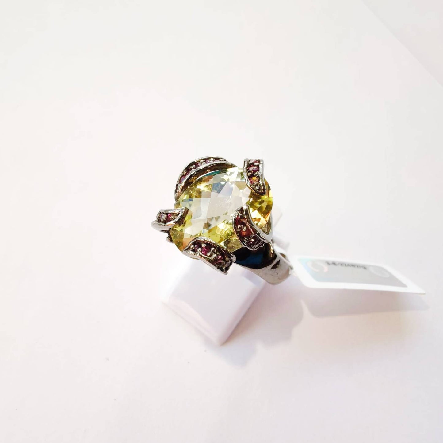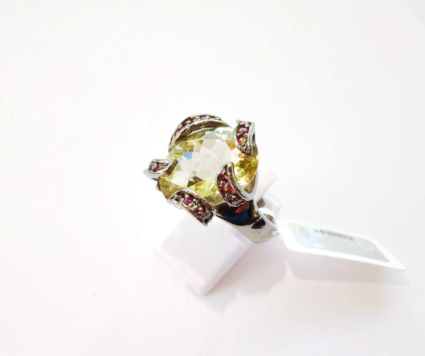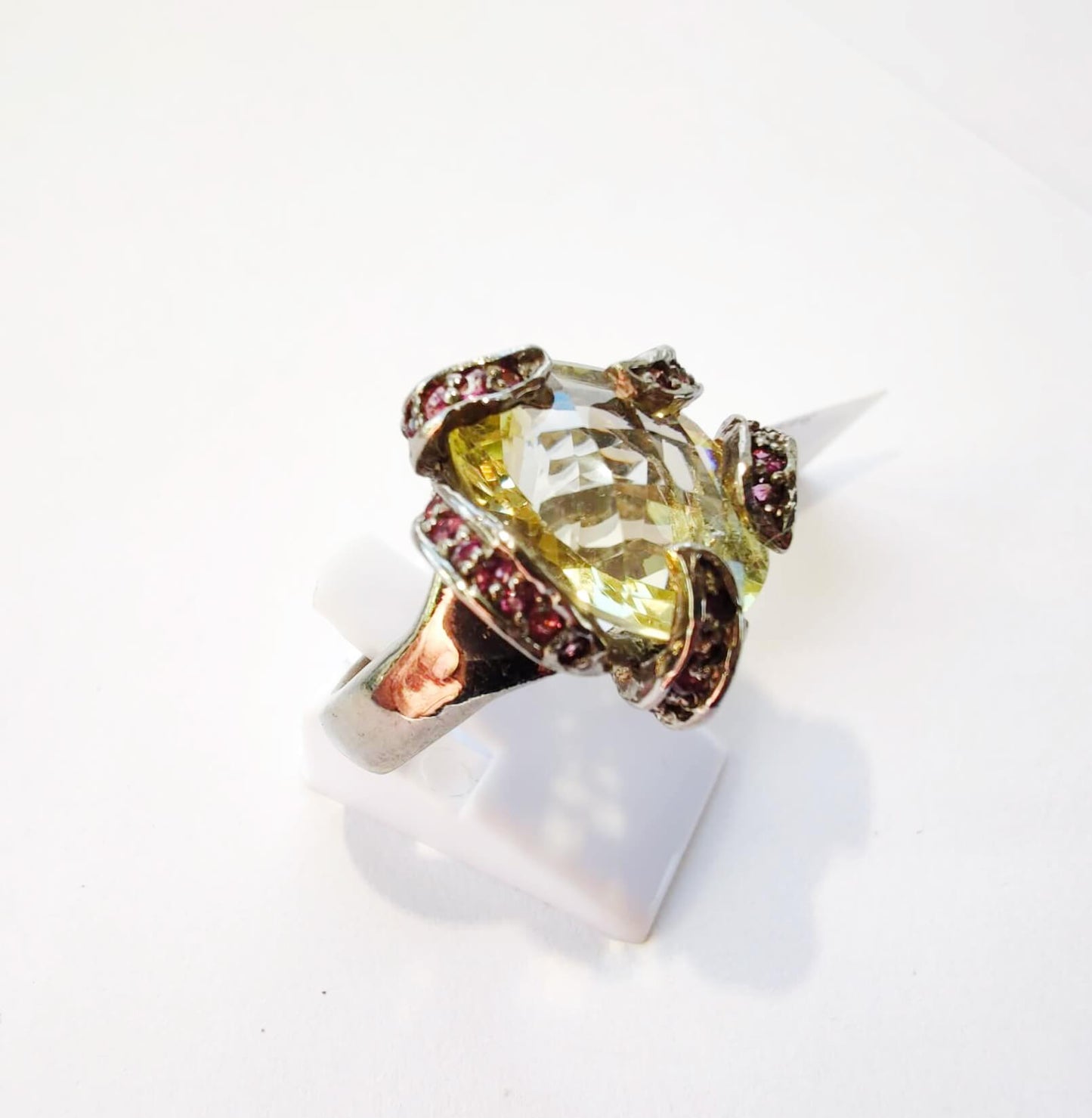 Sudraba gredzens ar citrona citrīnu un rodolīta granātiem