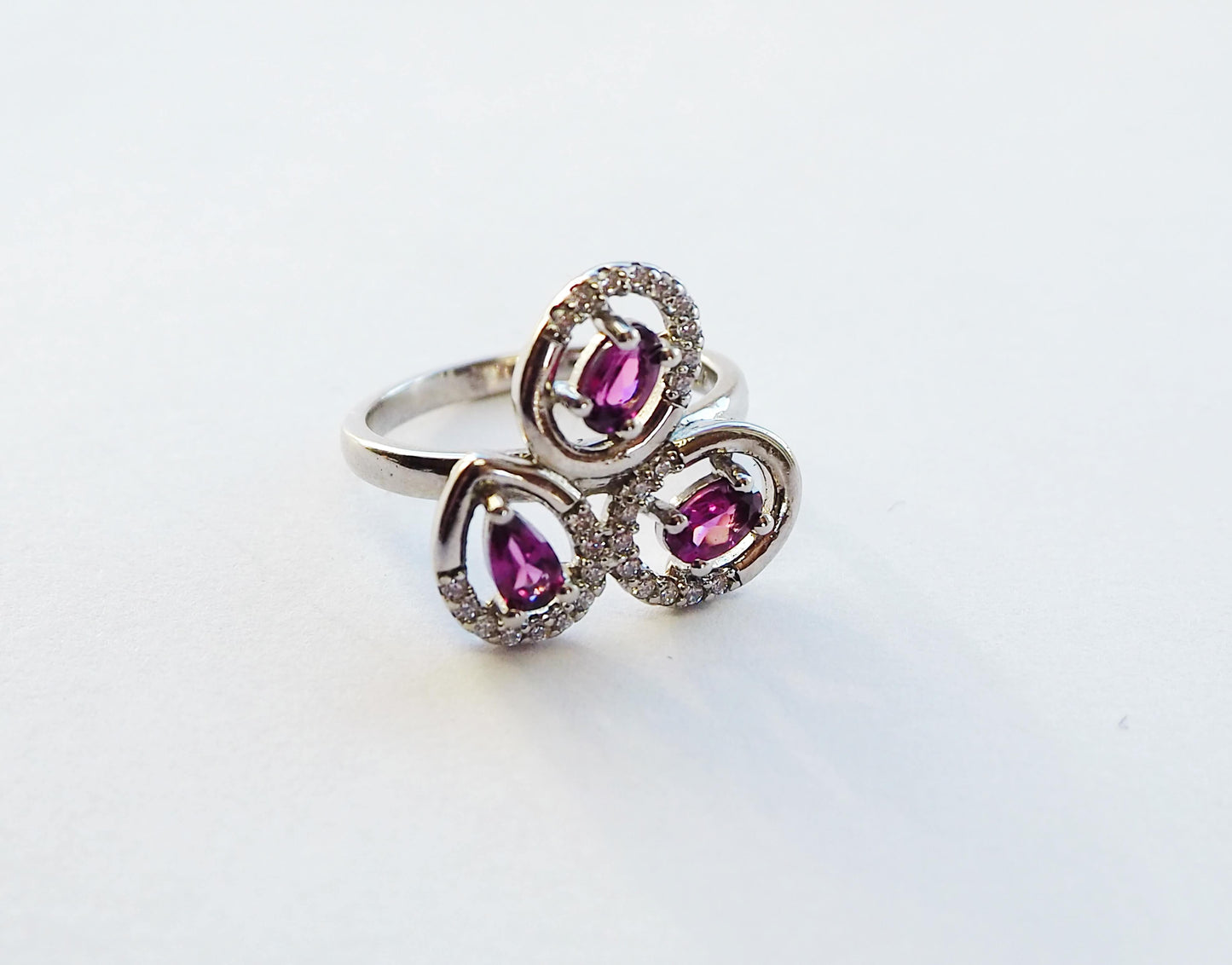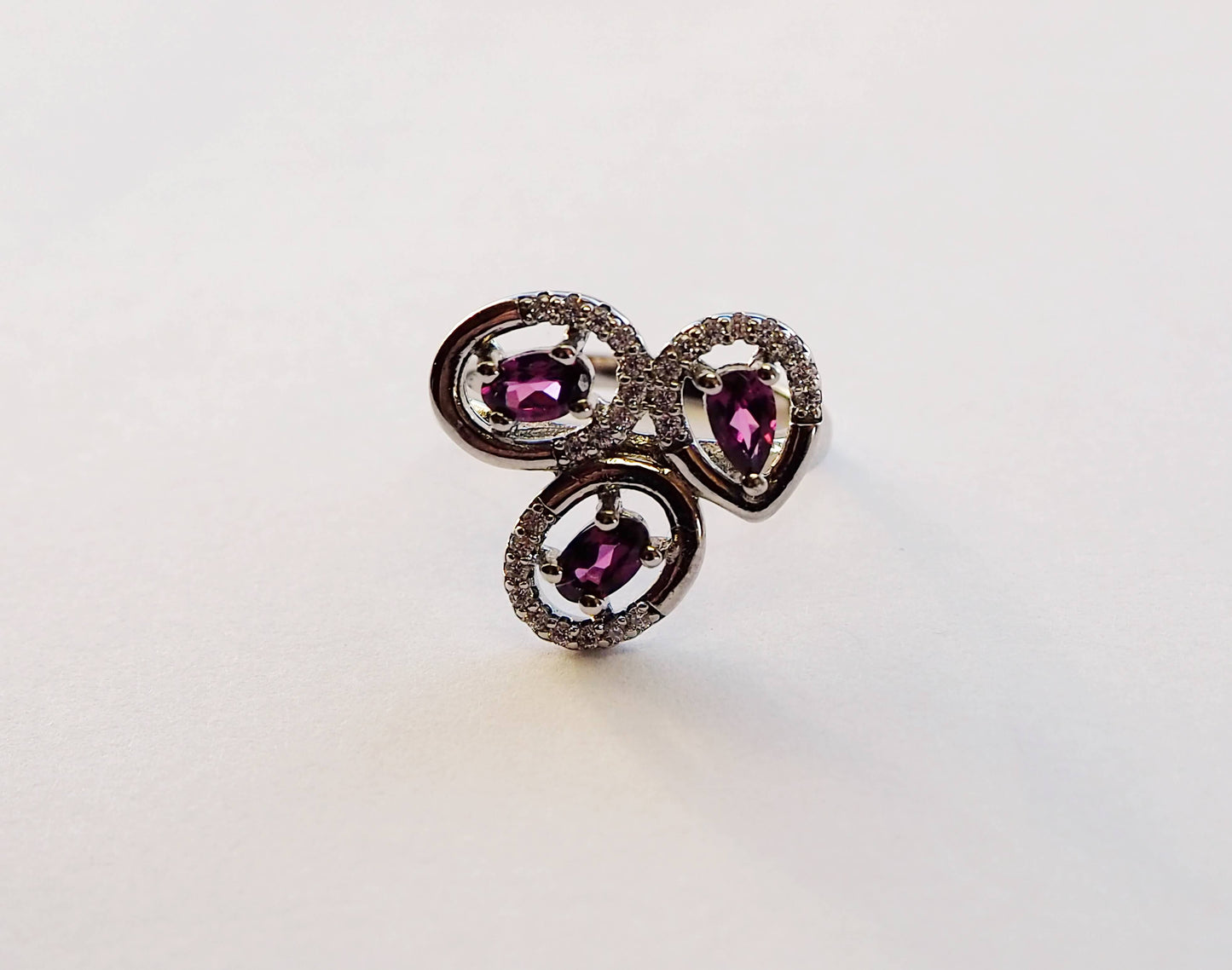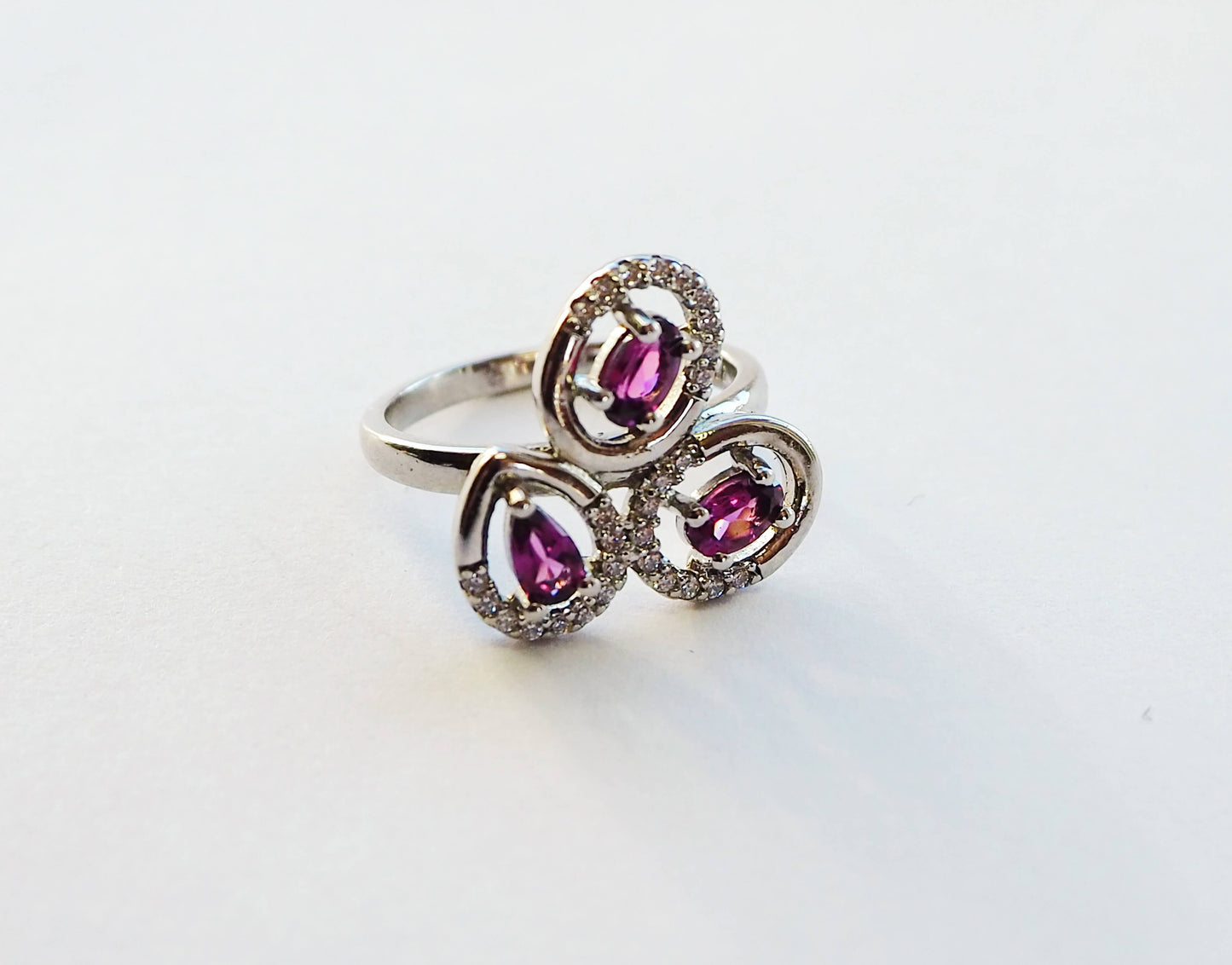 Sudraba gredzens ar rodolīta granātiem un cirkoniem