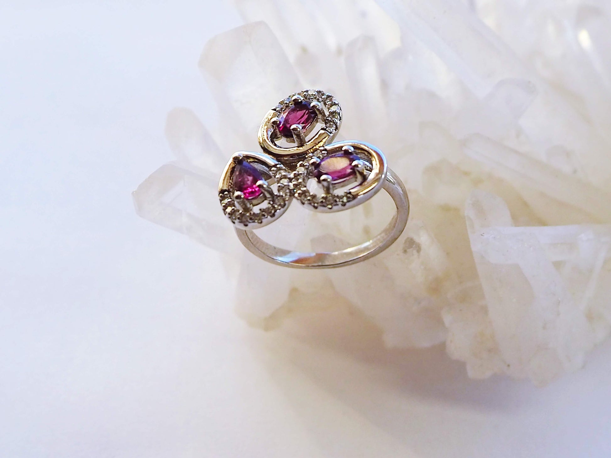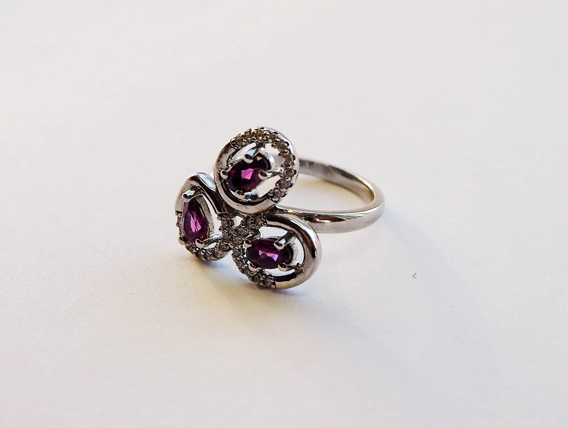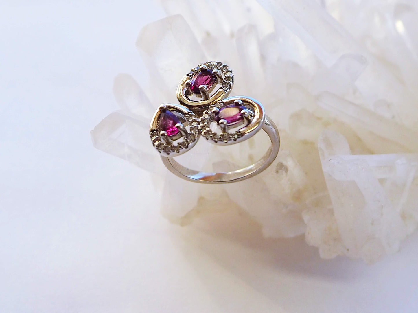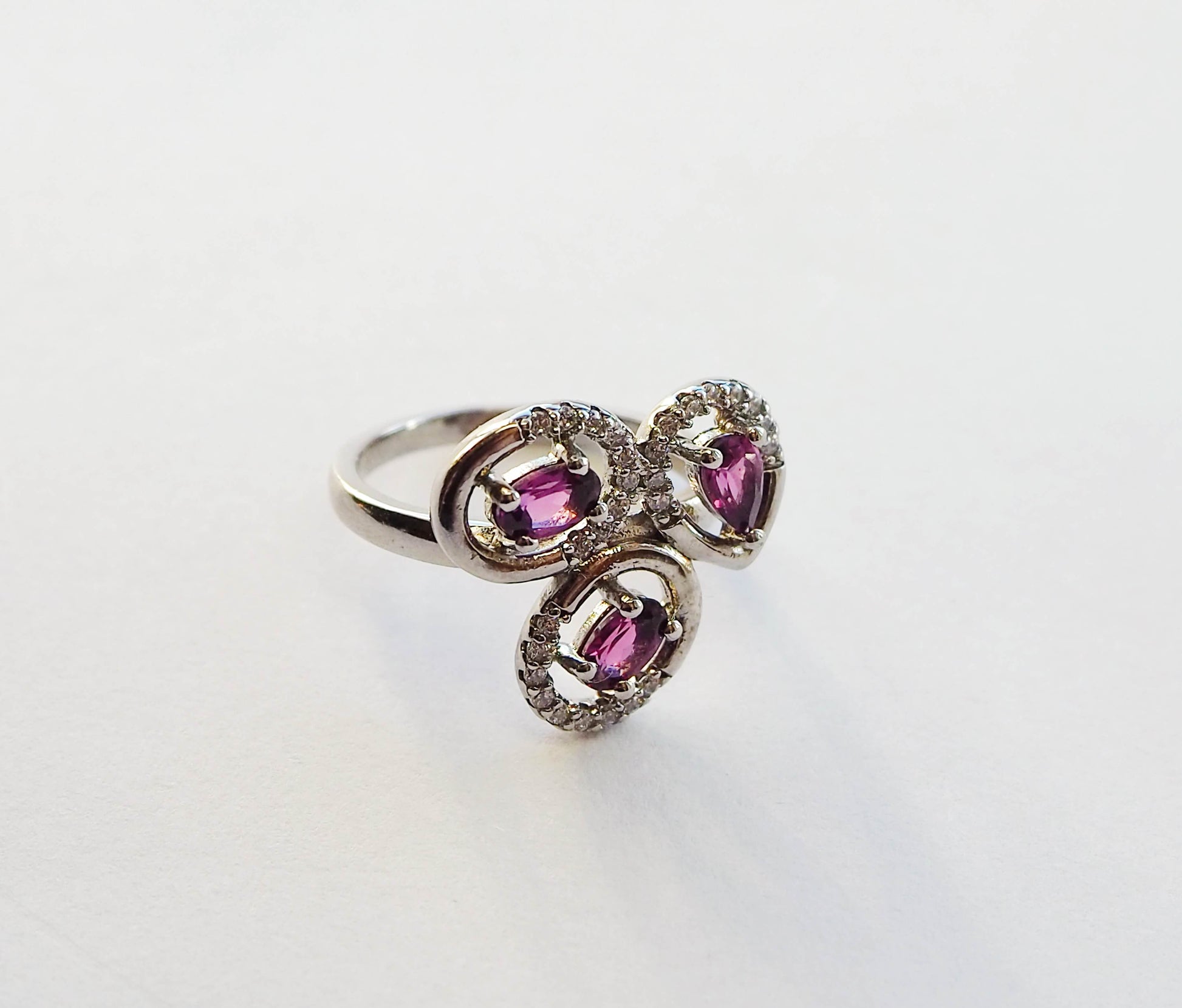 Sudraba gredzens ar rodolīta granātiem un cirkoniem