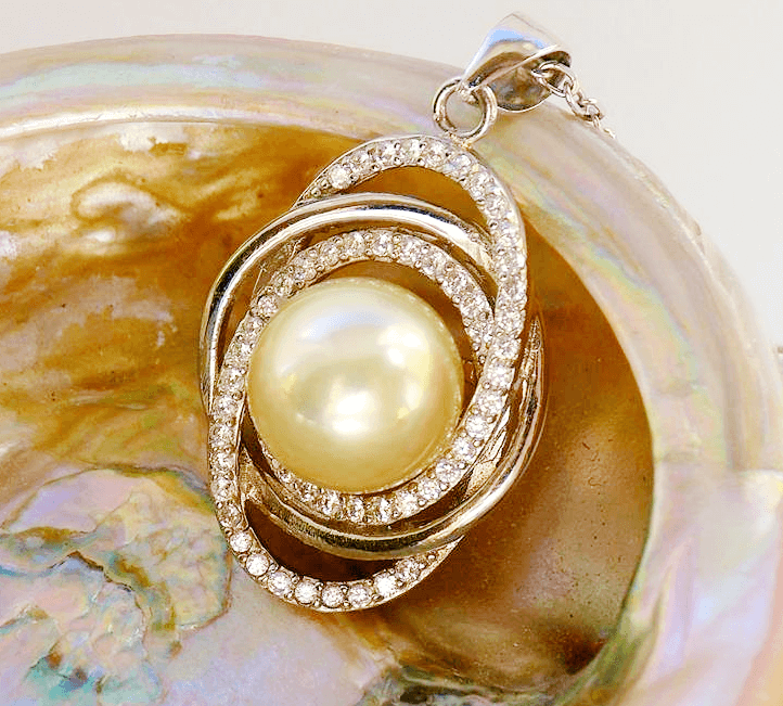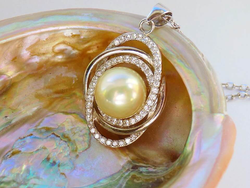 Silver Necklace with Golden Sea Pearl and Zircons