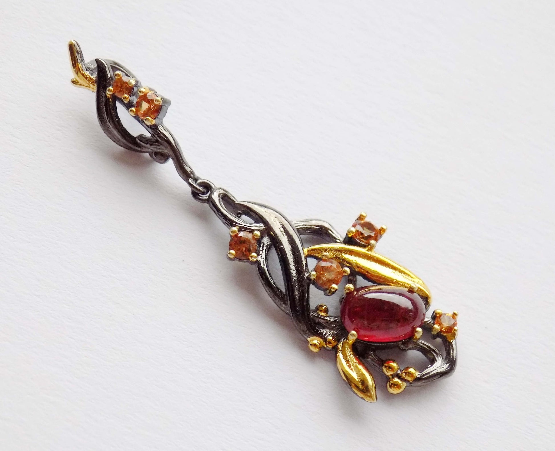 Natural gemstones: Ruby 1ct - 1 pc. (0.5 cm x 0.75 cm) and Orange Sapphires 0.46ct - 6 pcs. (0.25 cm x 0.25 cm)(0.15 cm x 0.15 cm).