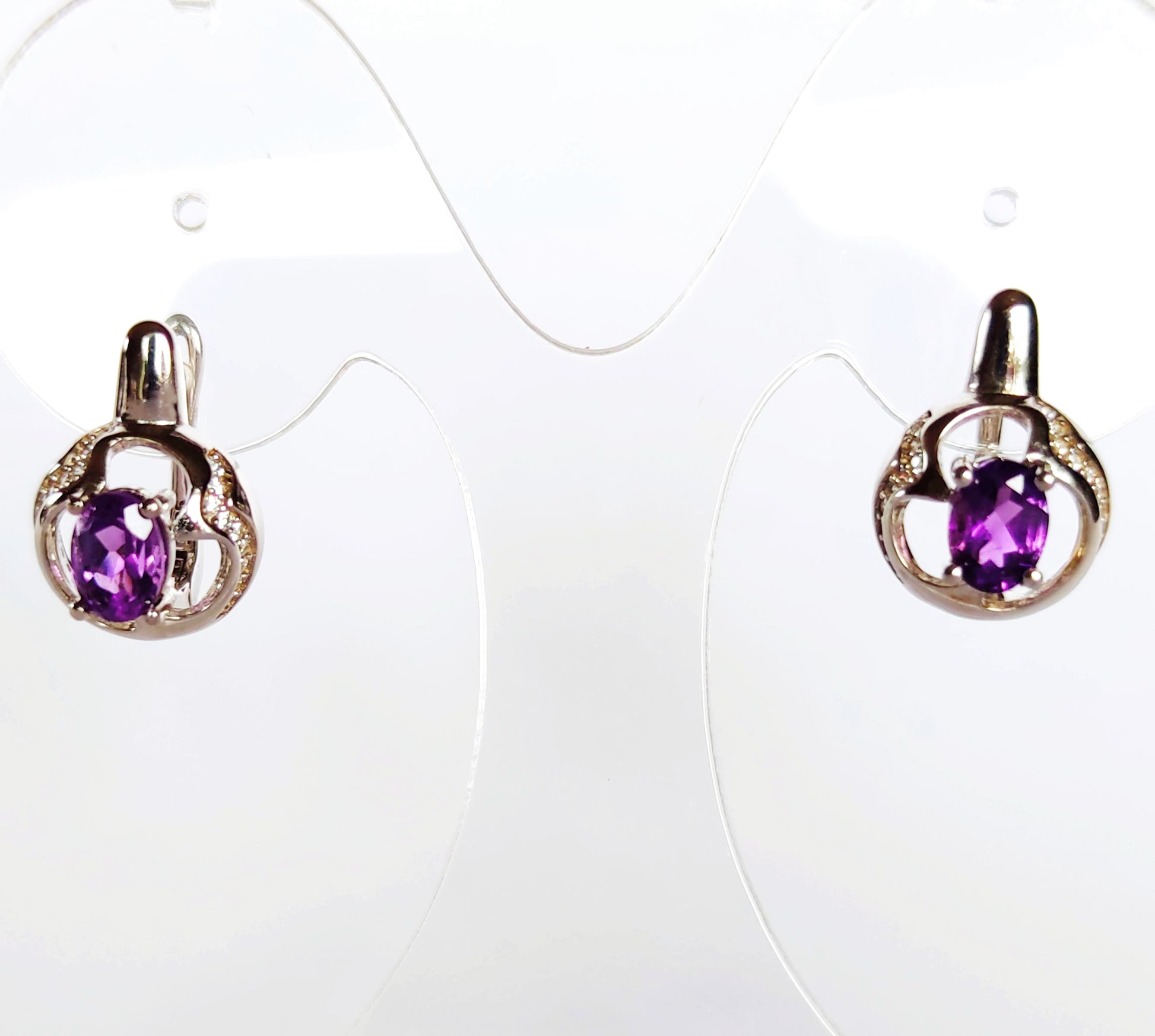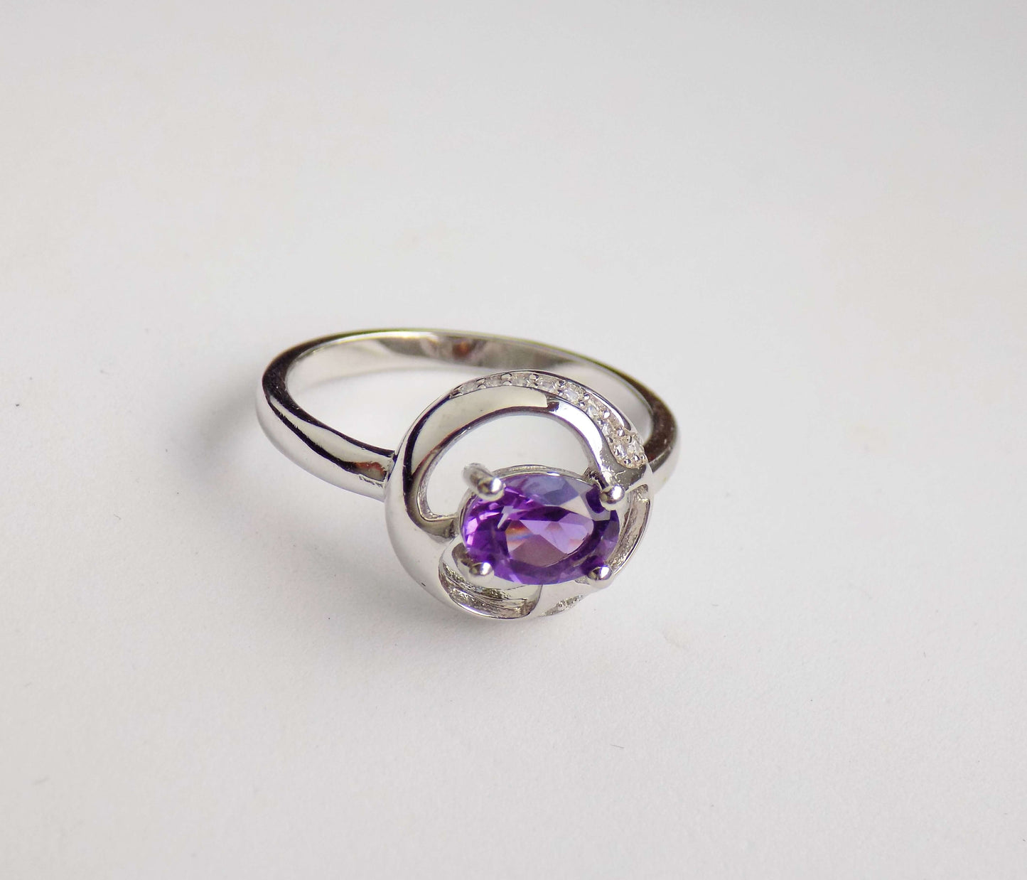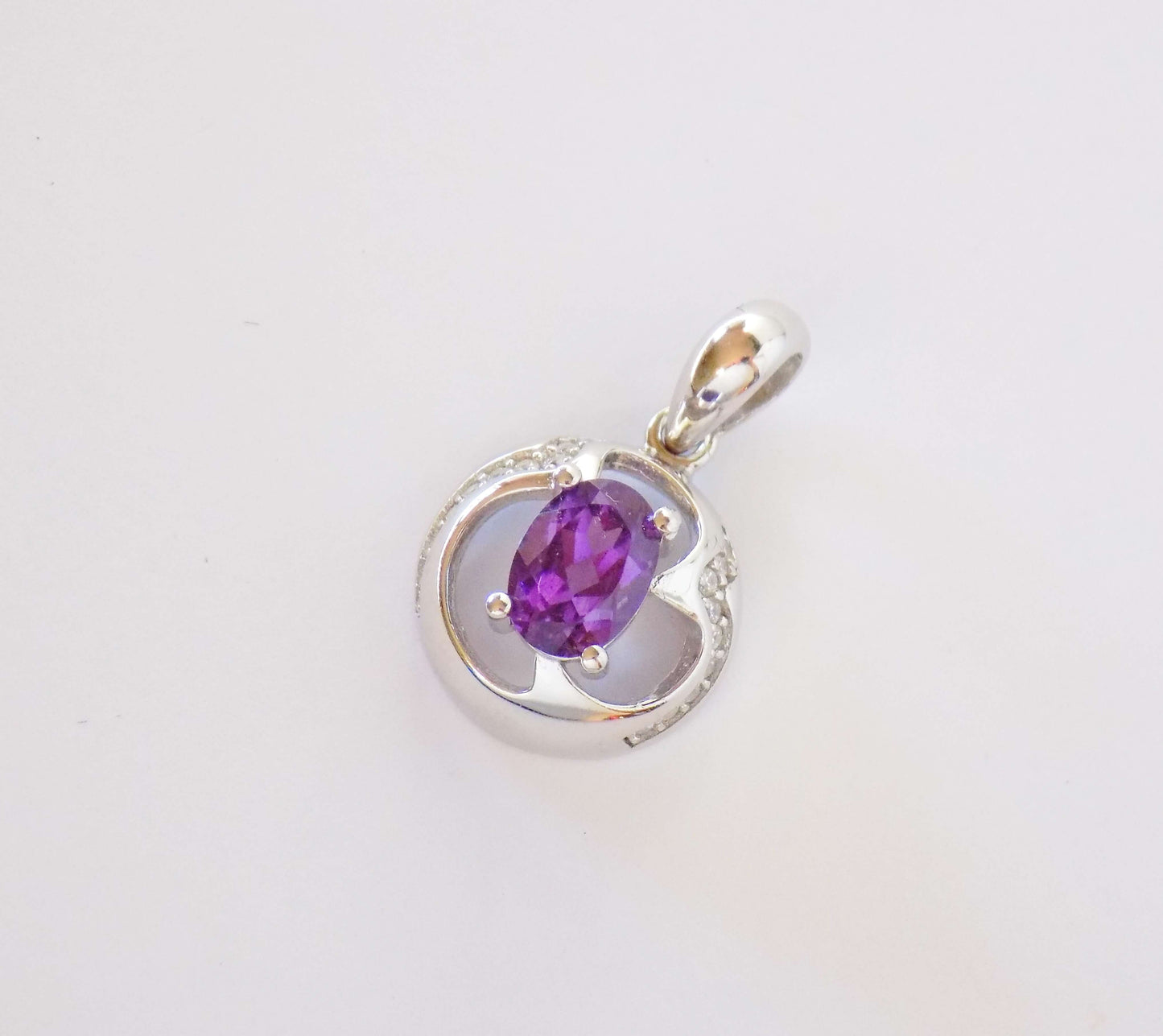 Natural gemstones: Amethyst 1 pc. (0.5 cm x 0.7 cm) and Zircons 20 pcs. (0.1 cm x 0.1 cm).
