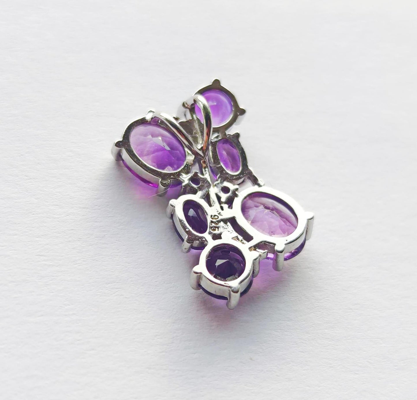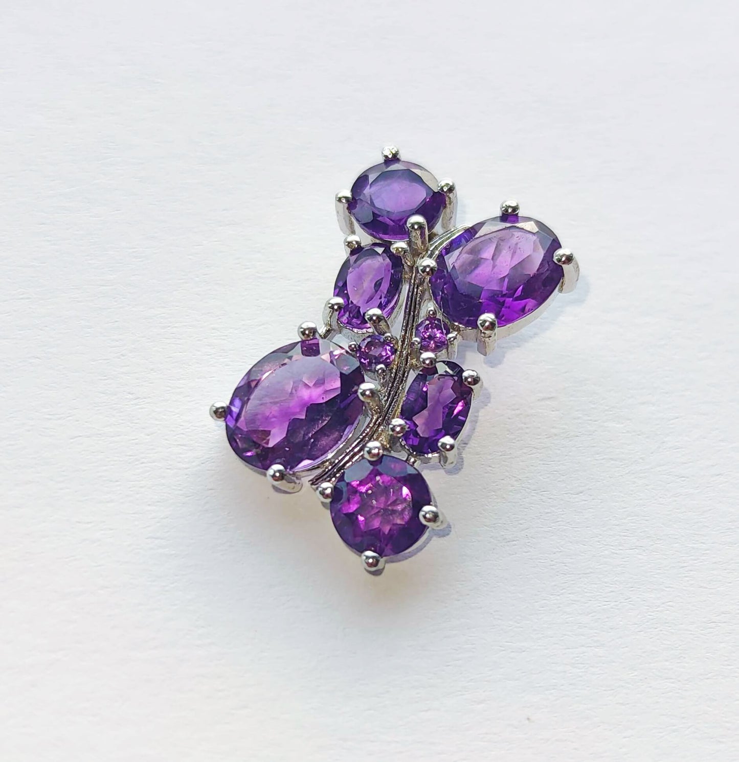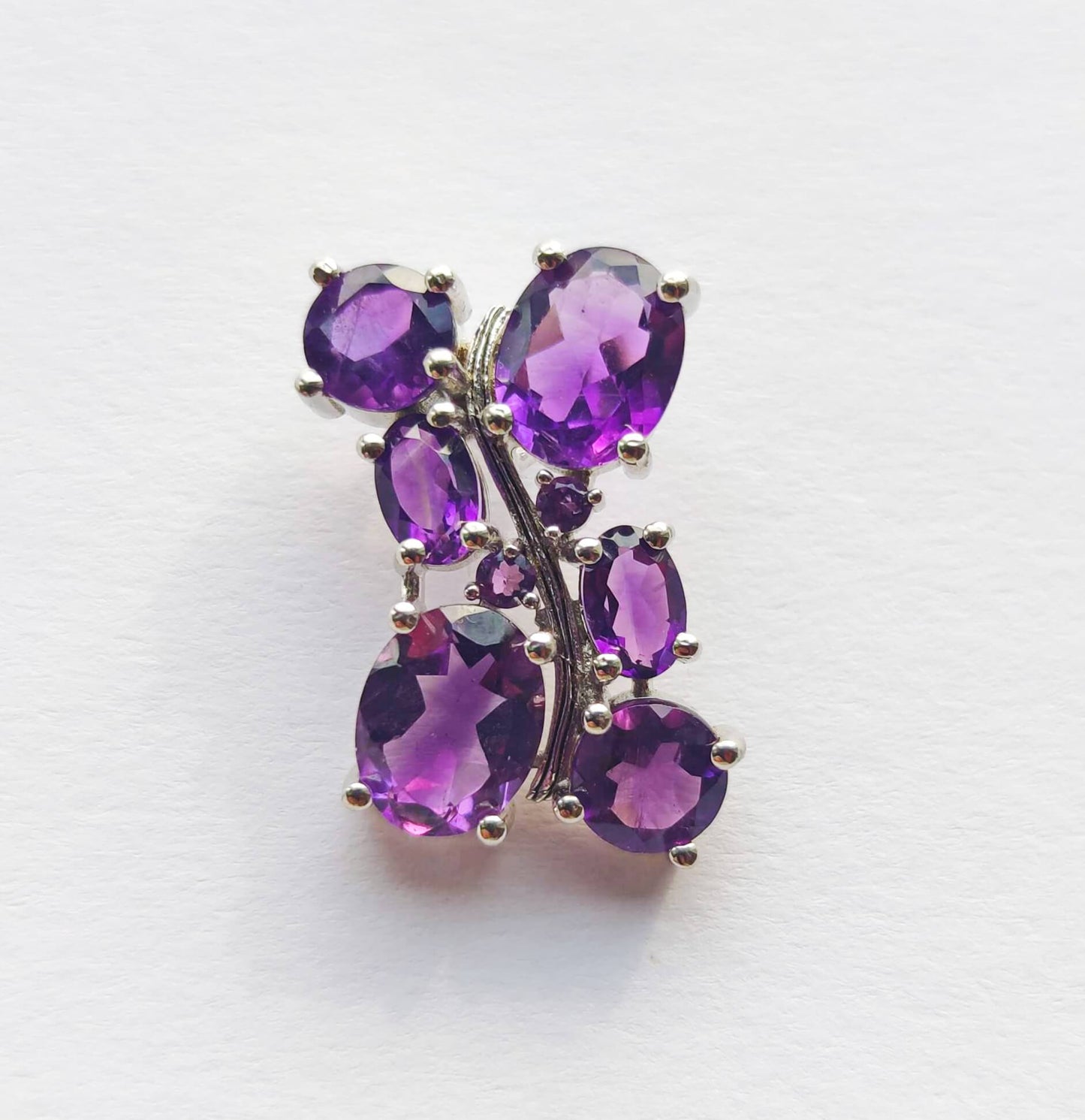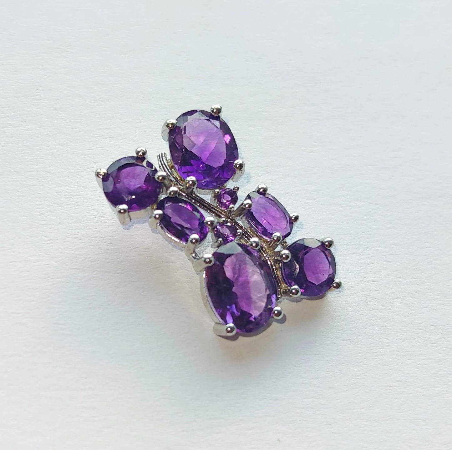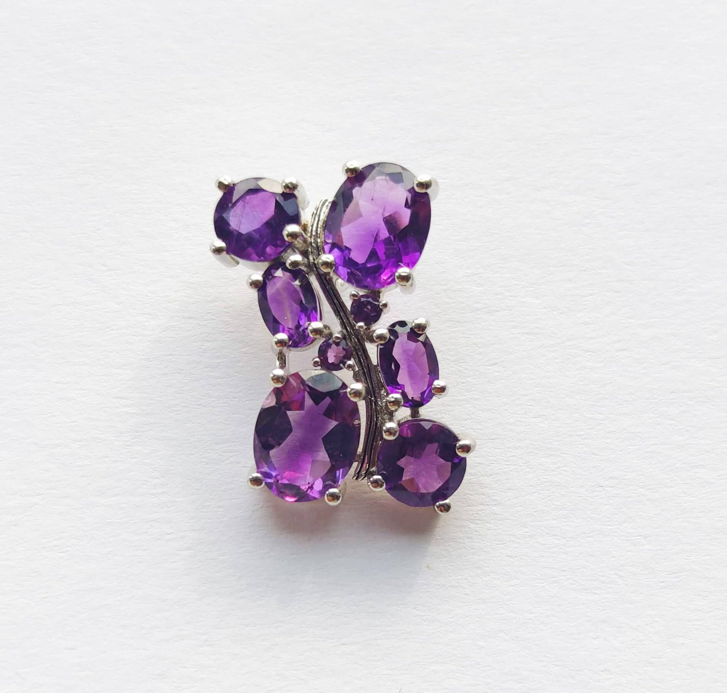 Natural gemstones: Amethysts 2 pcs. (0.7 cm x 0.9 cm), 2 pcs. (0.6 cm x 0.6 cm), 2 pcs. (0.4 cm x 0.6 cm), 2 pcs. (0.2 cm x 0.2 cm).