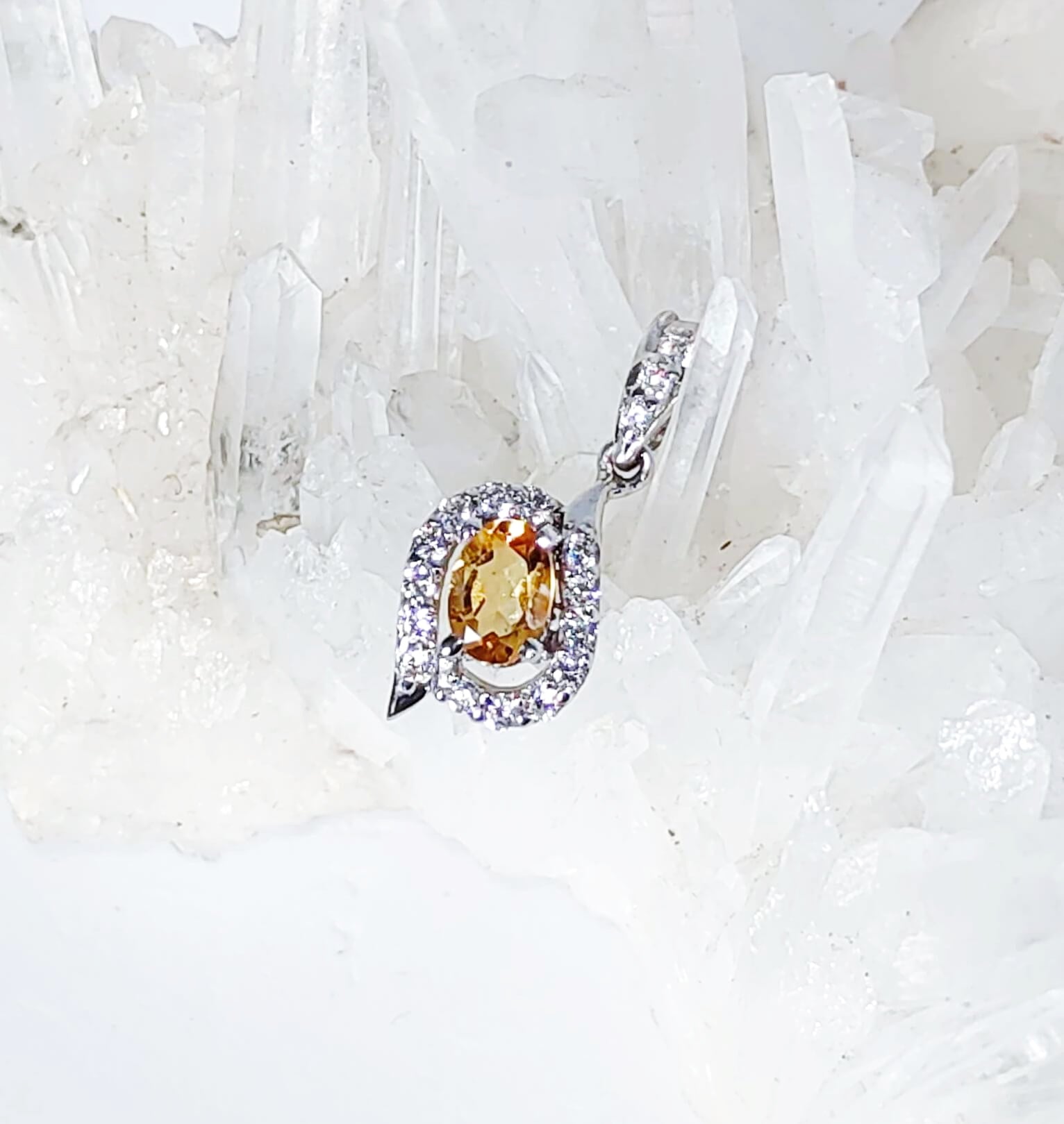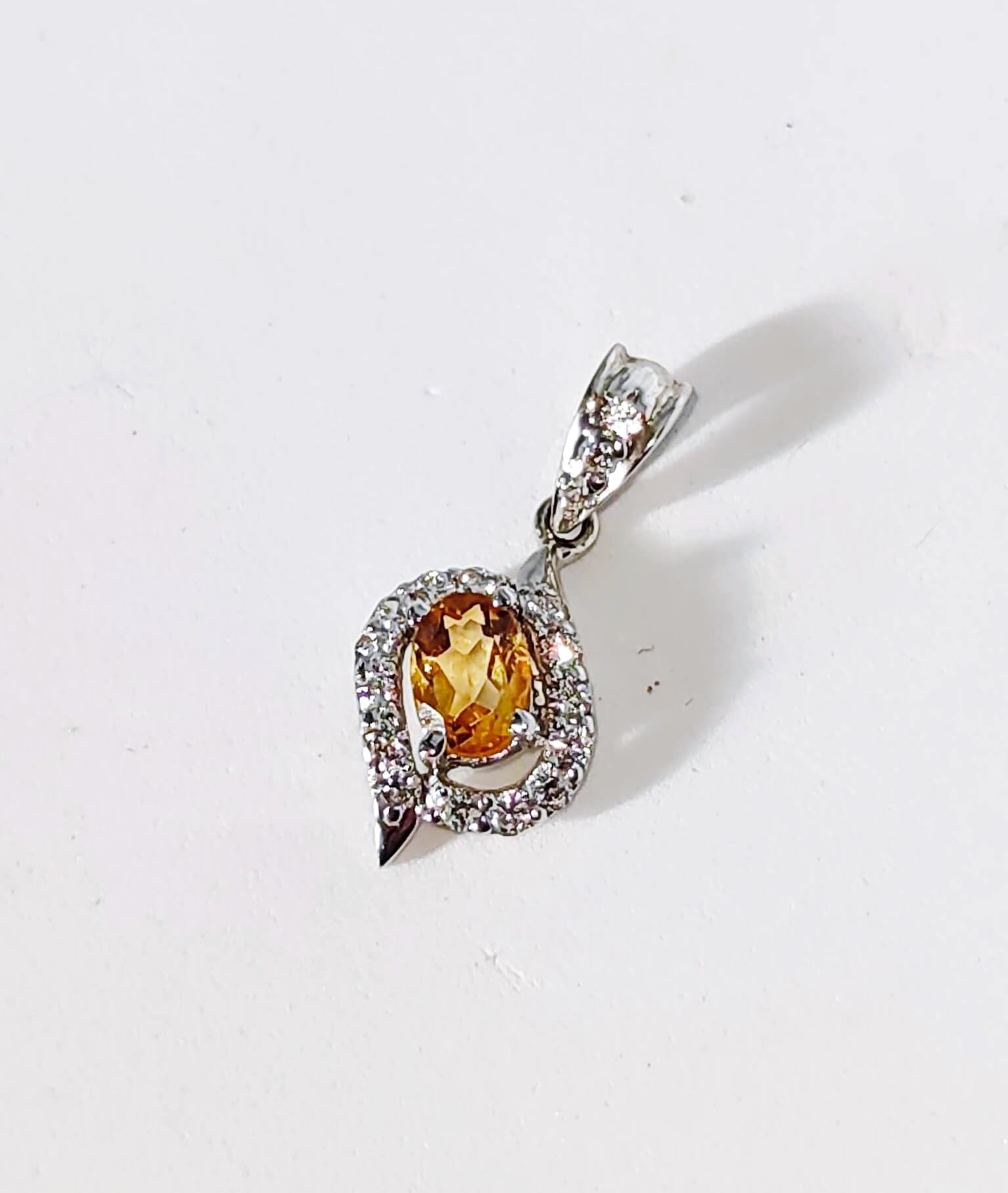 Natural gemstones: Citrine 1 pc. (0.5 cm x 0.7 cm) and Zircons 17 pcs. (0.18 cm x 0.18 cm).