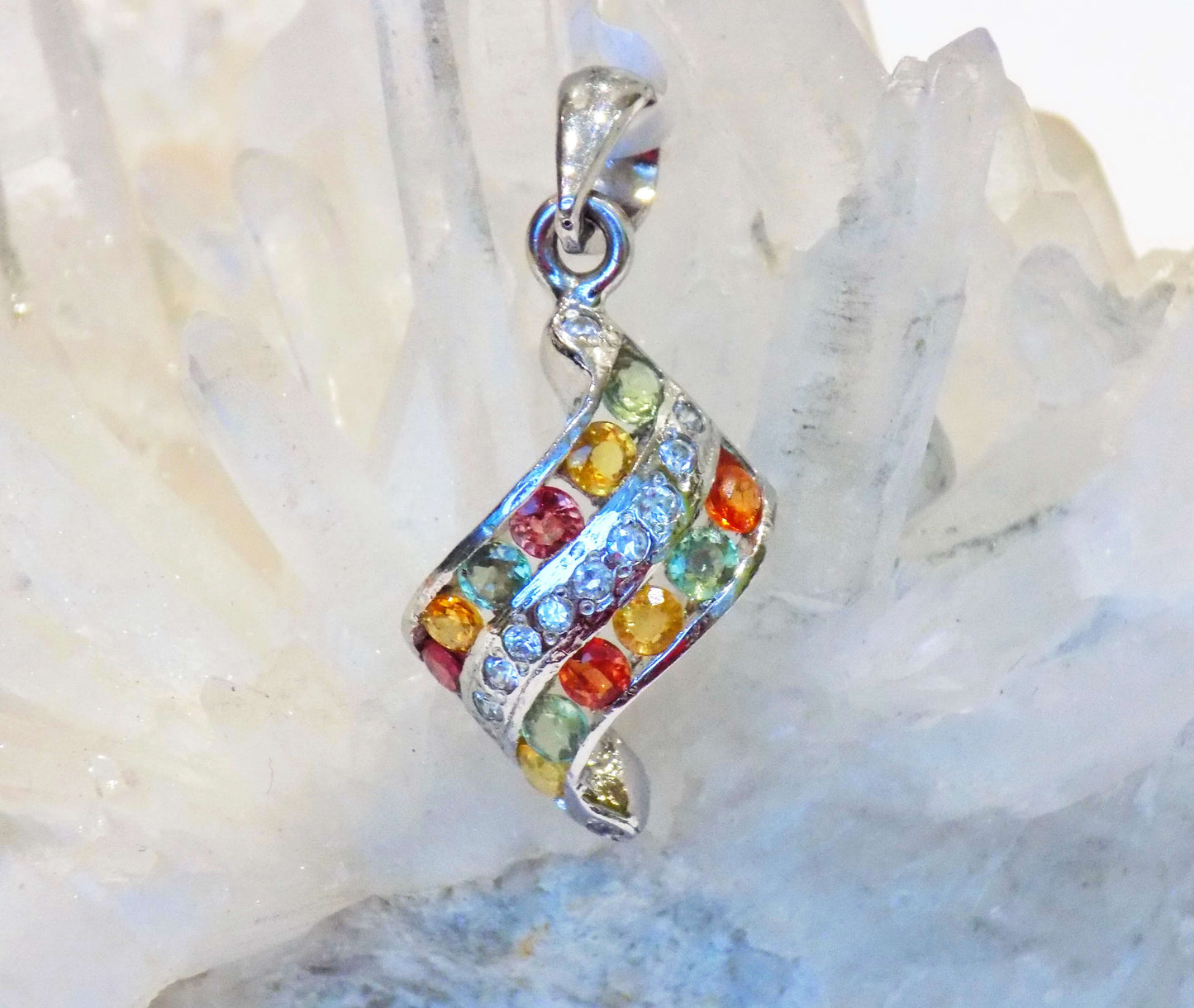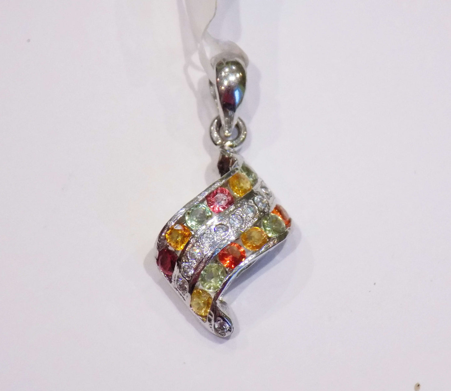 Silver Pendant with Multicolored Sapphires and White Zircons