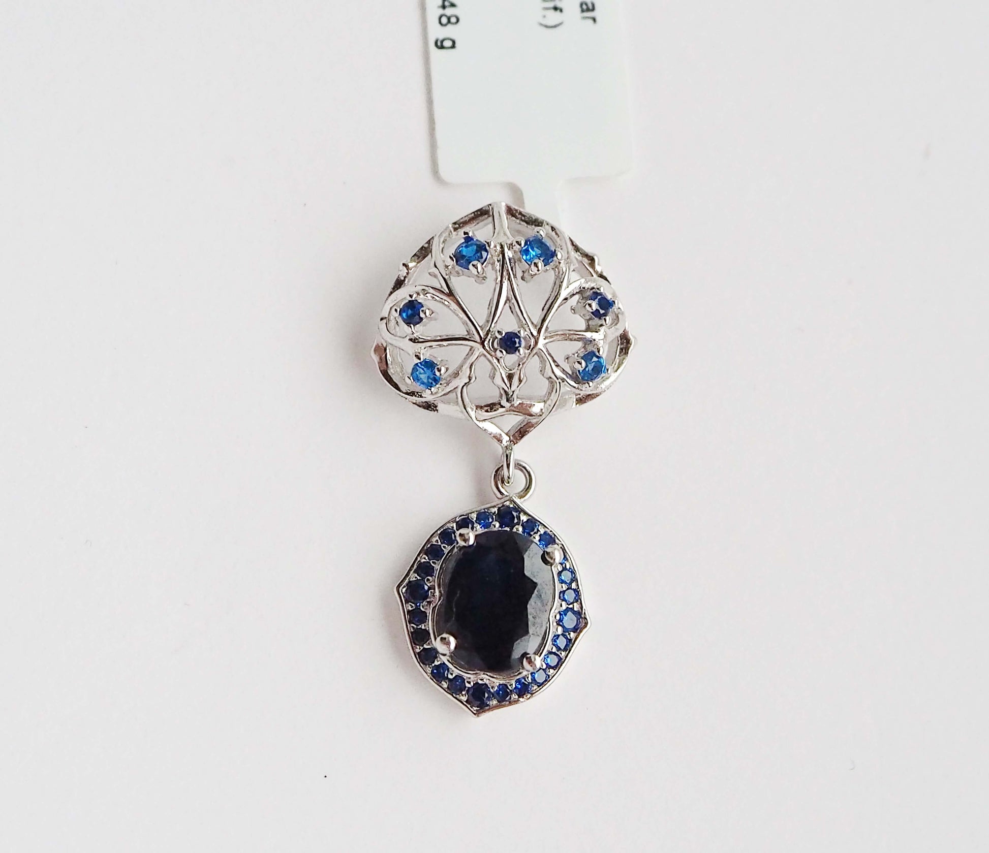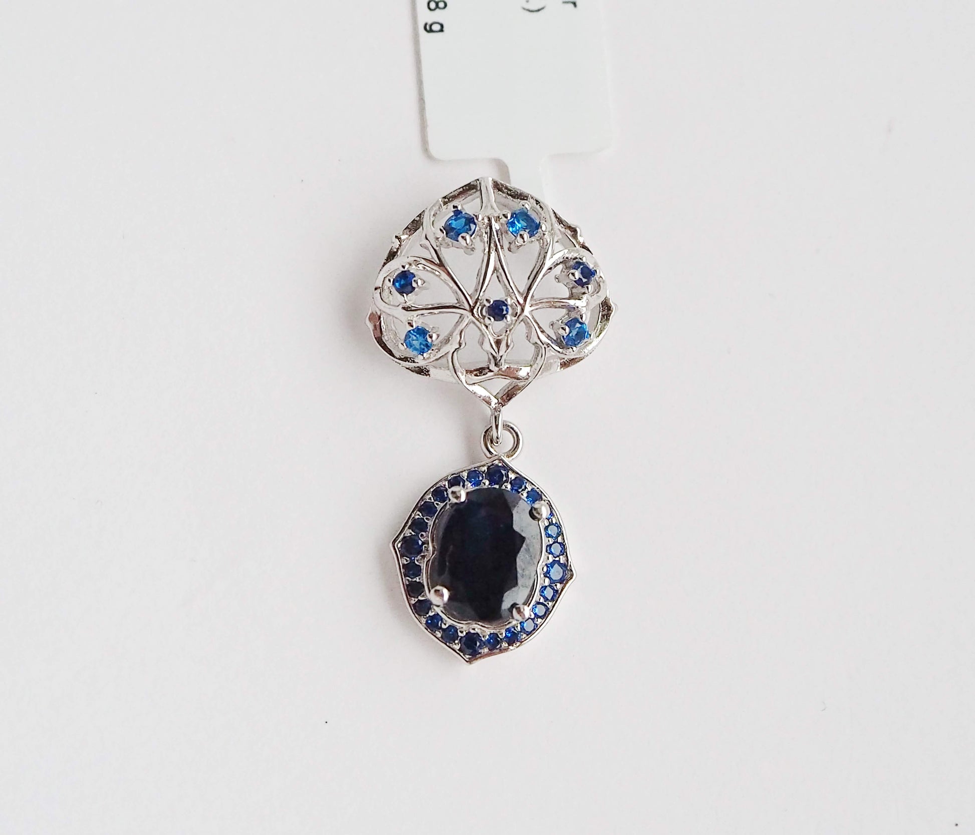 Silver Pendant with Sapphire and Zircons