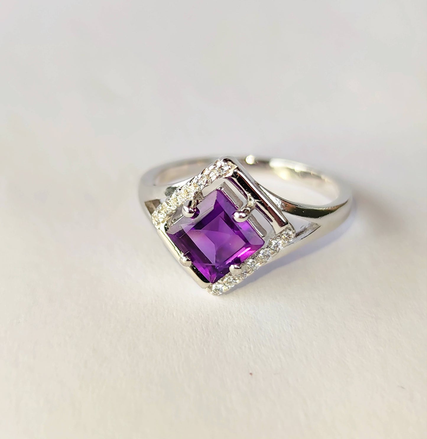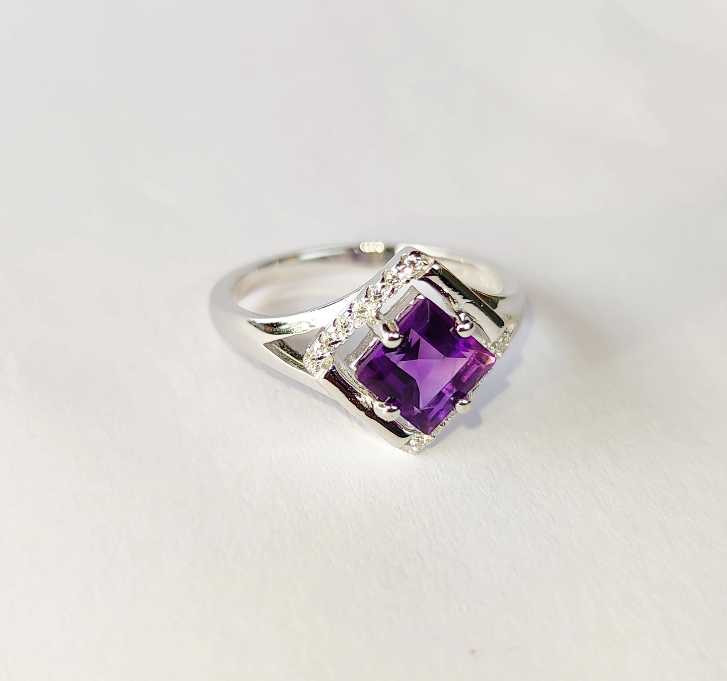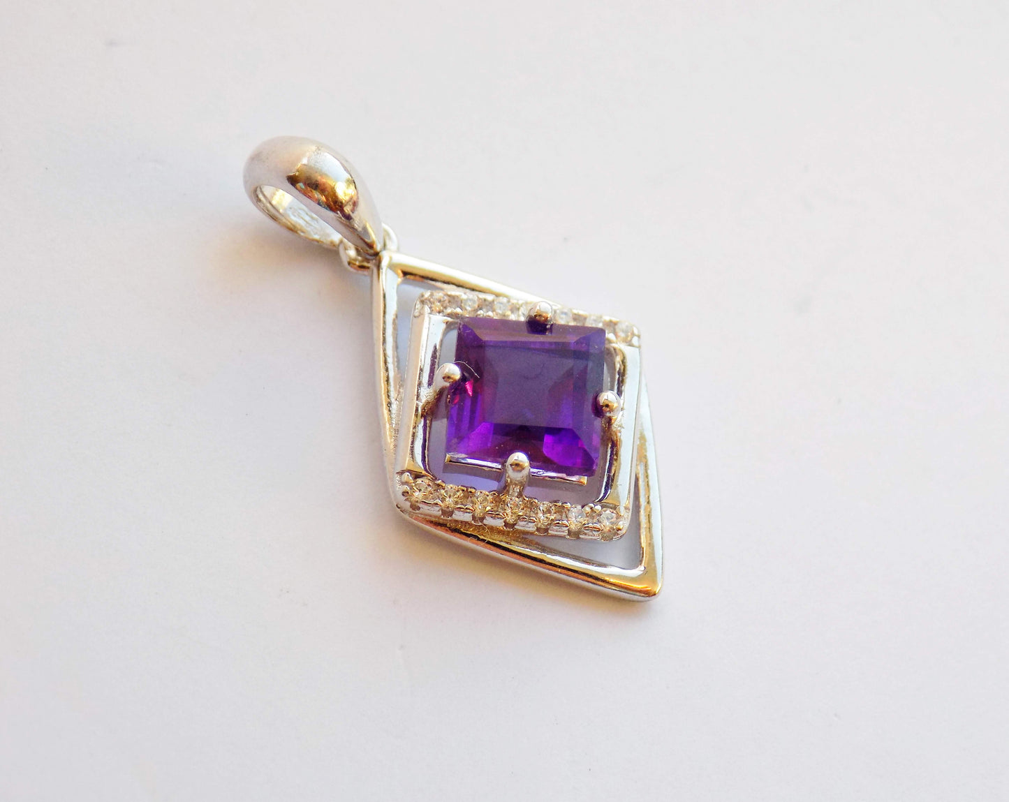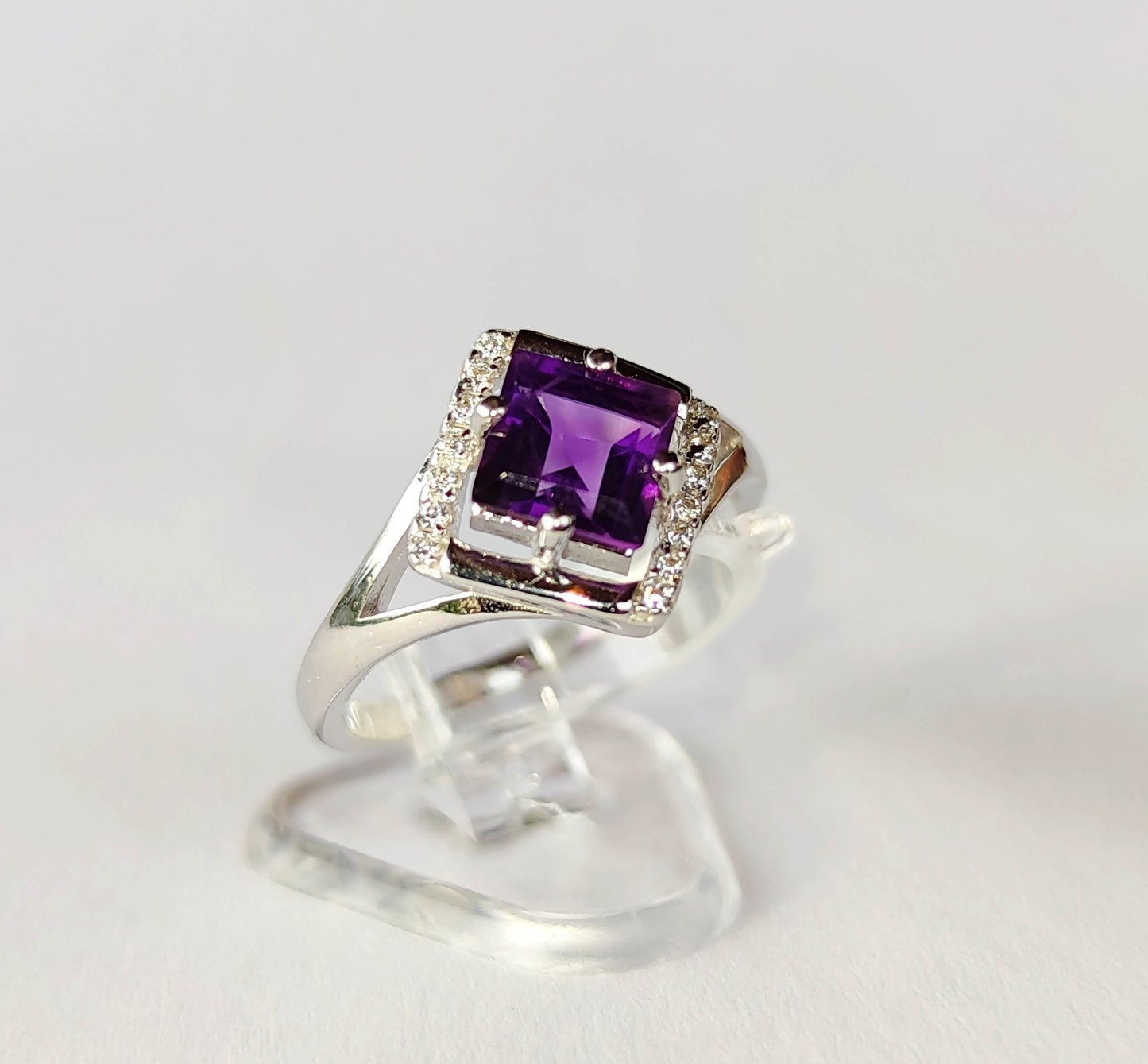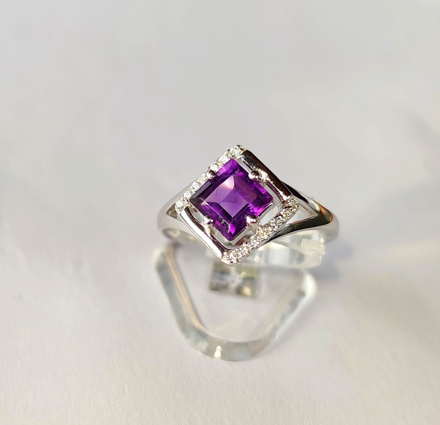 Natural gemstones: Amethyst 1 pc. (0.85 cm x 0.85 cm) and Zircons 14 pcs. (0.1 cm x 0.1 cm).