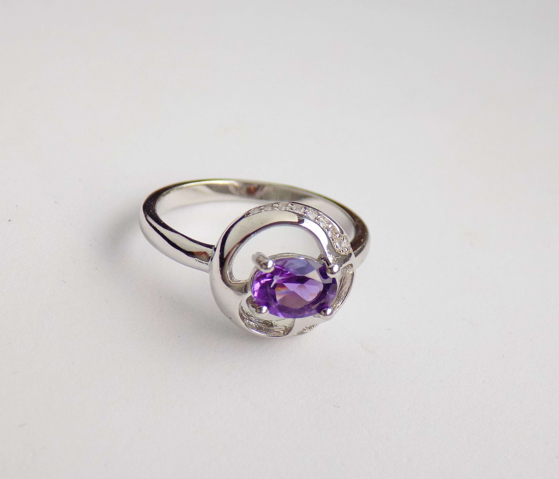 Natural gemstones: Amethyst 1 pc. (0.5 cm x 0.7 cm) and Zircons 19 pcs. (0.1 cm x 0.1 cm).