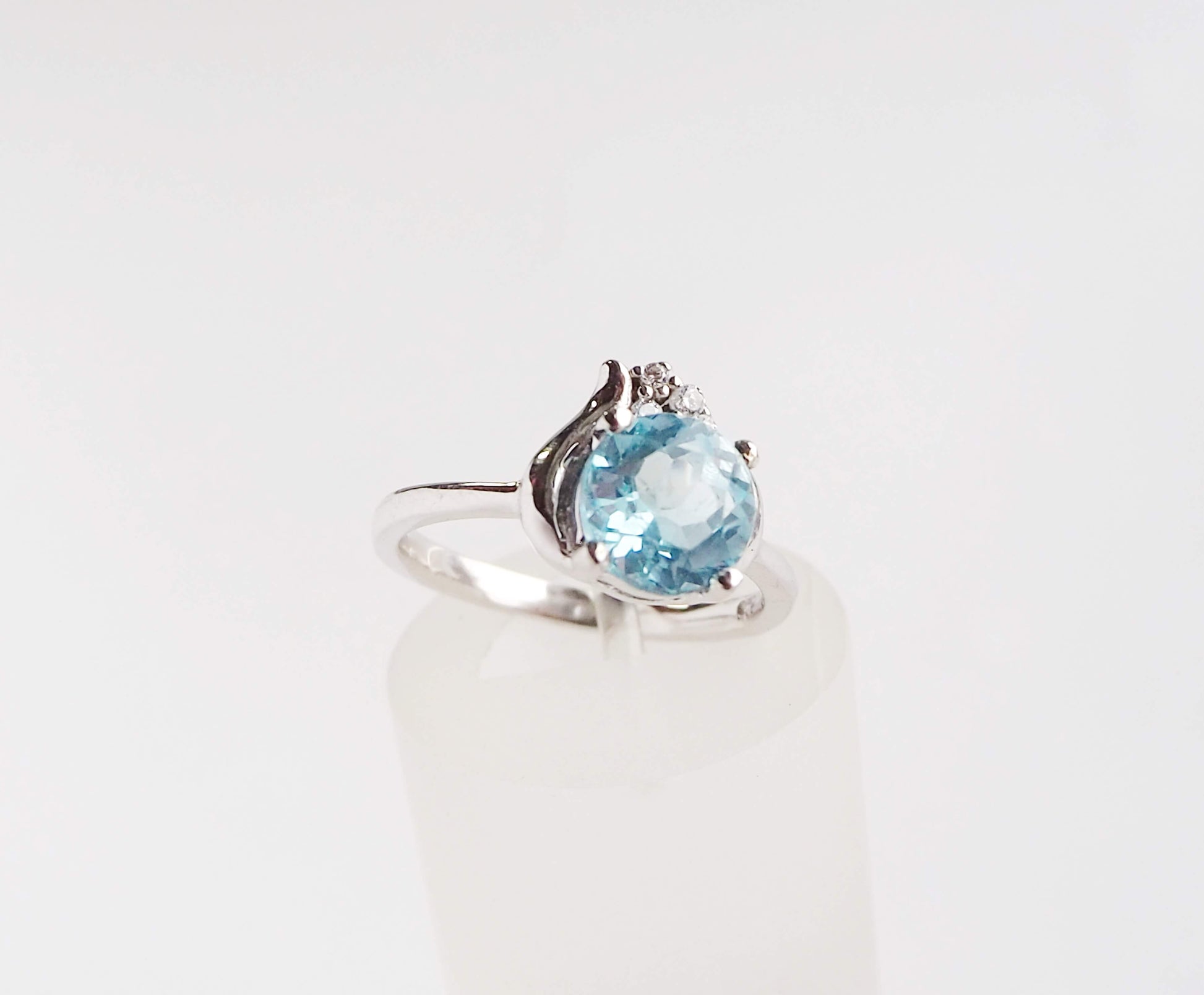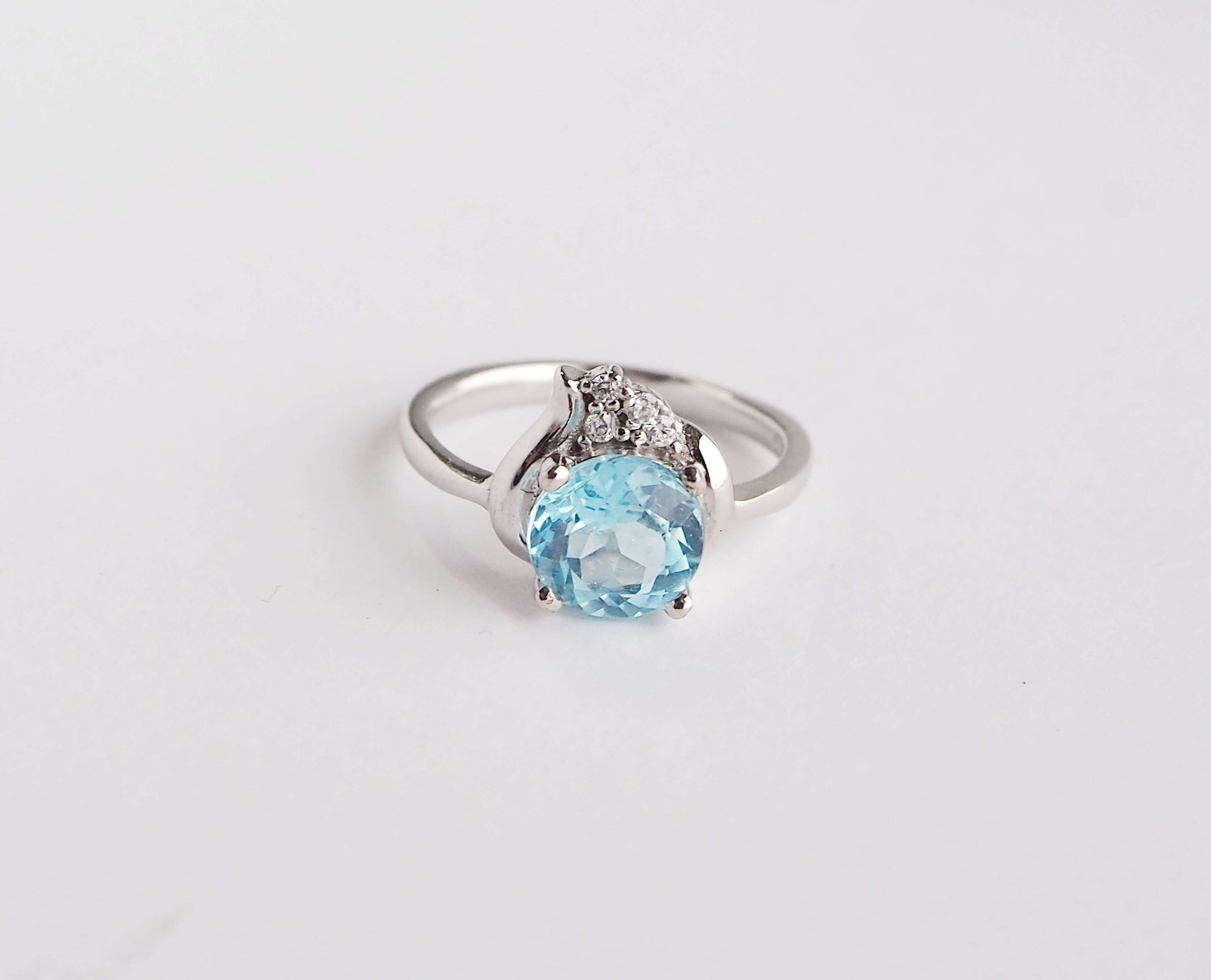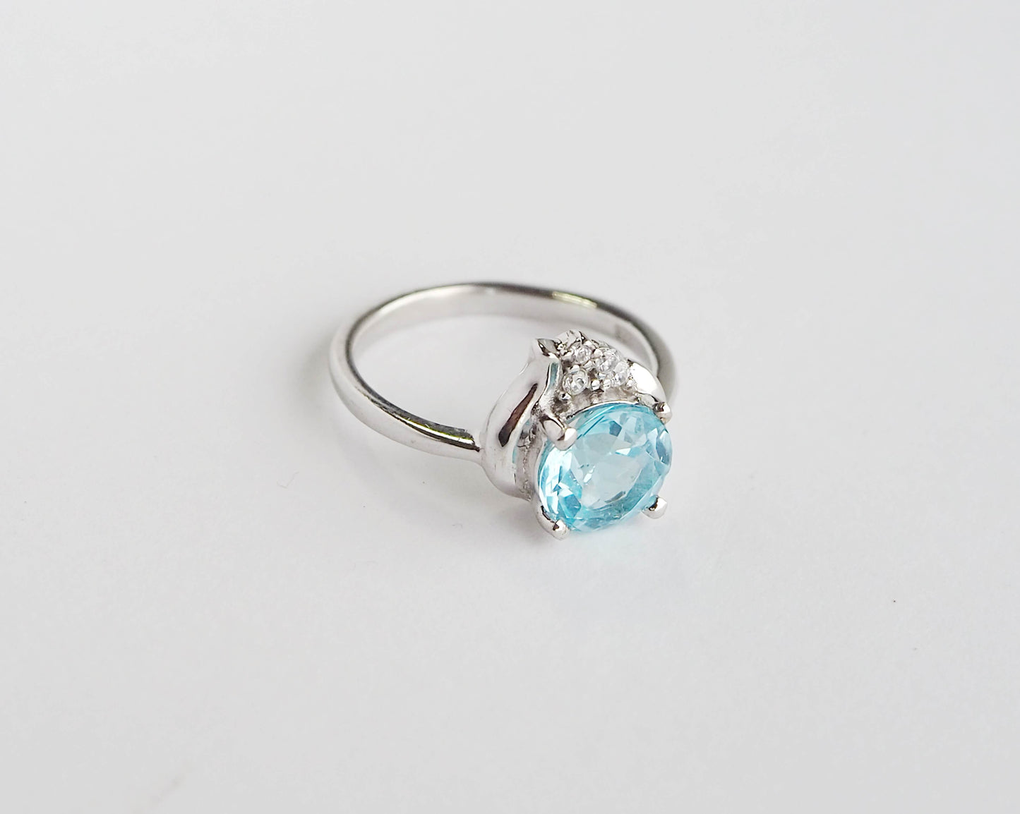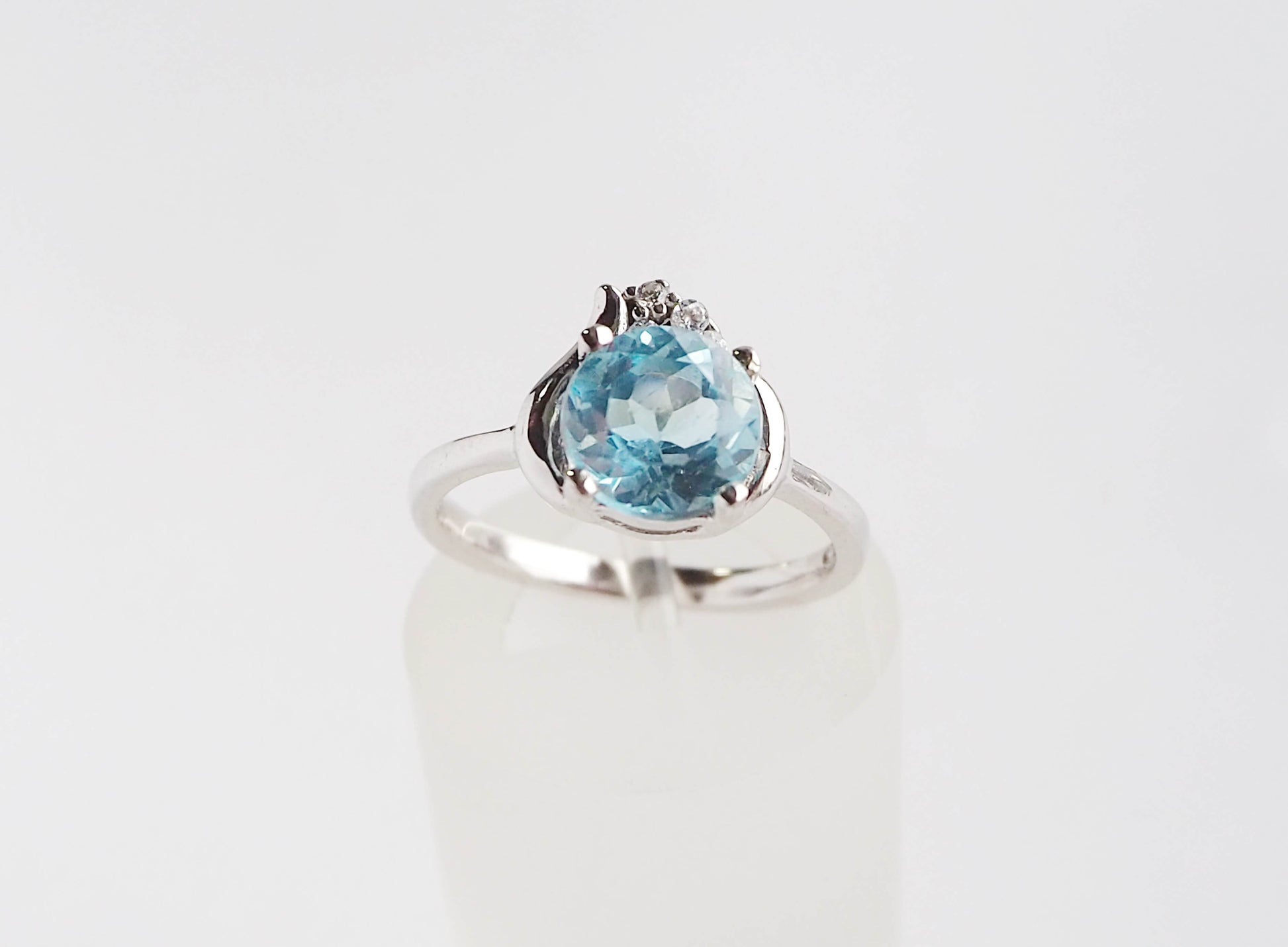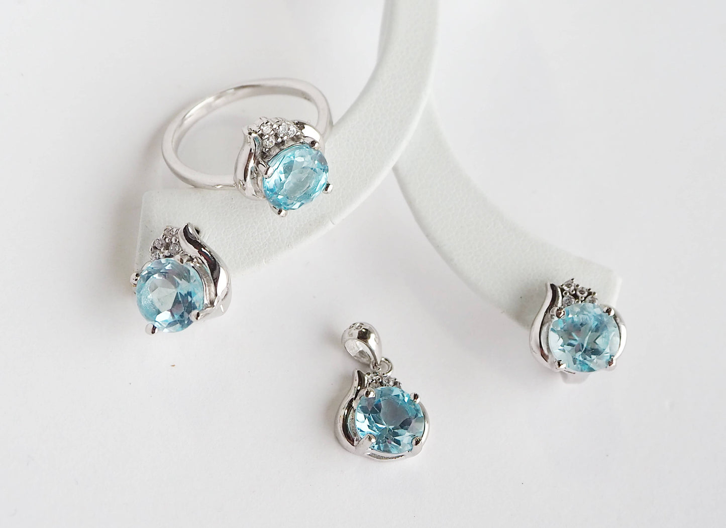 Natural gemstones: Blue Topaz 1 pc. (0.8 cm x 0.8 cm) and Zircons 4 pcs. (0.15 cm x 0.15 cm).