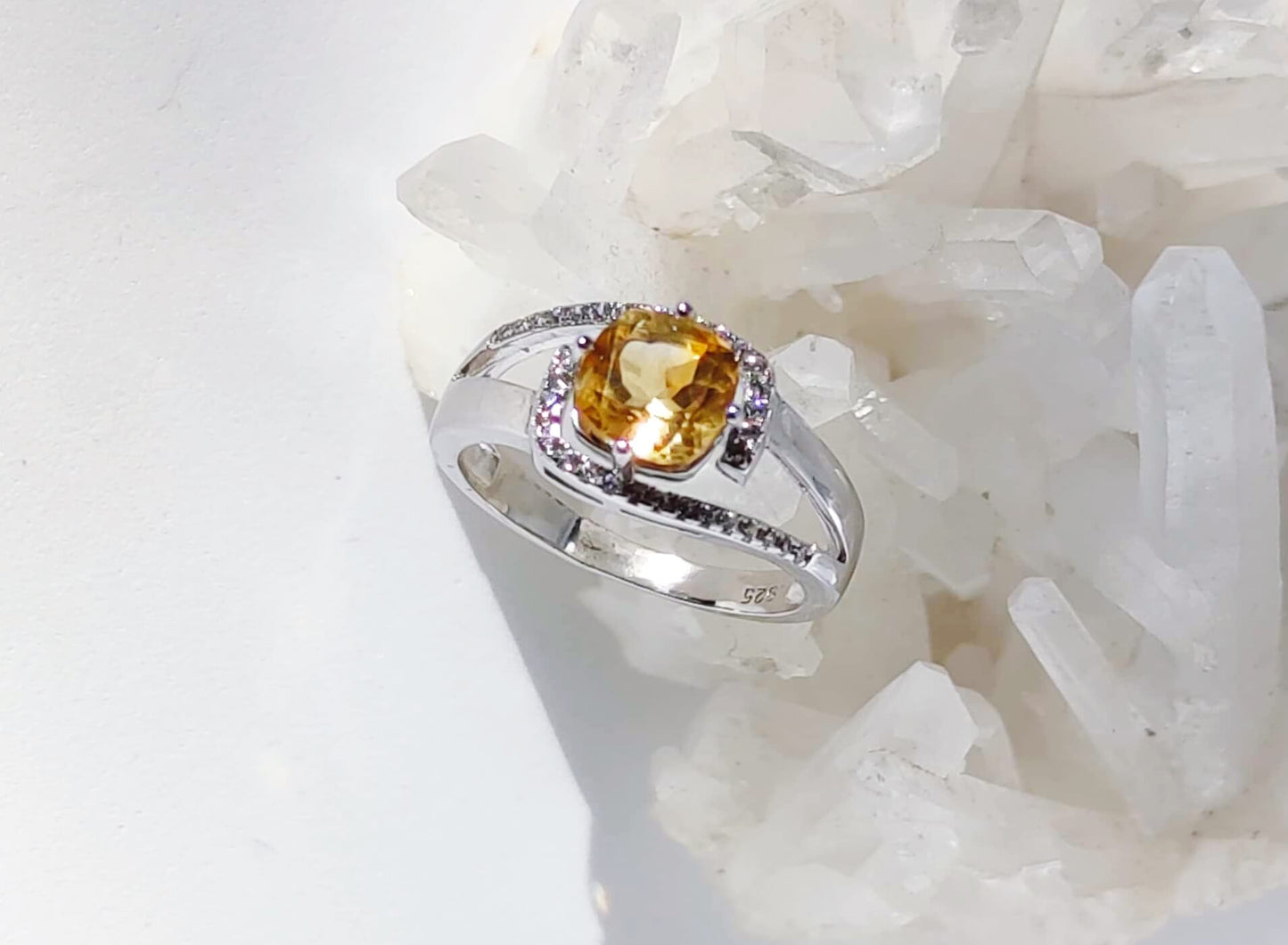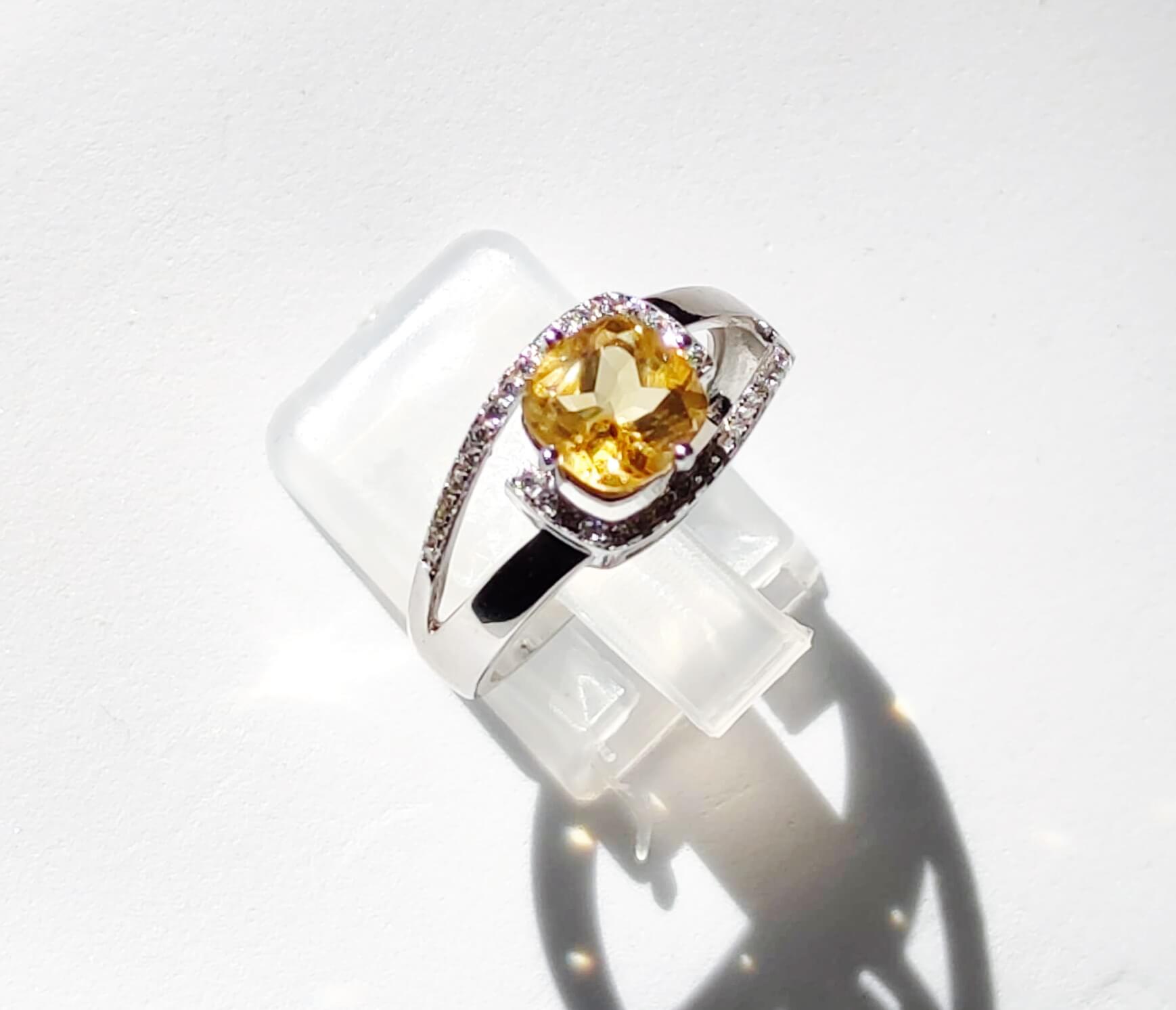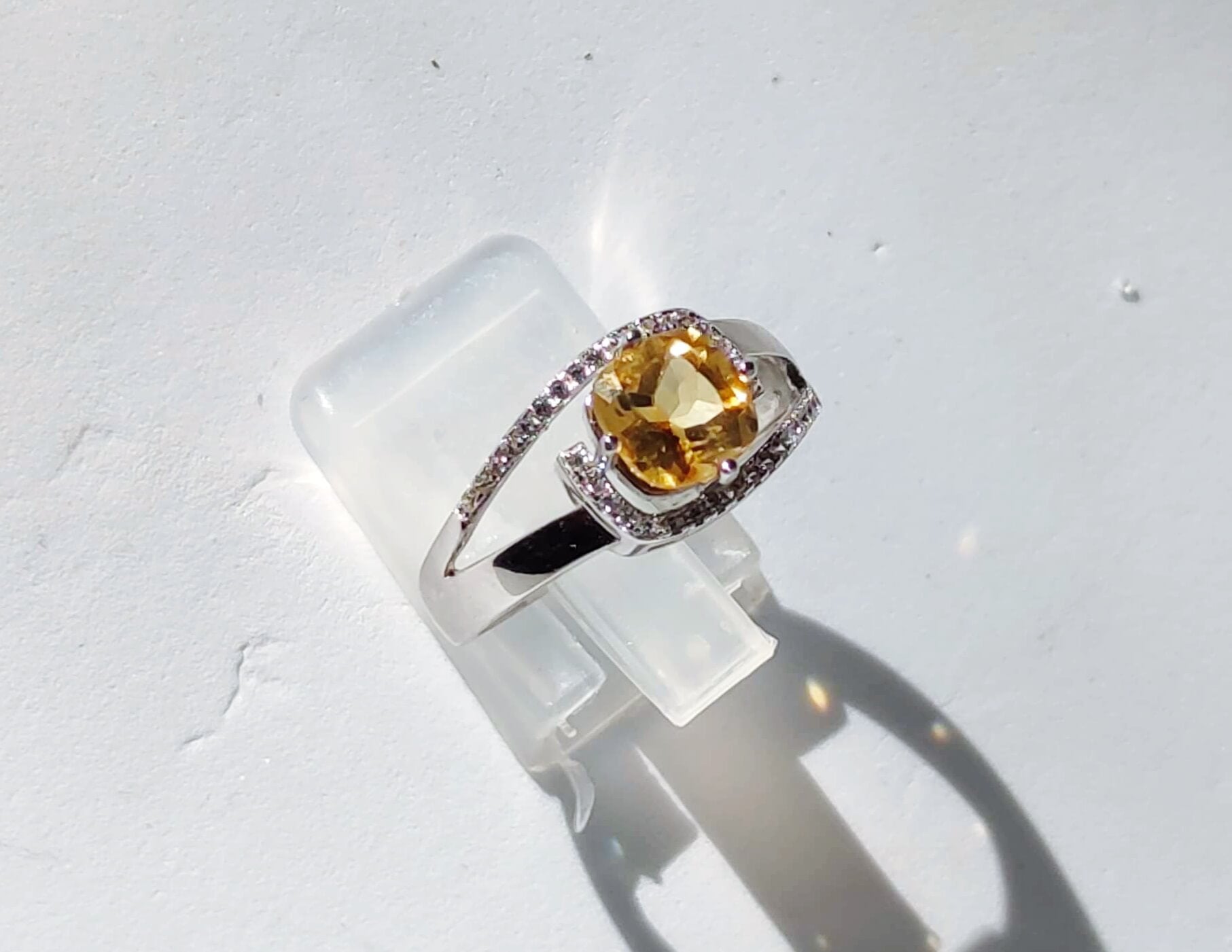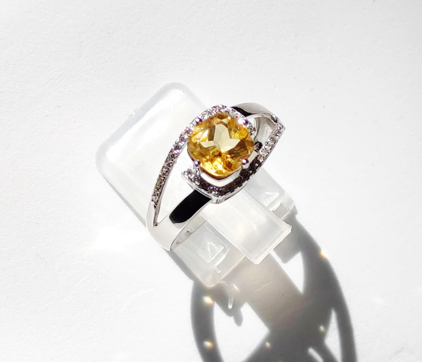 Natural gemstones: Citrine 1 pc. (0.7 cm x 0.7 cm) and Zircons 34 pcs. (0.1 cm x 0.1 cm).