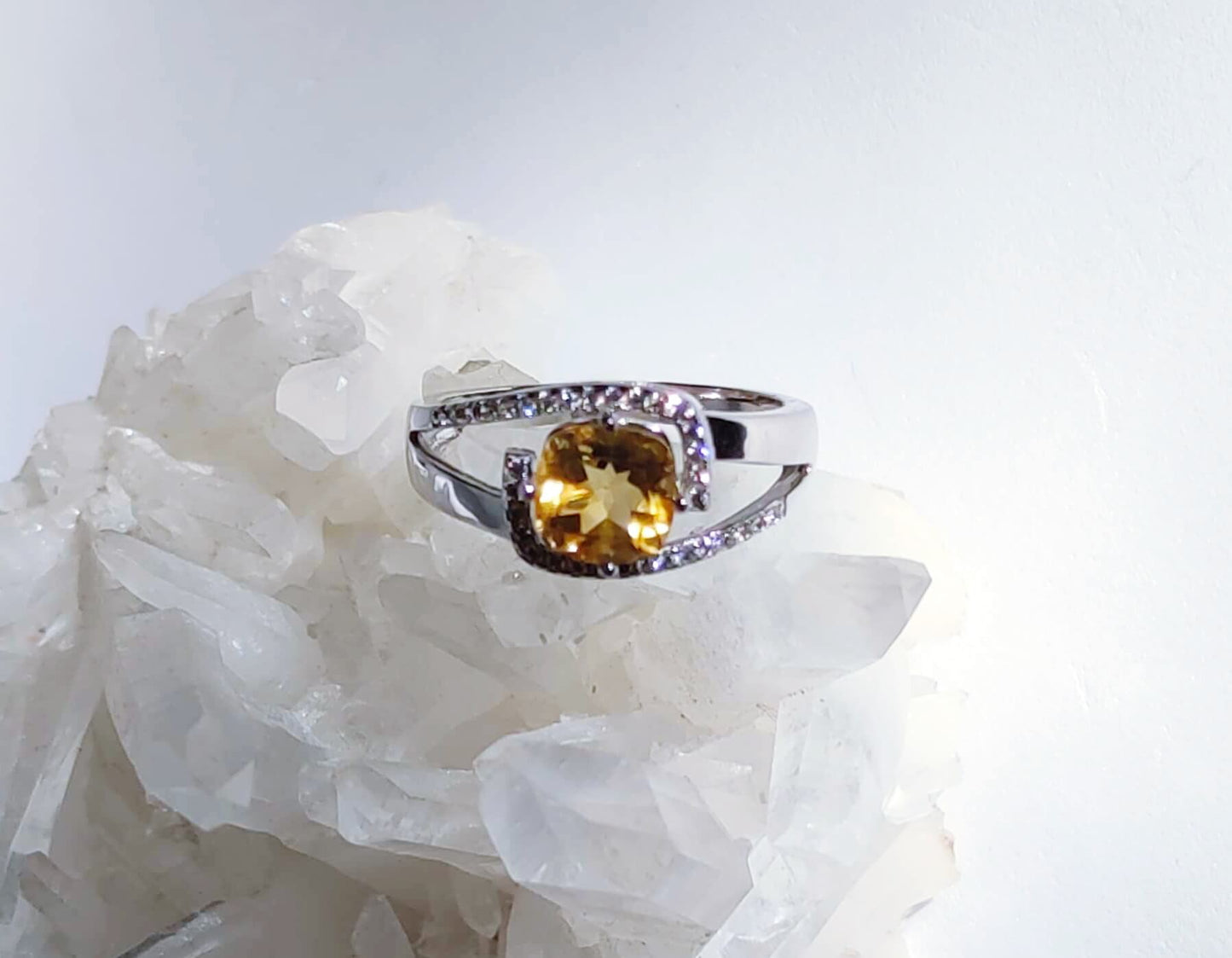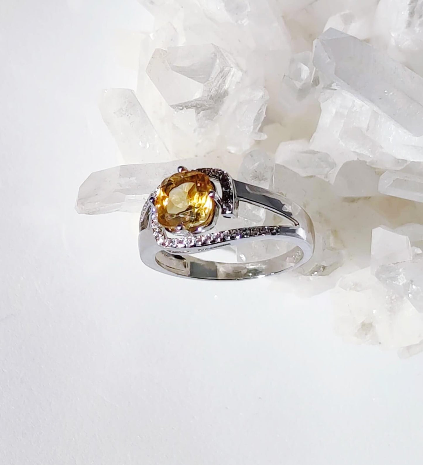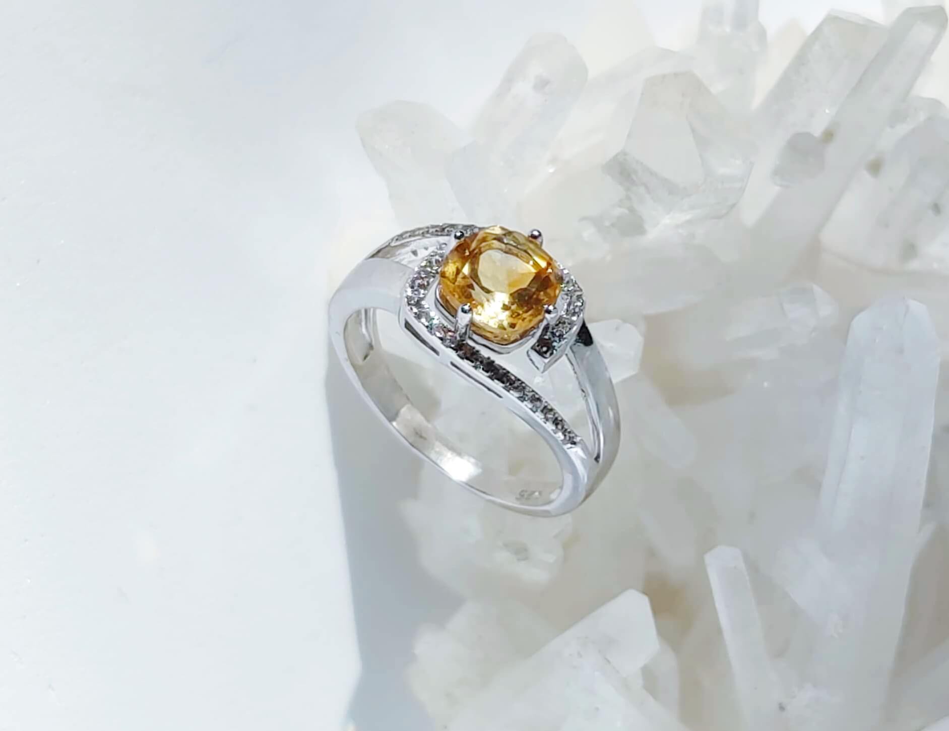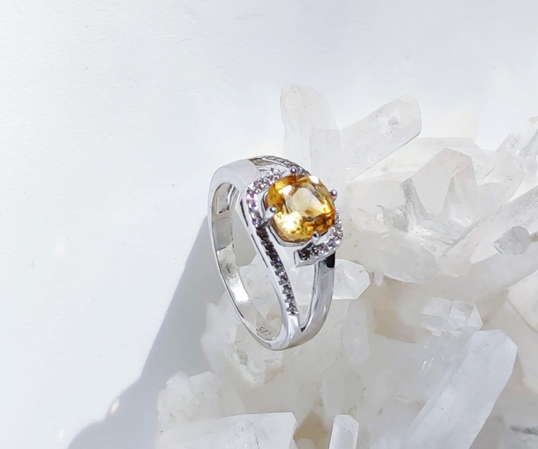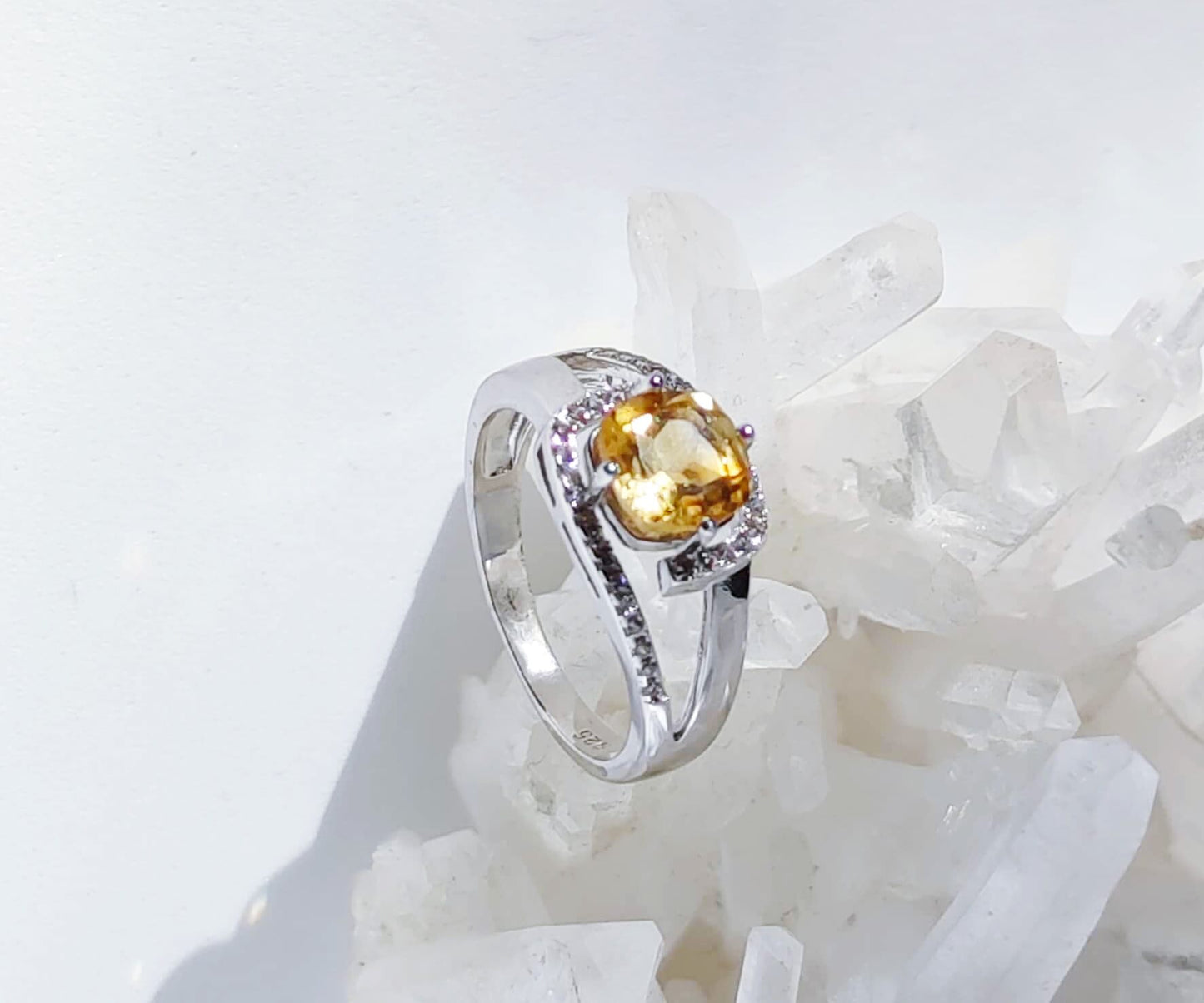 Natural gemstones: Citrine 1 pc. (0.7 cm x 0.7 cm) and Zircons 34 pcs. (0.1 cm x 0.1 cm).