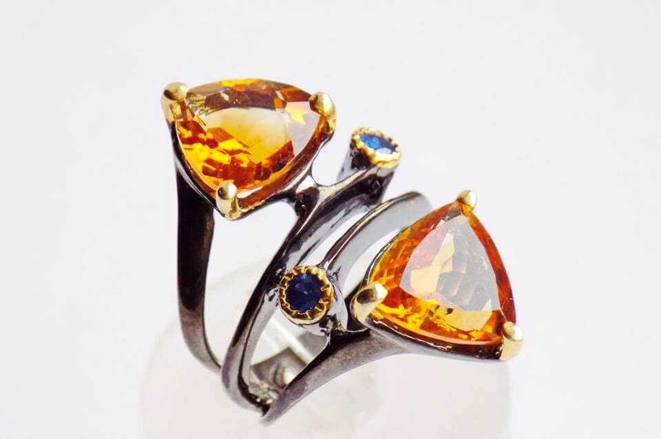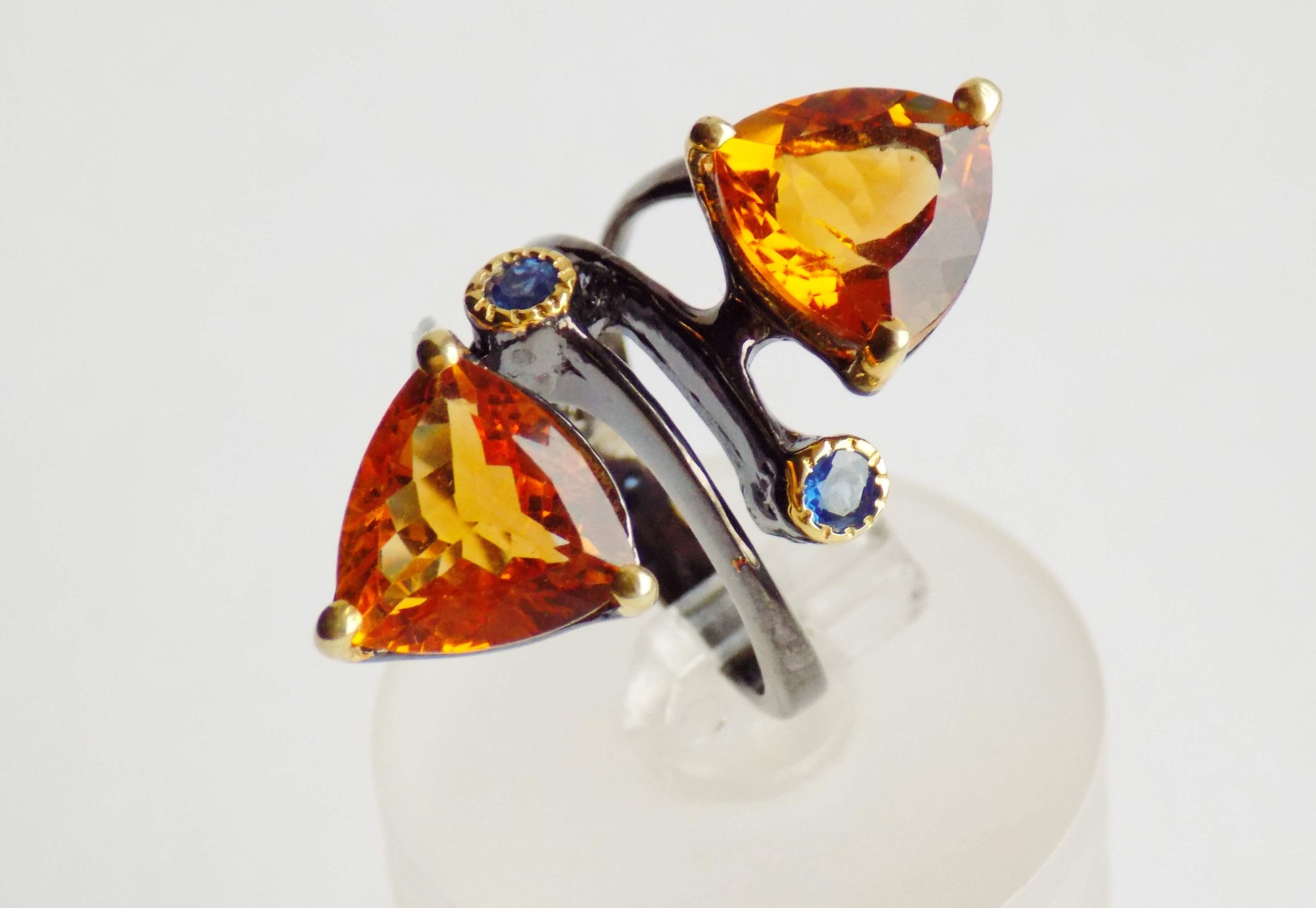 Natural gemstones: Citrines 2 pcs. ( 1.1 cm x 1.1 cm x 1.1 cm) and Blue Sapphires 2 pcs. - 0.3ct (0.3 cm x 0.3 cm).