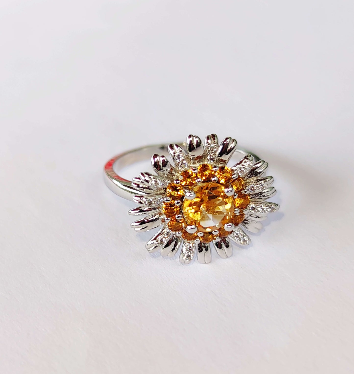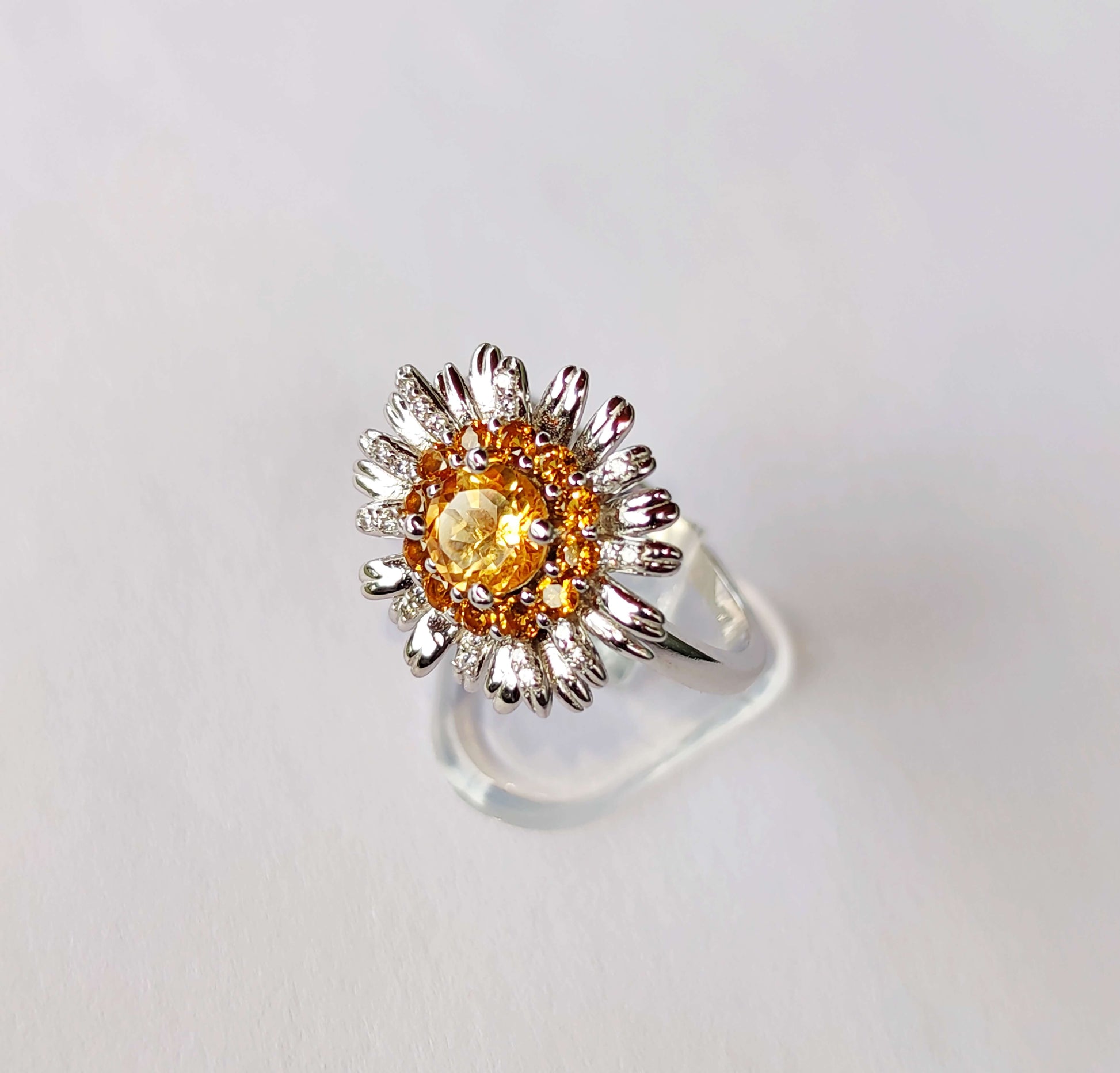 Natural gemstones: Citrines 1 pc. (0.6 cm x 0.6 cm), 12 pcs. (0.2 cm x 0.2 cm) and Zircons 21 pcs. (0.1 cm x 0.1 cm).