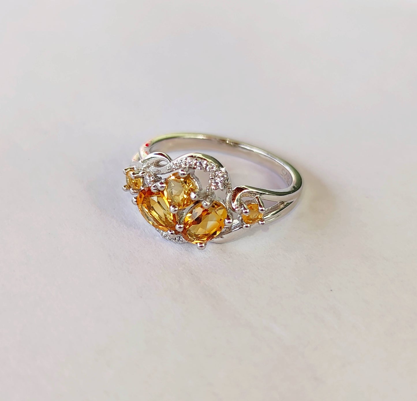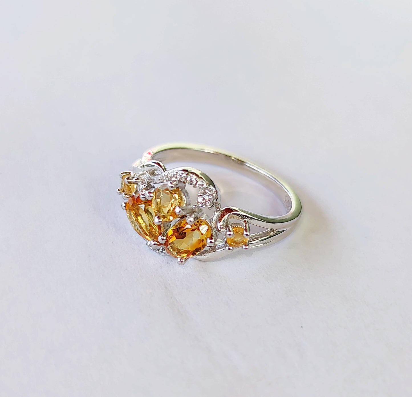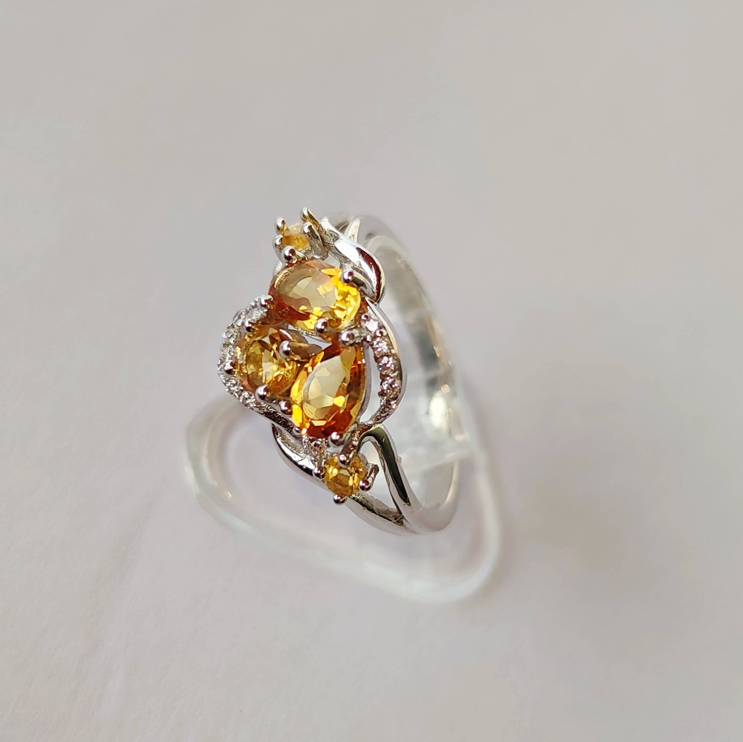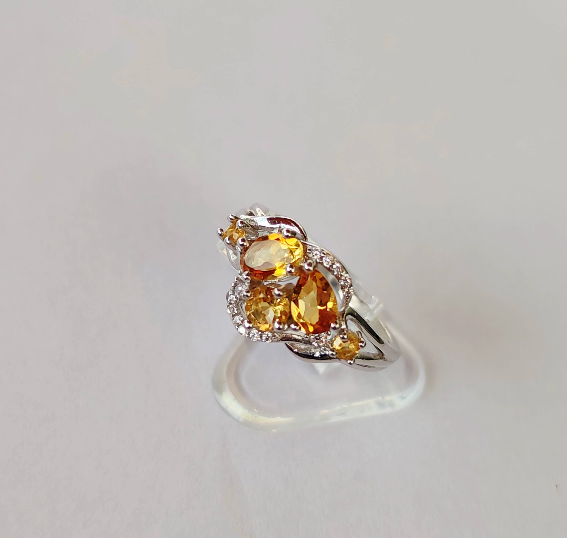 Natural gemstones: Citrines 2 pcs. (0.4 cm x 0.6 cm), 1 pc. (0.4 cm x 0.4 cm), 2 pcs. (0.25 cm x 0.25 cm) and Zircons 2 pcs. (0.15 cm x 0.15 cm), 11 pcs. (0.1 cm x 0.1 cm).