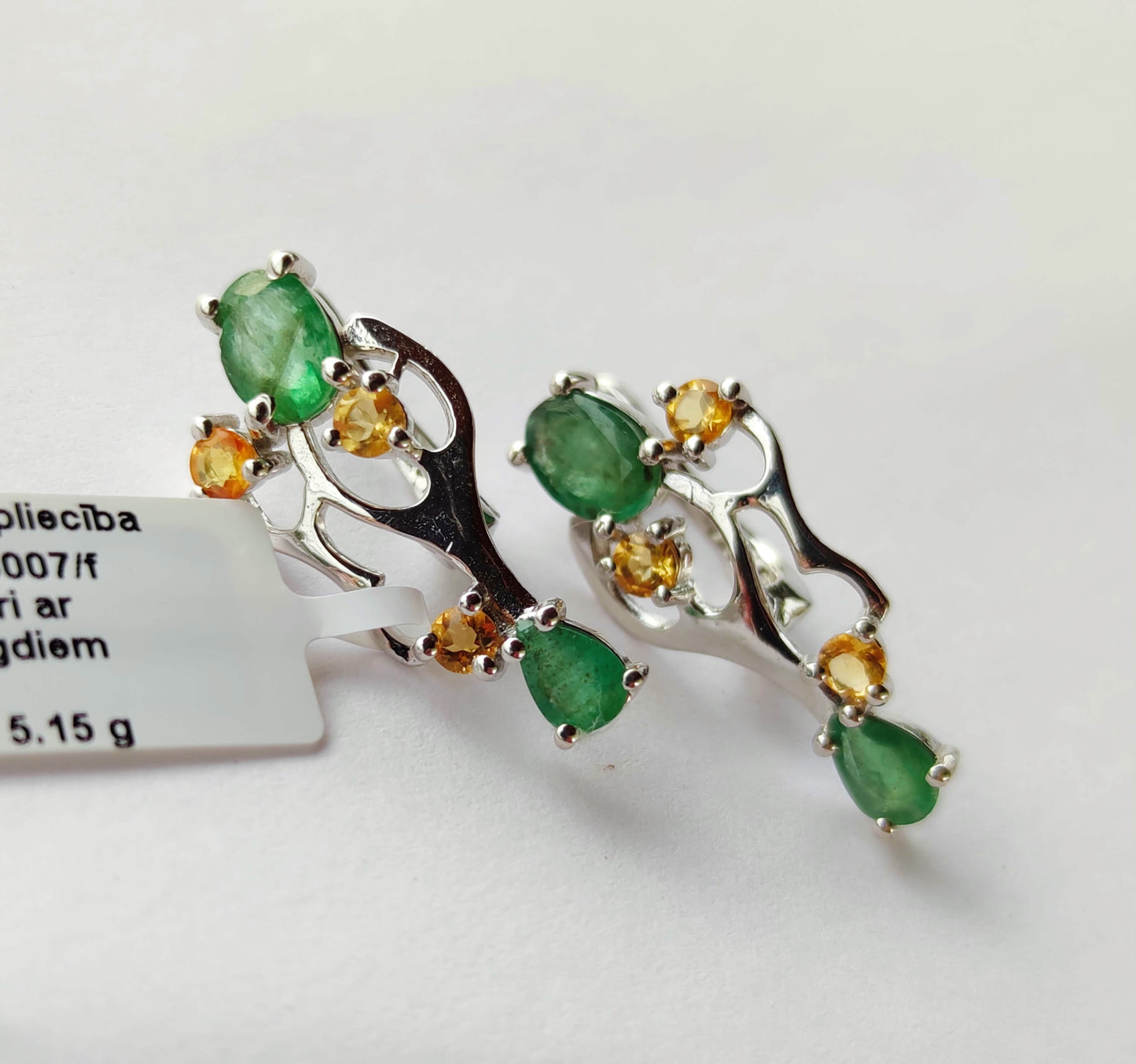 Natural gemstones: Emeralds 1.14ct - 1 pc. (0.5 cm x 0.7 cm), 1 pc. (0.4 cm x 0.6 cm), Citrines 4 pcs. (0.3 cm x 0.3 cm - 0.33 cm x 0.33 cm) and Rhodolite Garnet 1 pc. (0.25 cm x 0.25 cm).