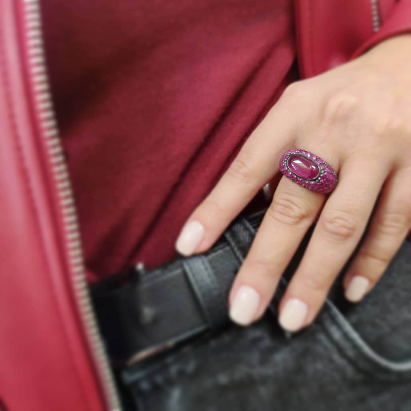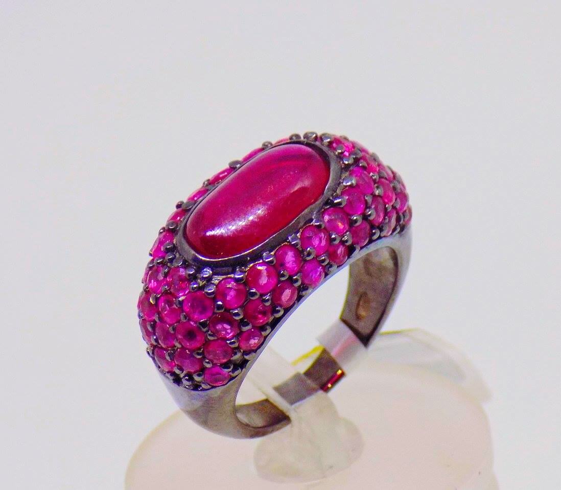 Natural gemstones: Rubies 9.4ct- 1 pc. cabochon, treated (0.65 cm x 1.2 cm) and 60 pcs. faceted (0.25 cm x 0.25 cm).