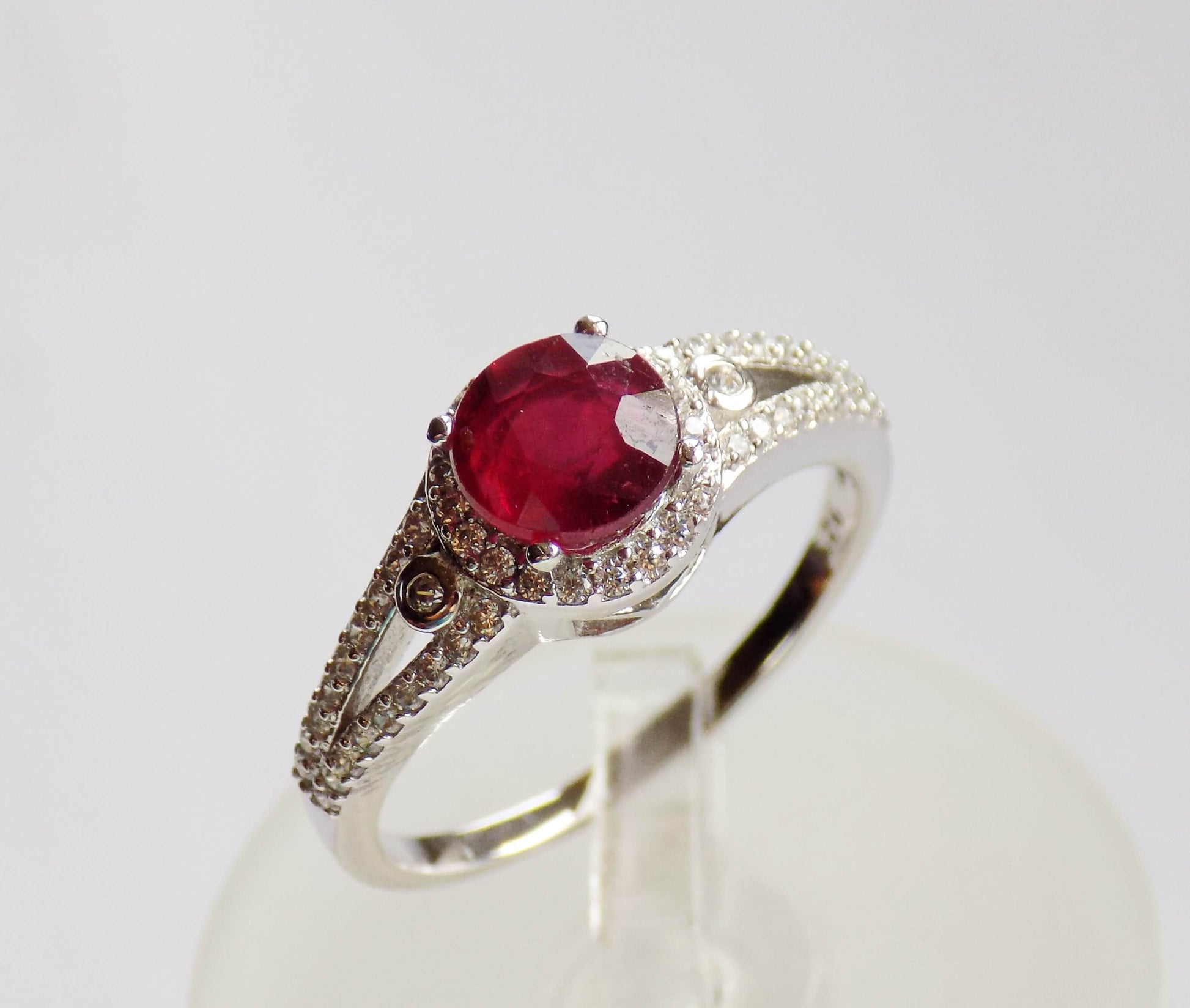 Natural gemstones: Ruby 1 pc. (0,63 cm x 0,63 cm) and Zircons 58 pcs. (0,1 cm x 0,1 cm).