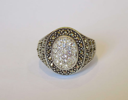Серебряное кольцо с цирконом и ониксами