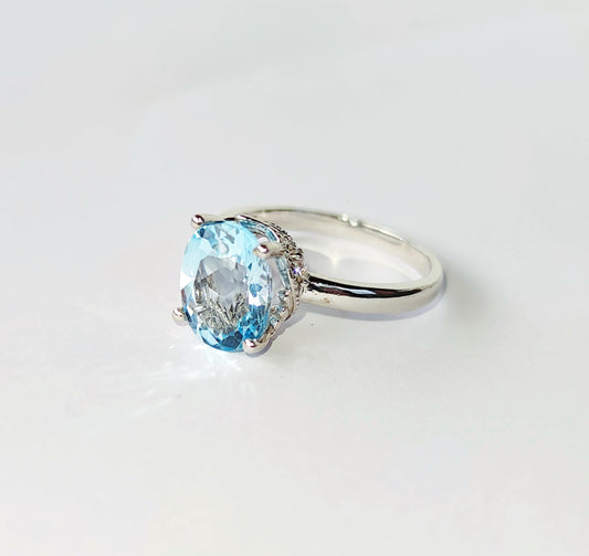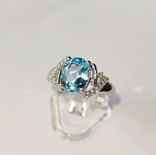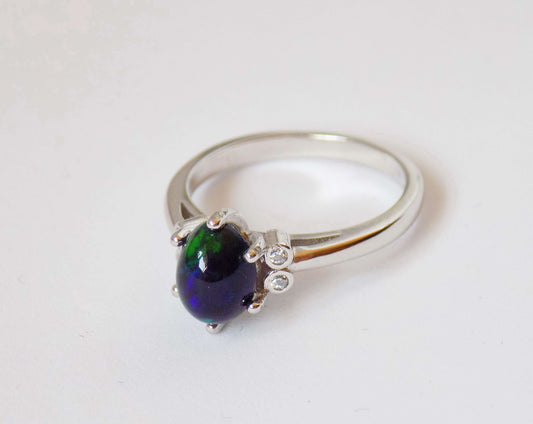 Серебряное кольцо с чёрным Опалом и Цирконами
