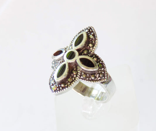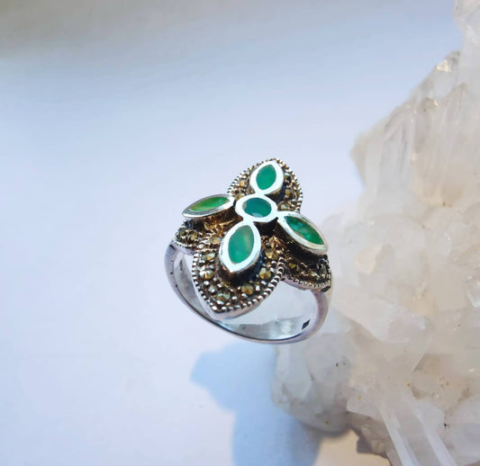 Серебряное кольцо с зеленой эмалью