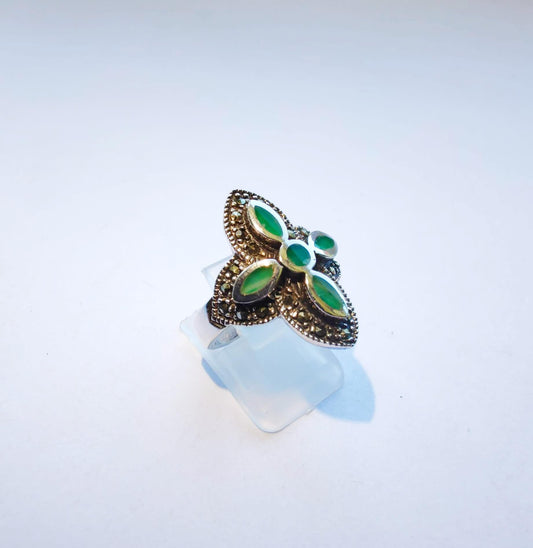 Серебряное кольцо с зеленым агатом