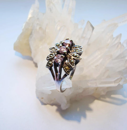 Серебряное кольцо с розовыми цирконами