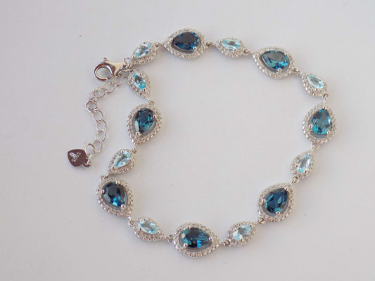 Серебряный браслет с Лондон Топазами, голубыми Топазами и Цирконами