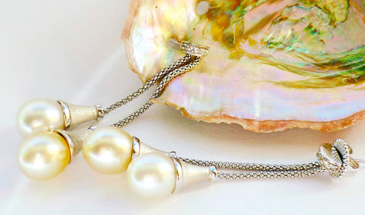 Серебряные серьги с белым и золотым морским жемчугом и цирконами