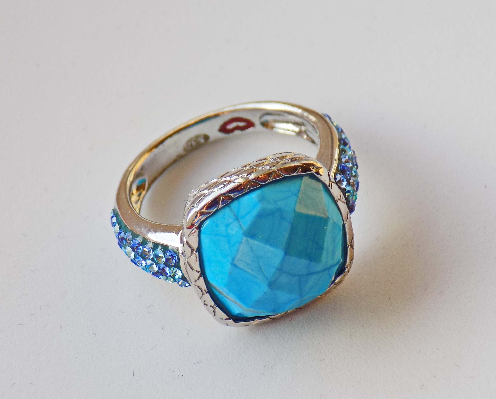 Серебряное кольцо с Бирюзой и кристаллами SWAROVSKI