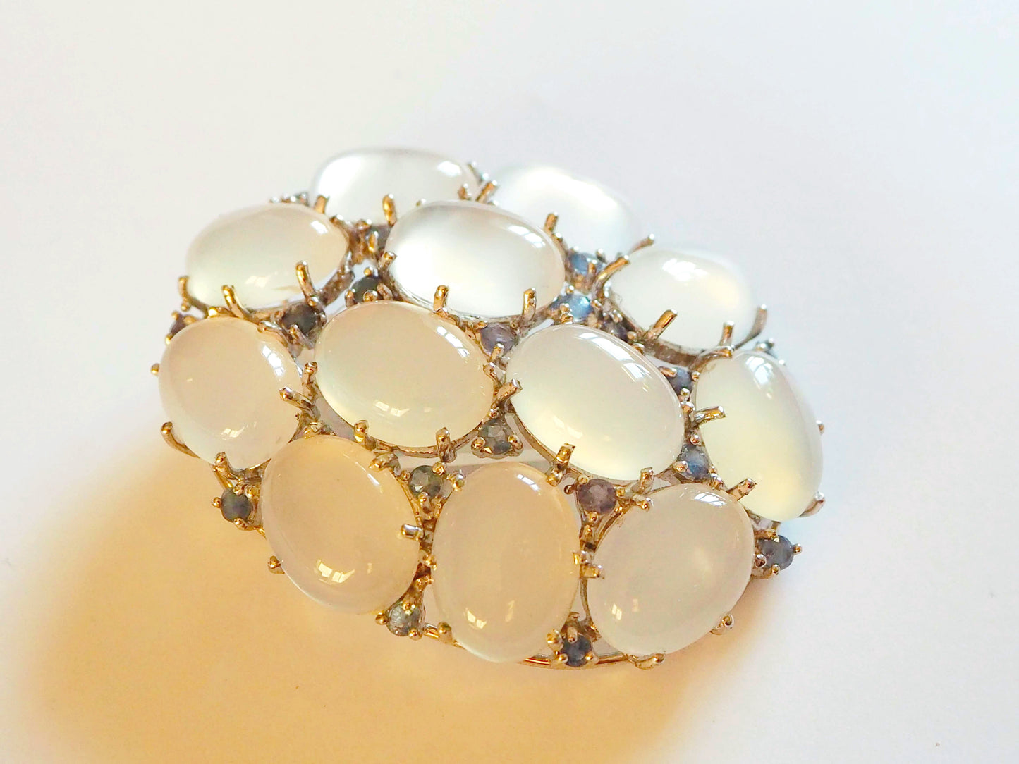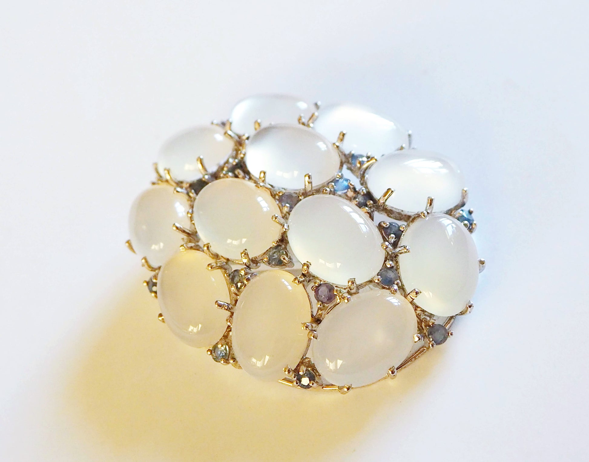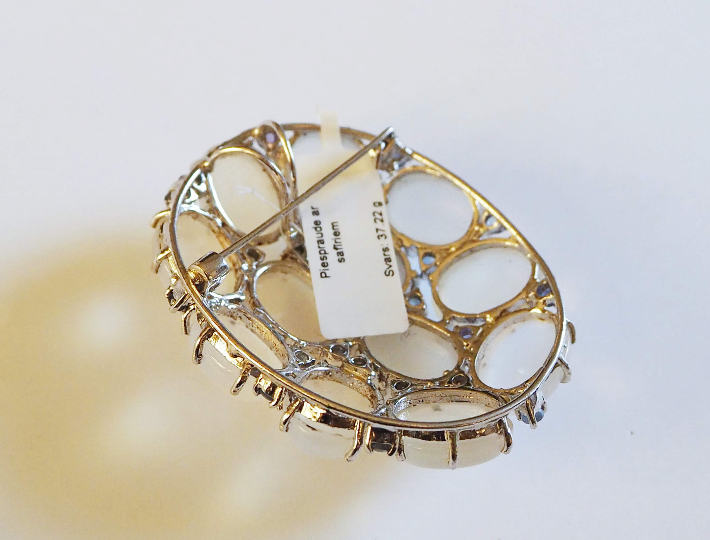 Серебряная брошь-кулон с агатами и голубыми сапфирами