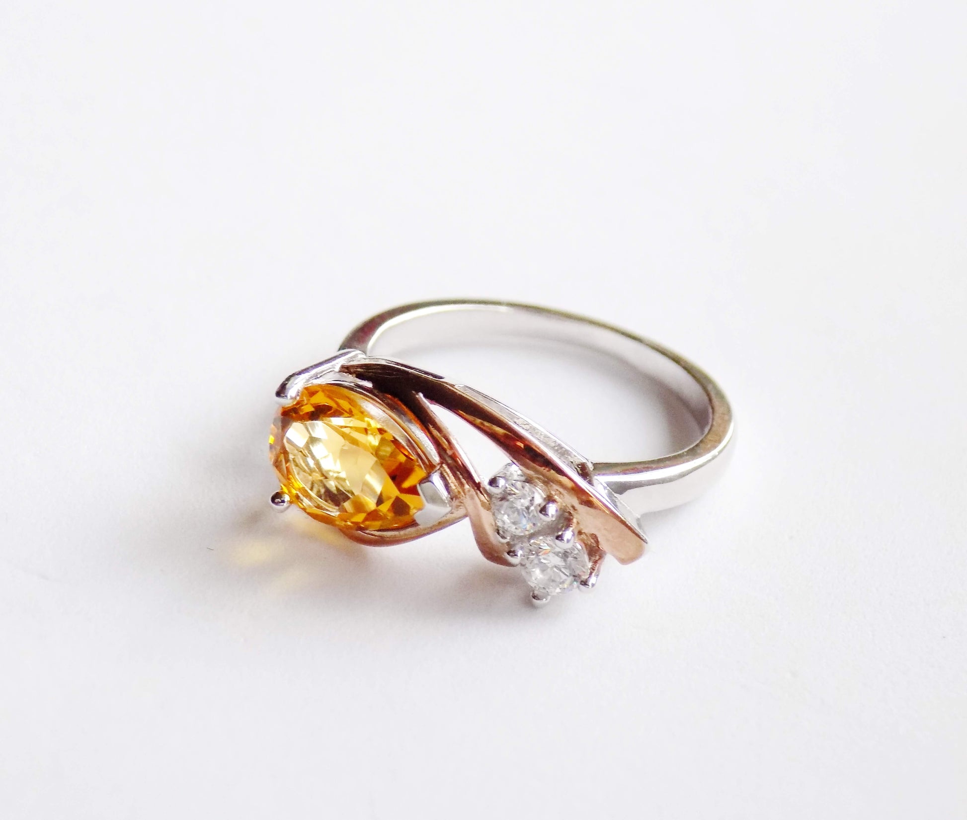 Натуральные драгоценные камни: Цитрин 1 шт. (0,7 см х 0,9 см) и Цирконы 2 шт. (0,25 см х 0,25 см) (0,3 см х 0,3 см).