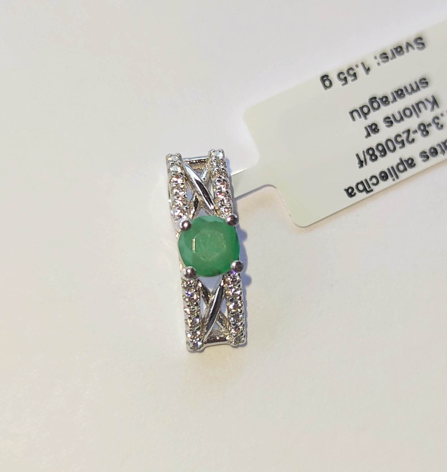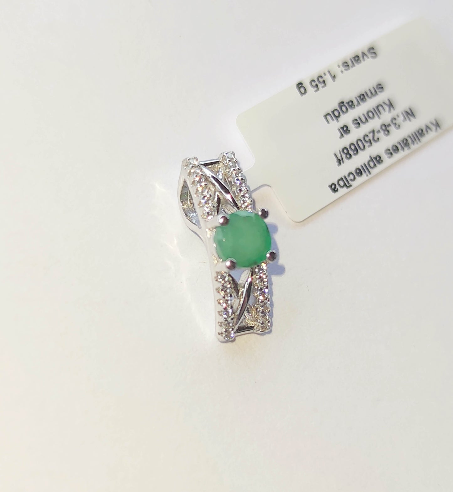 Натуральные драгоценные камни: Изумруд 0,48 карата - 1 шт. (0,5 см х 0,5 см) и Цирконы 24 шт. (0,1 см х 0,1 см).
