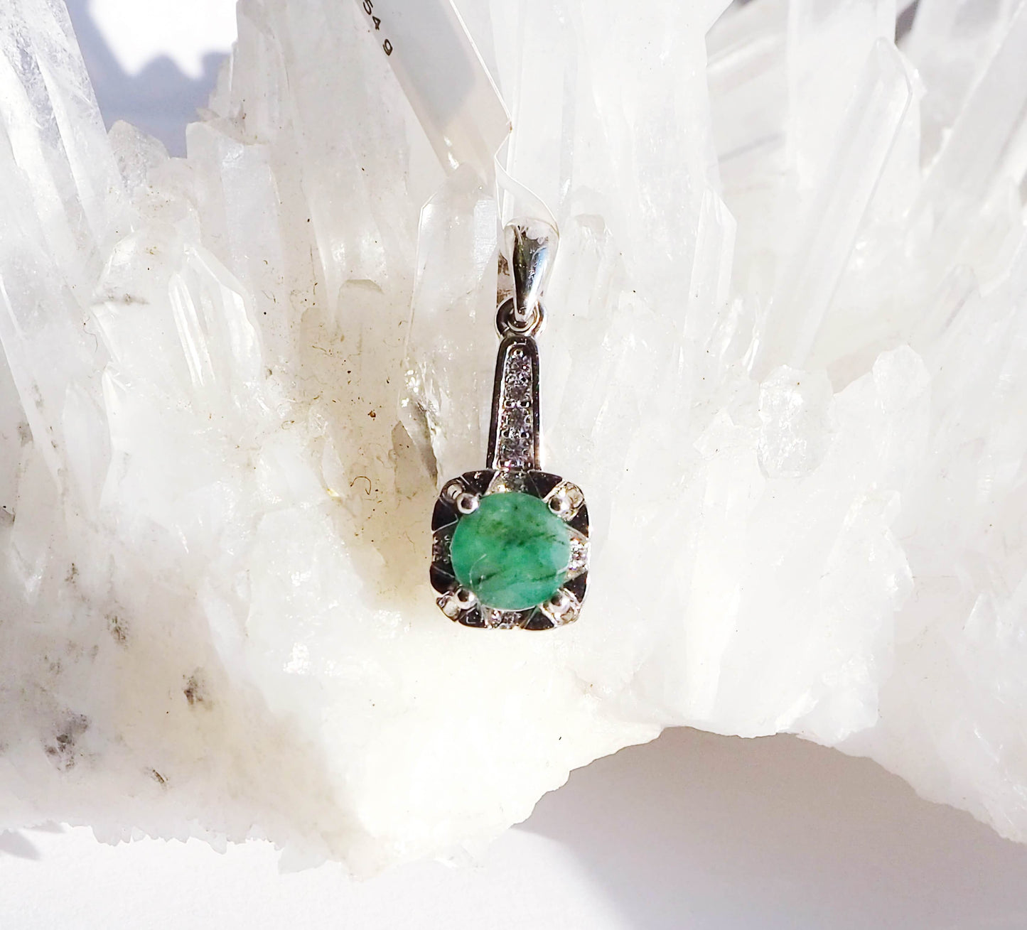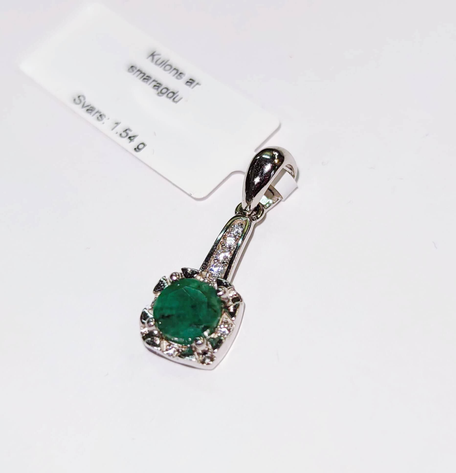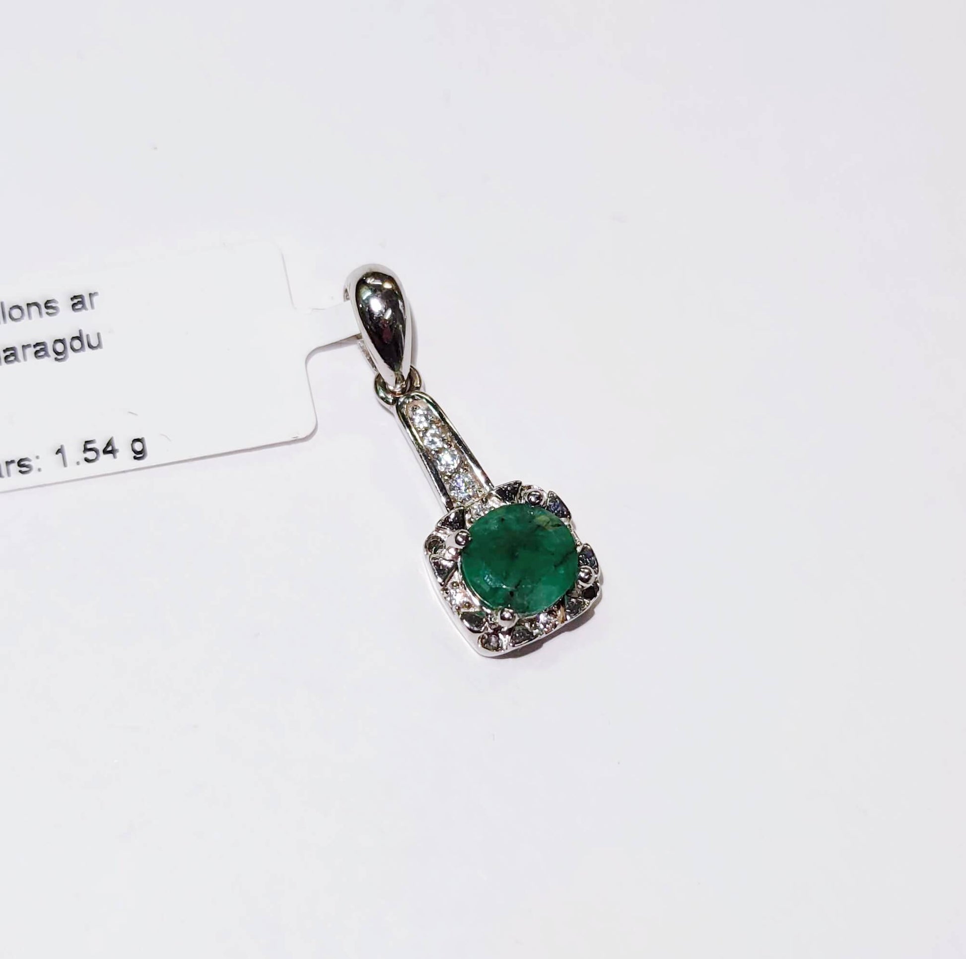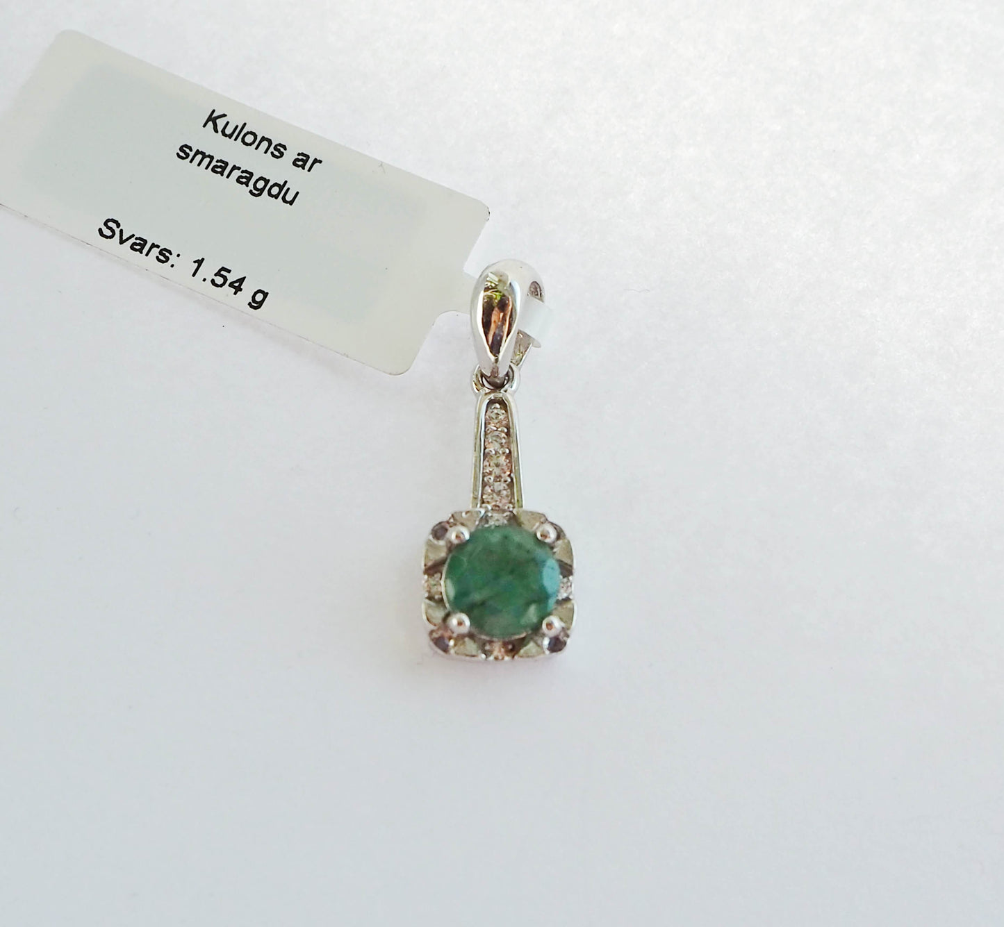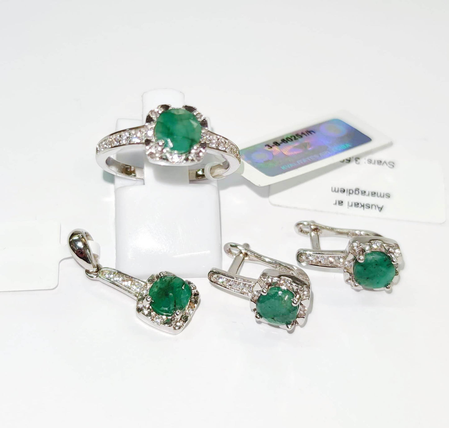 Натуральные драгоценные камни: Изумруд 0,8 карата - 1 шт. (0,6 см х 0,6 см) и Цирконы 8 шт. (0,1 см х 0,1 см-0,15 см х 0,15 см).