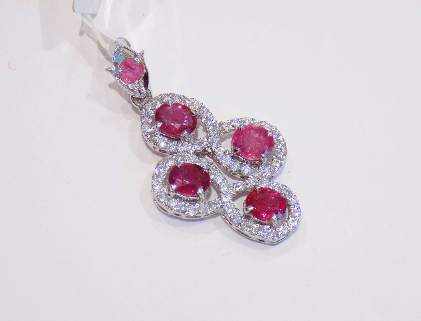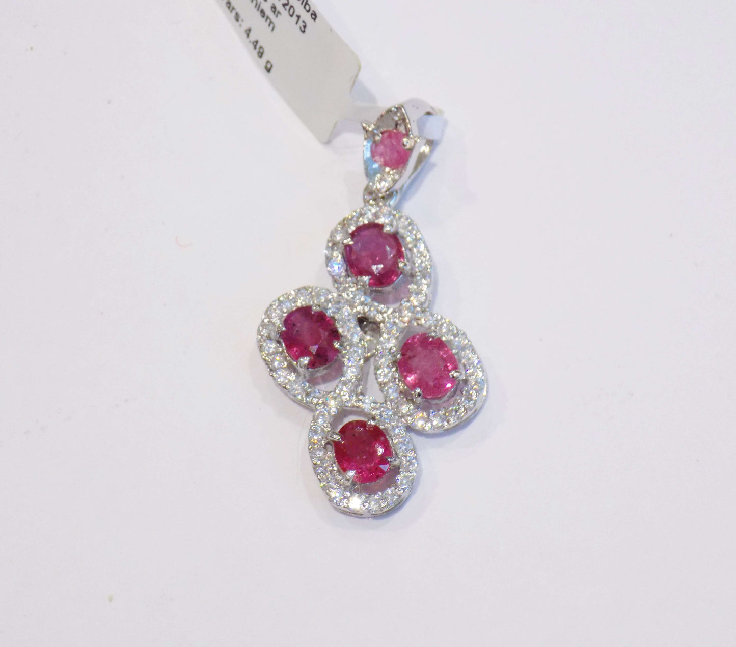 Природные камни: Рубины 4 шт. (0.5 см х 0.6 см), 1 шт. (0.35 см х 0.35 см) и Цирконы 64 шт. (0.15 см х 0.15 см).
