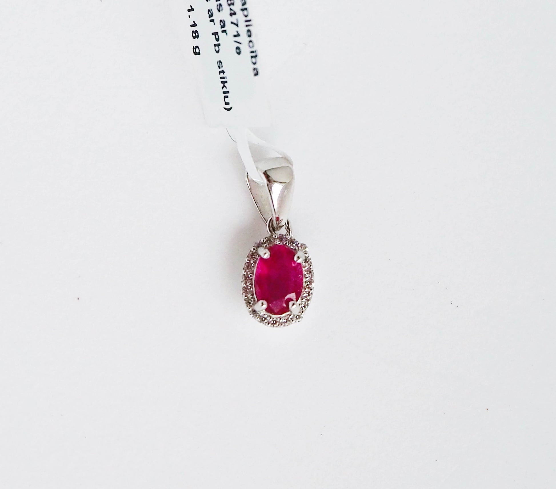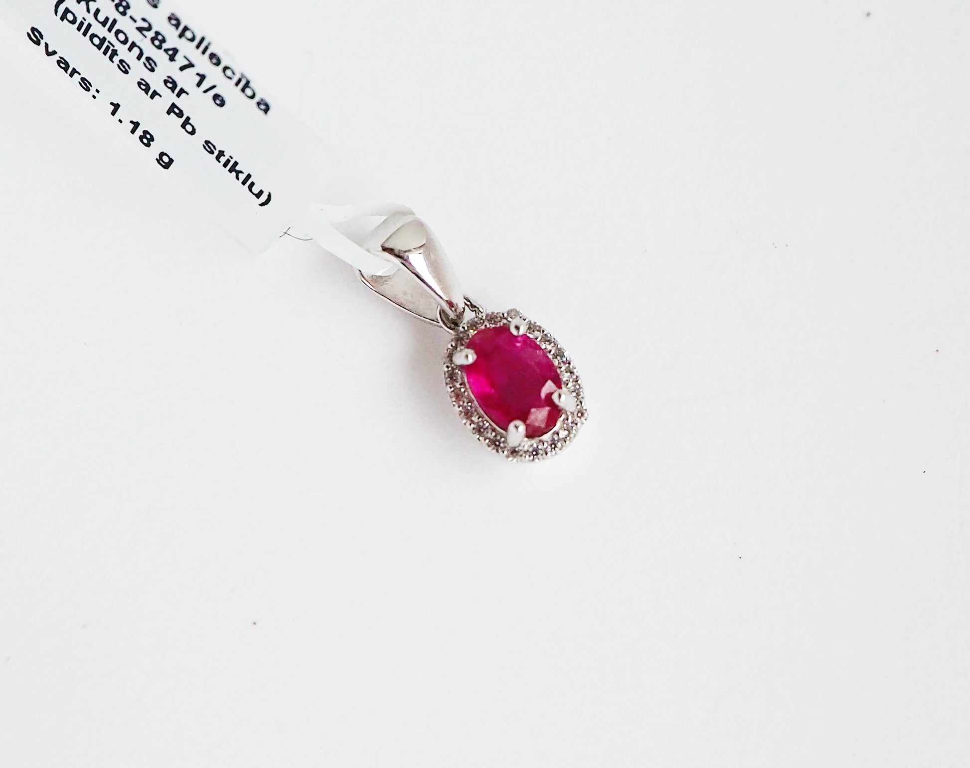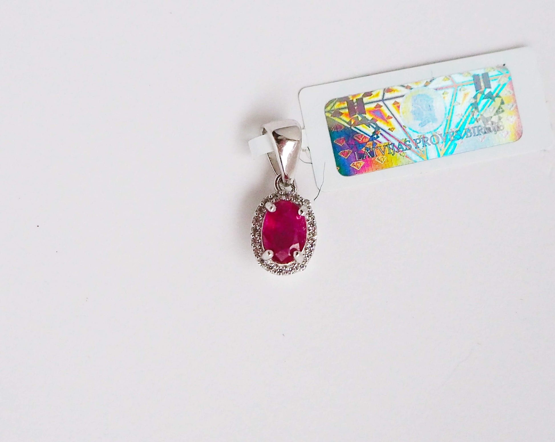 Натуральные драгоценные камни: Рубин (облагороженный) 0,8 карат - 1 шт. (0,47 см х 0,67 см) и Цирконы 20 шт. (0,1 см х 0,1 см).