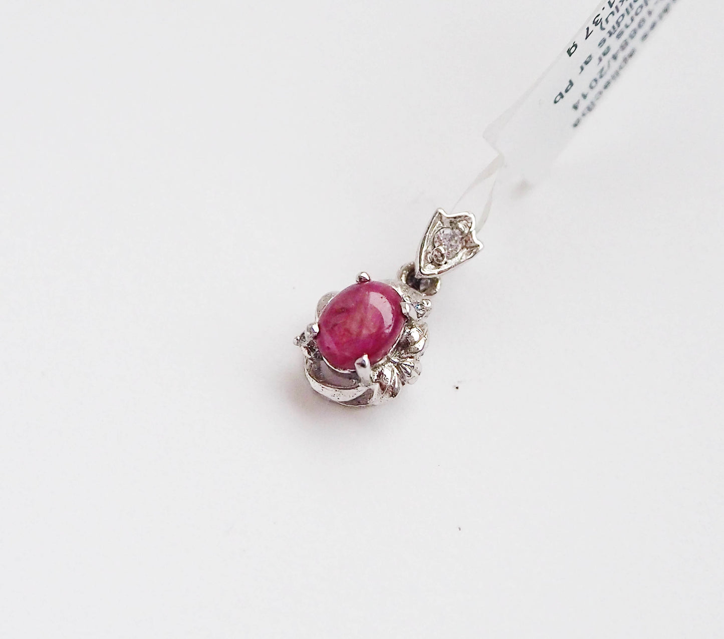 Натуральные драгоценные камни: Рубин (облагороженный) кабошон 1 карат - 1 шт. (0,5 см х 0,7 см) и Цирконы 3 шт. (0,1 см х 0,1 см - 0,15 см х 0,15 см).