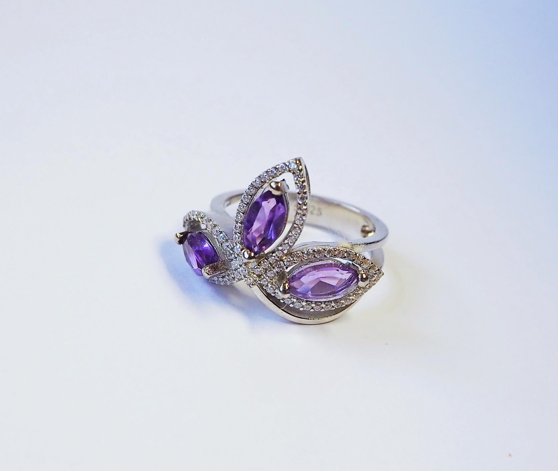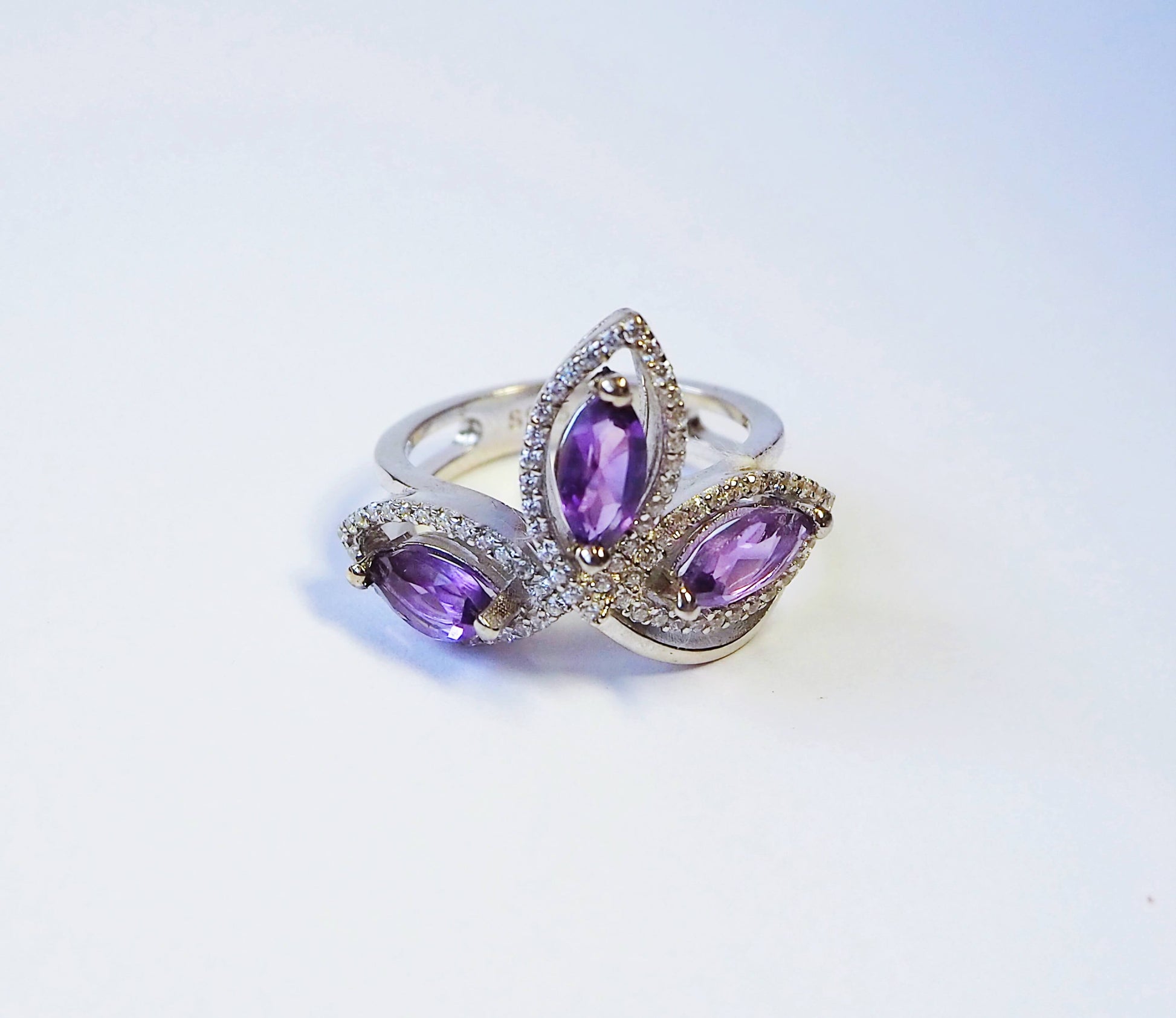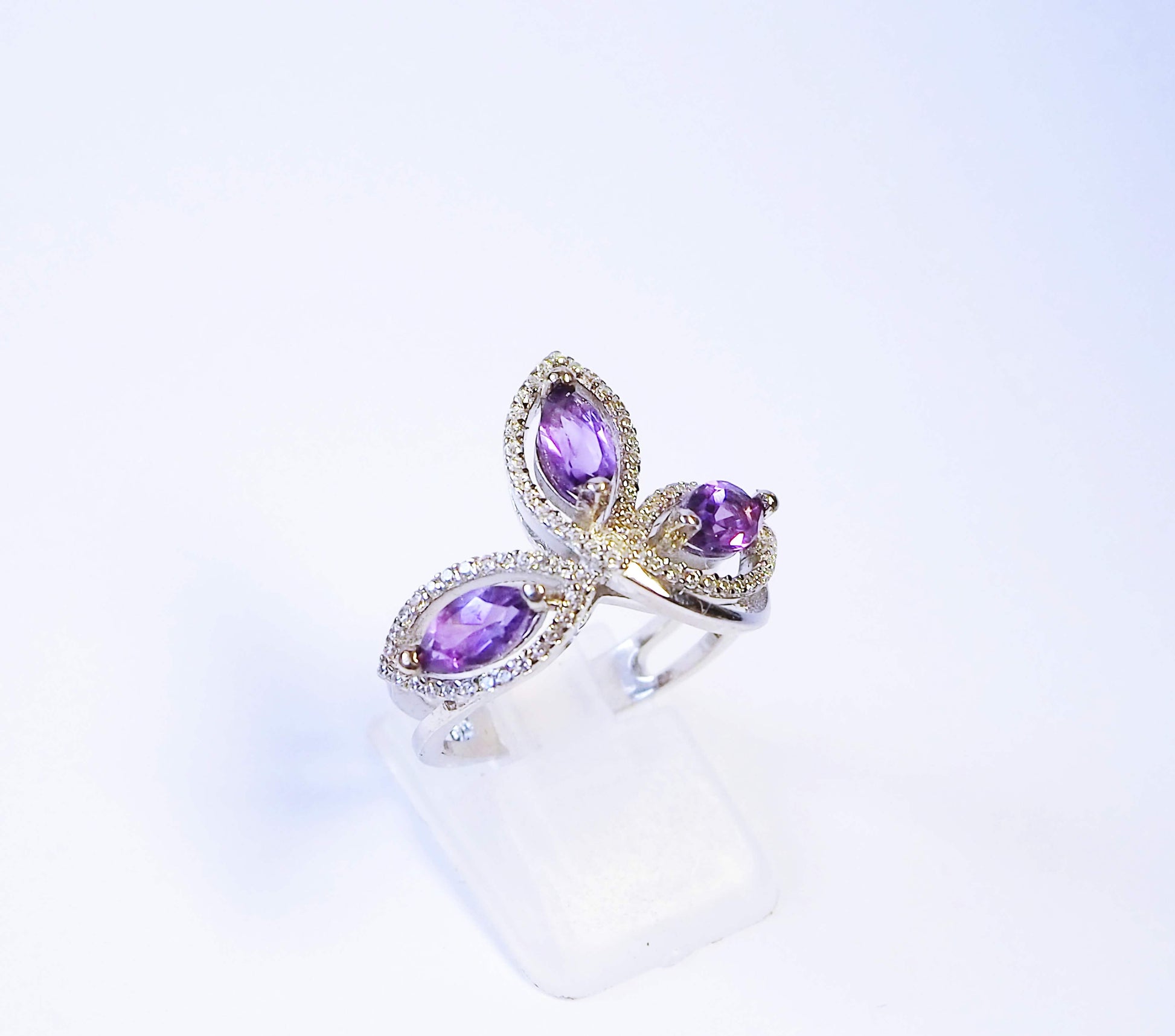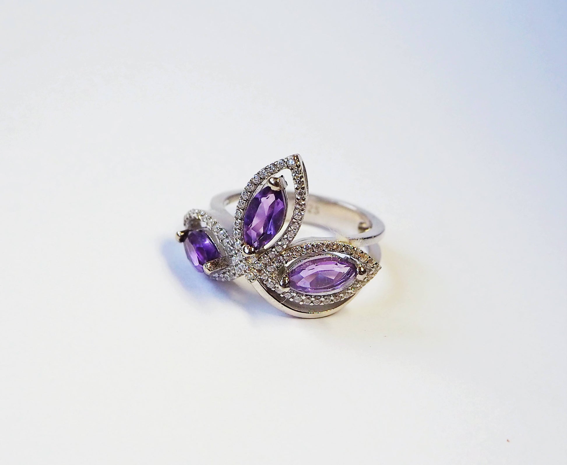 Серебряное кольцо с аметистом и цирконами