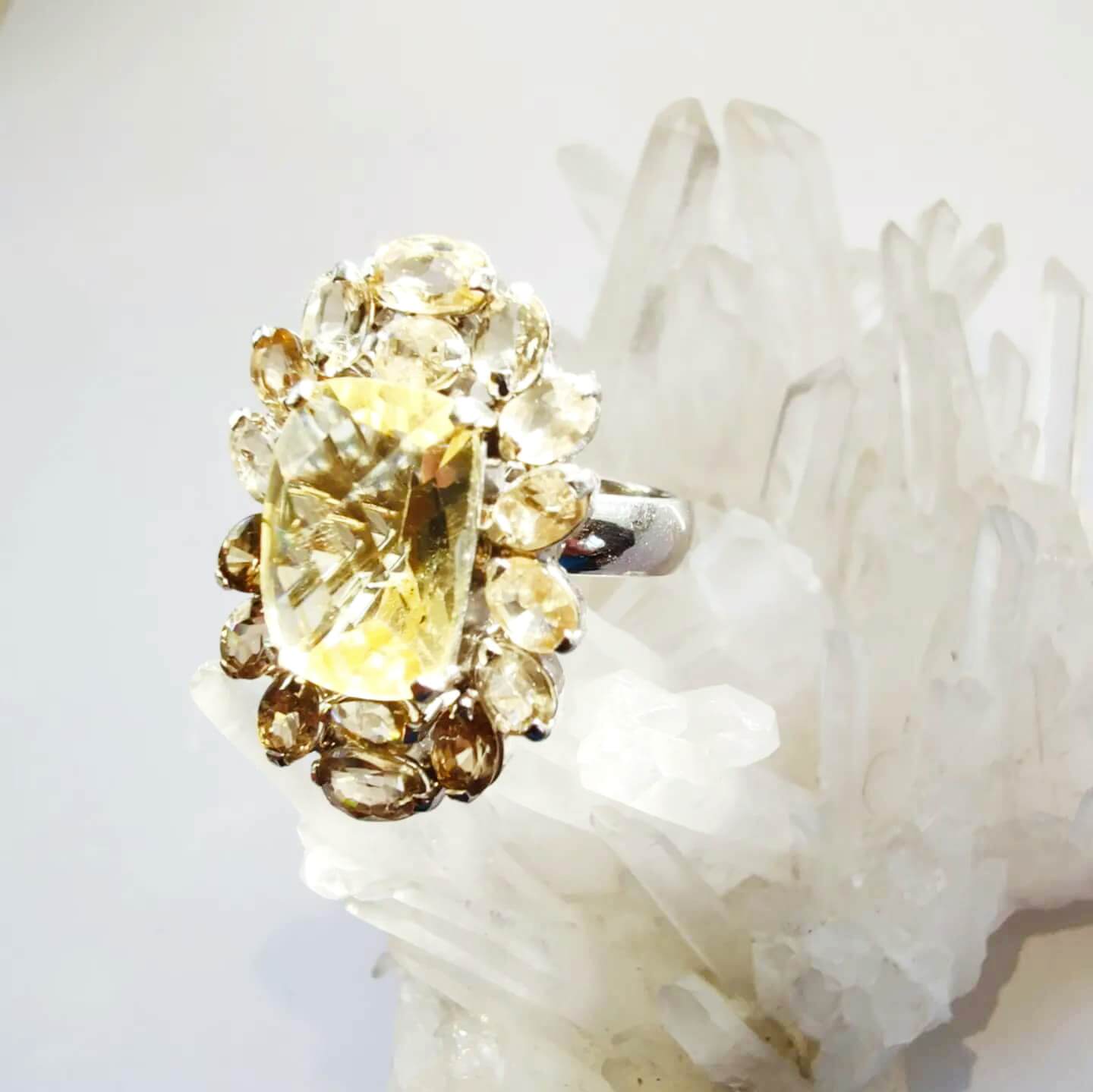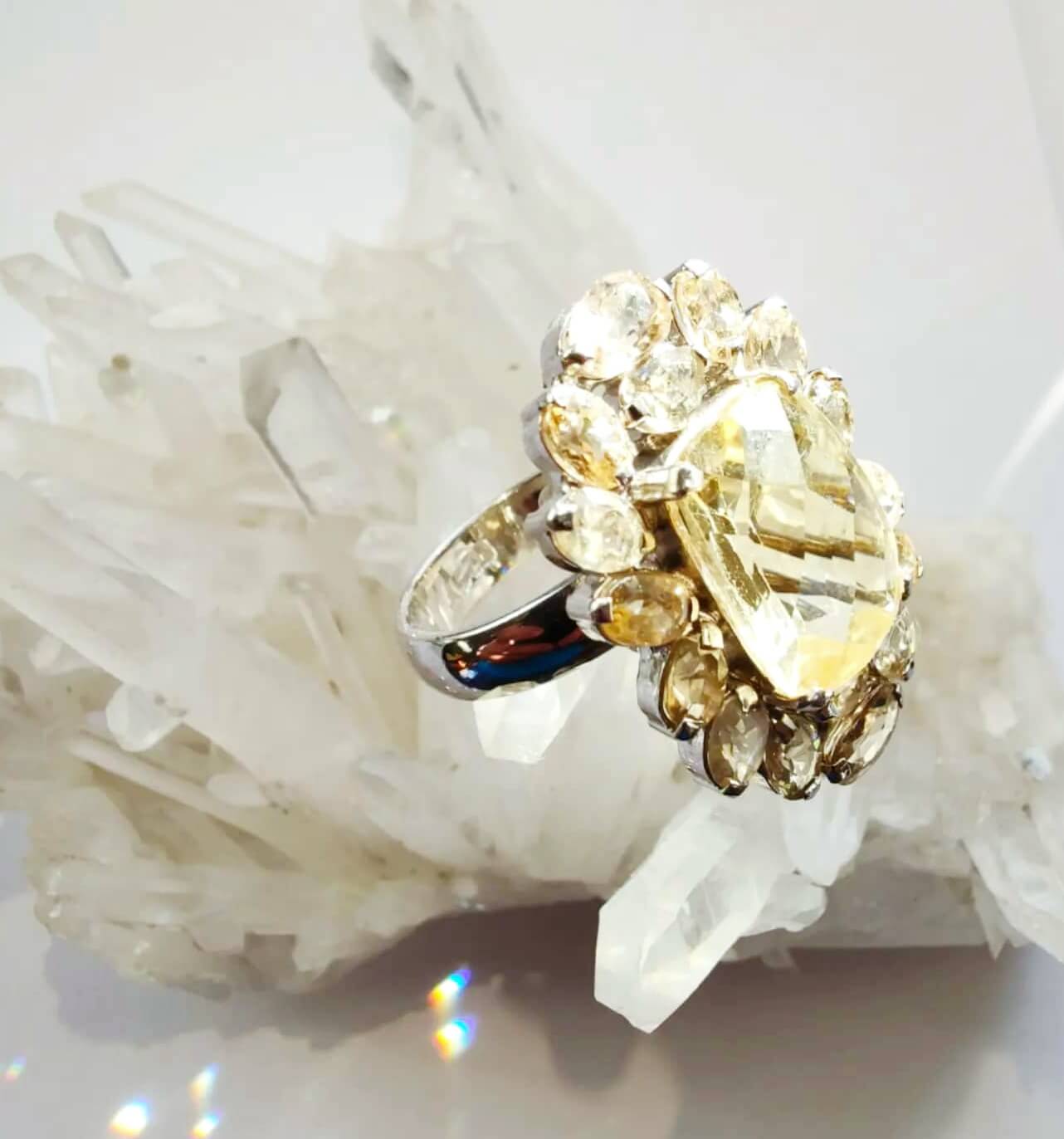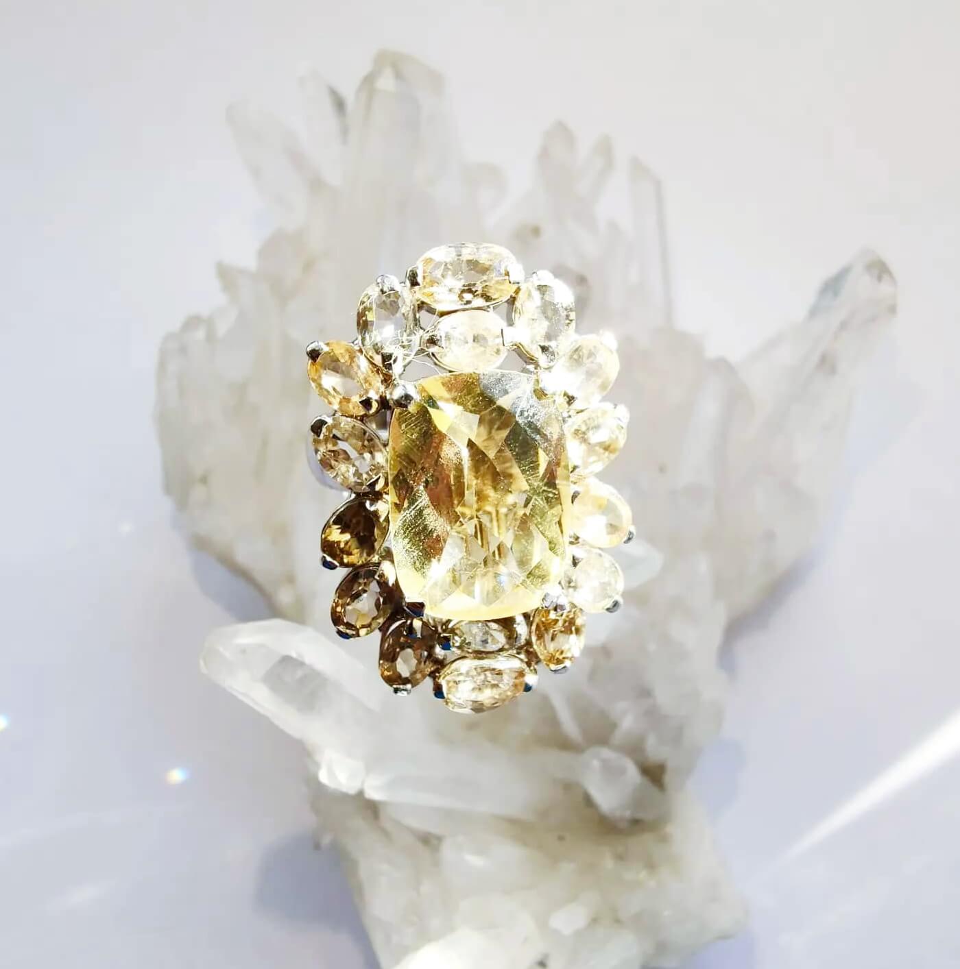 Серебряное кольцо с цитрином и дымчатым кварцем