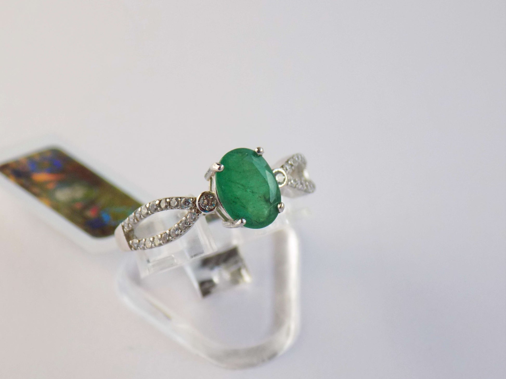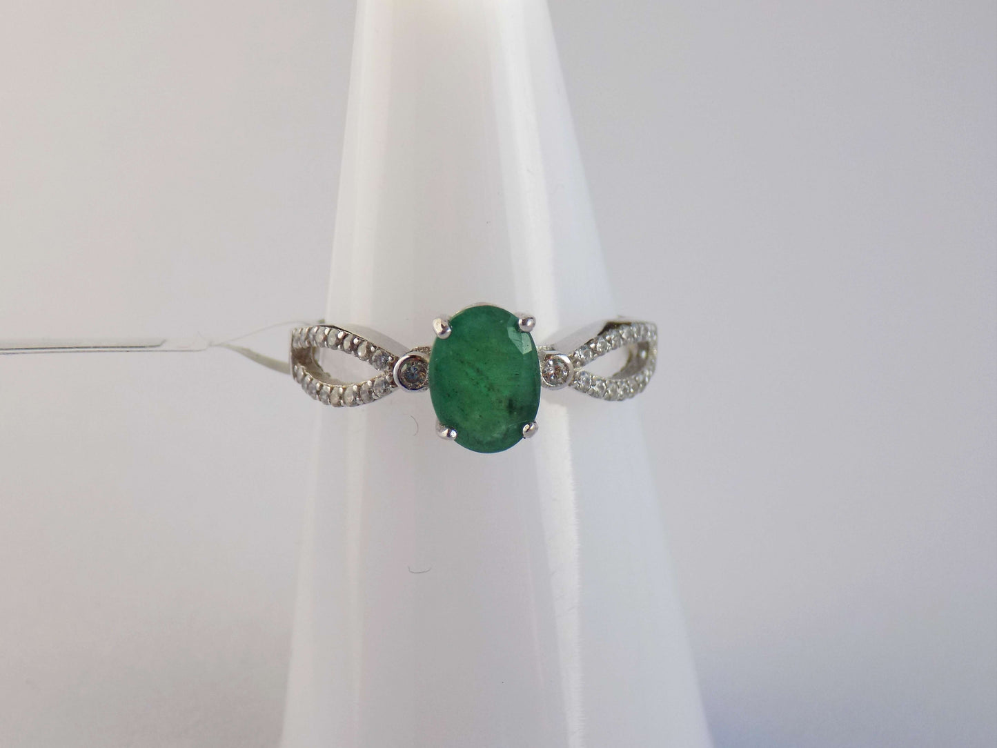Серебряное кольцо с Изумрудом и Цирконами