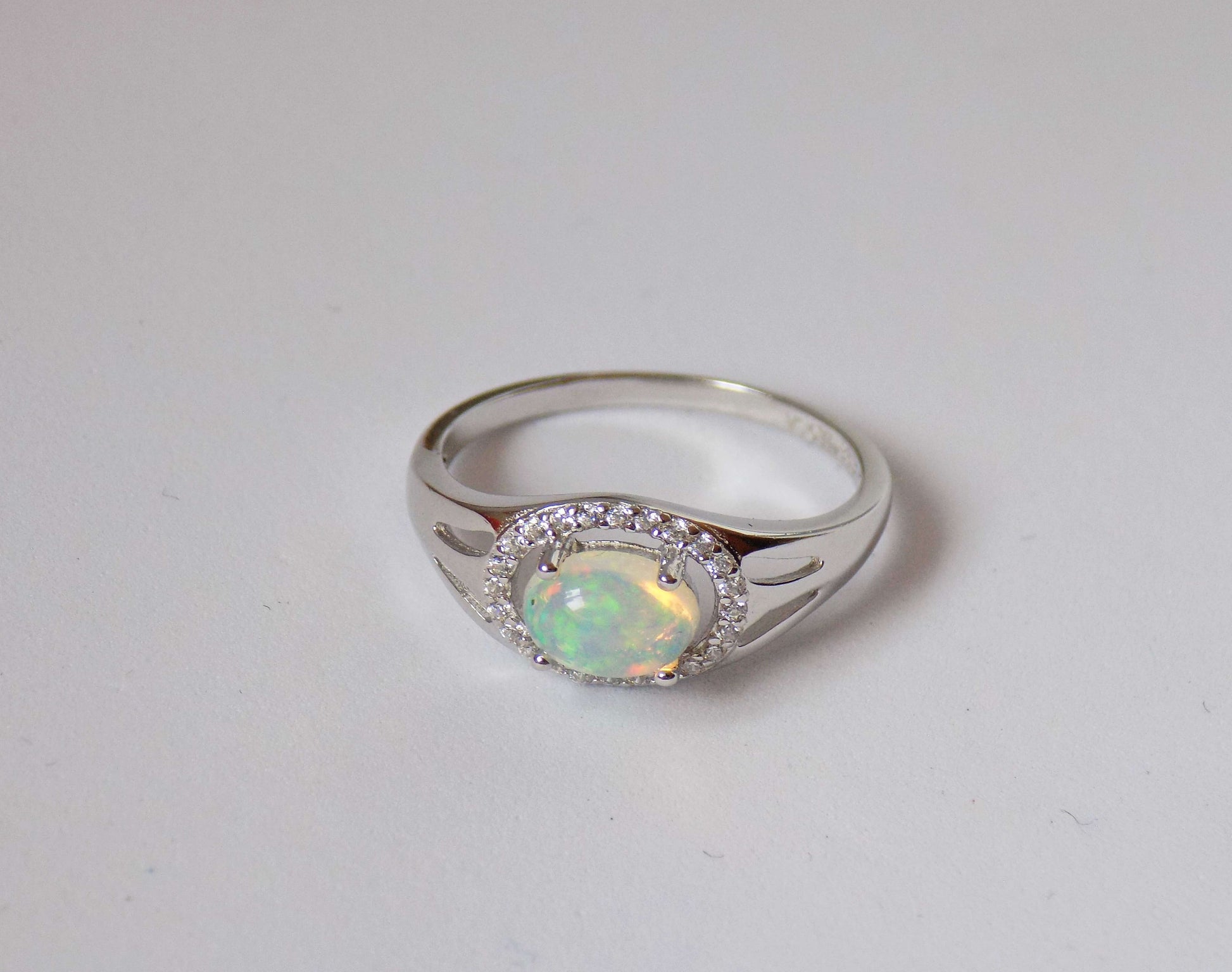 Серебряное кольцо с Эфиопским Опалом и Цирконами