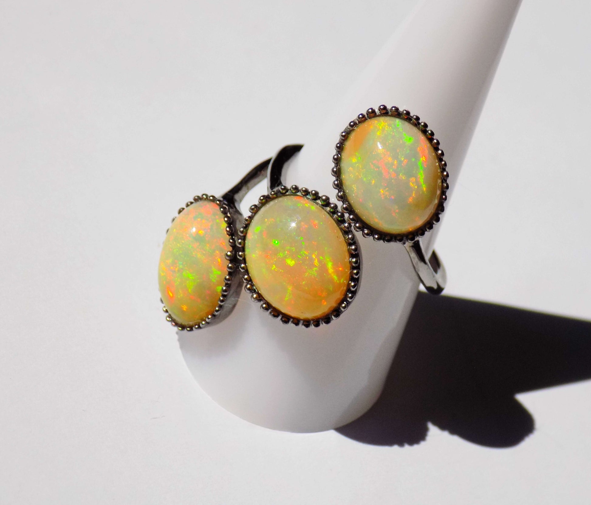 Натуральные драгоценные камни: Опалы (кабошоны) 3 шт. - 12,76 карат (1,1 см х 1,3 см), (1 см х 1,4 см), (1 см х 1,2 см).