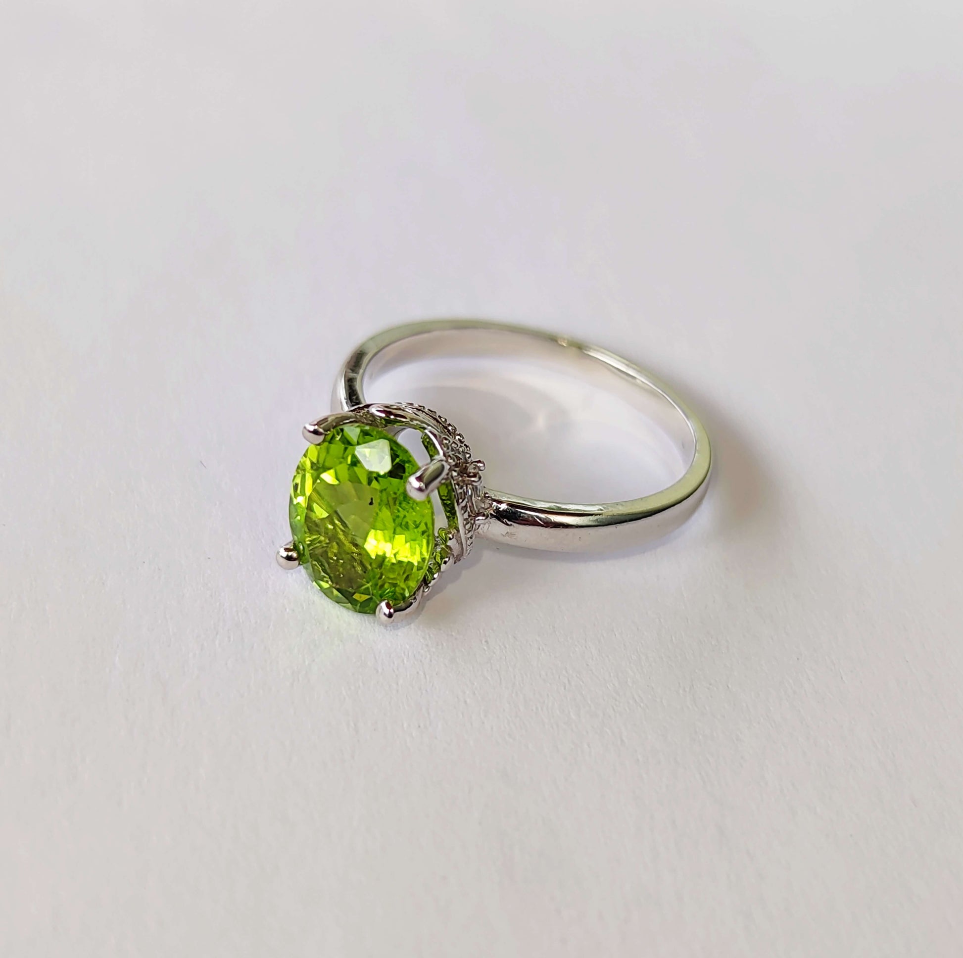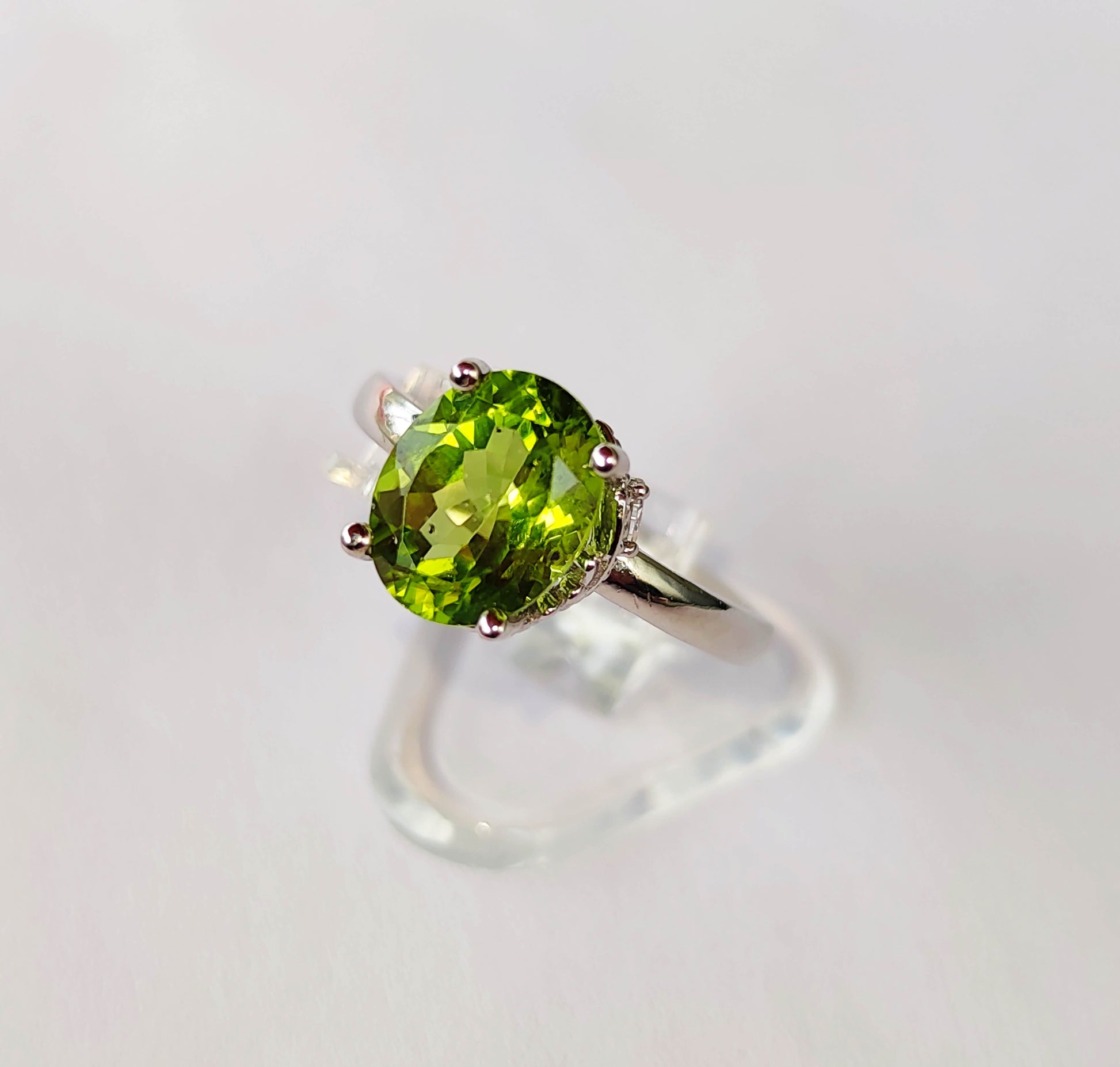 Природные камни: Хризолит 1 шт. (0.8 см х 0.8 см) и Цирконы 4 шт. (0.15 см х 0.15 см).
