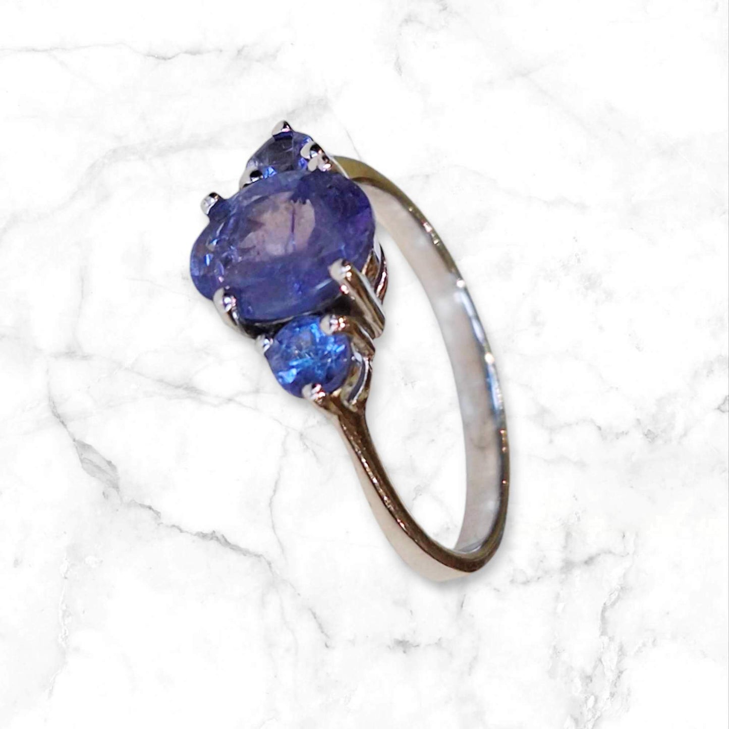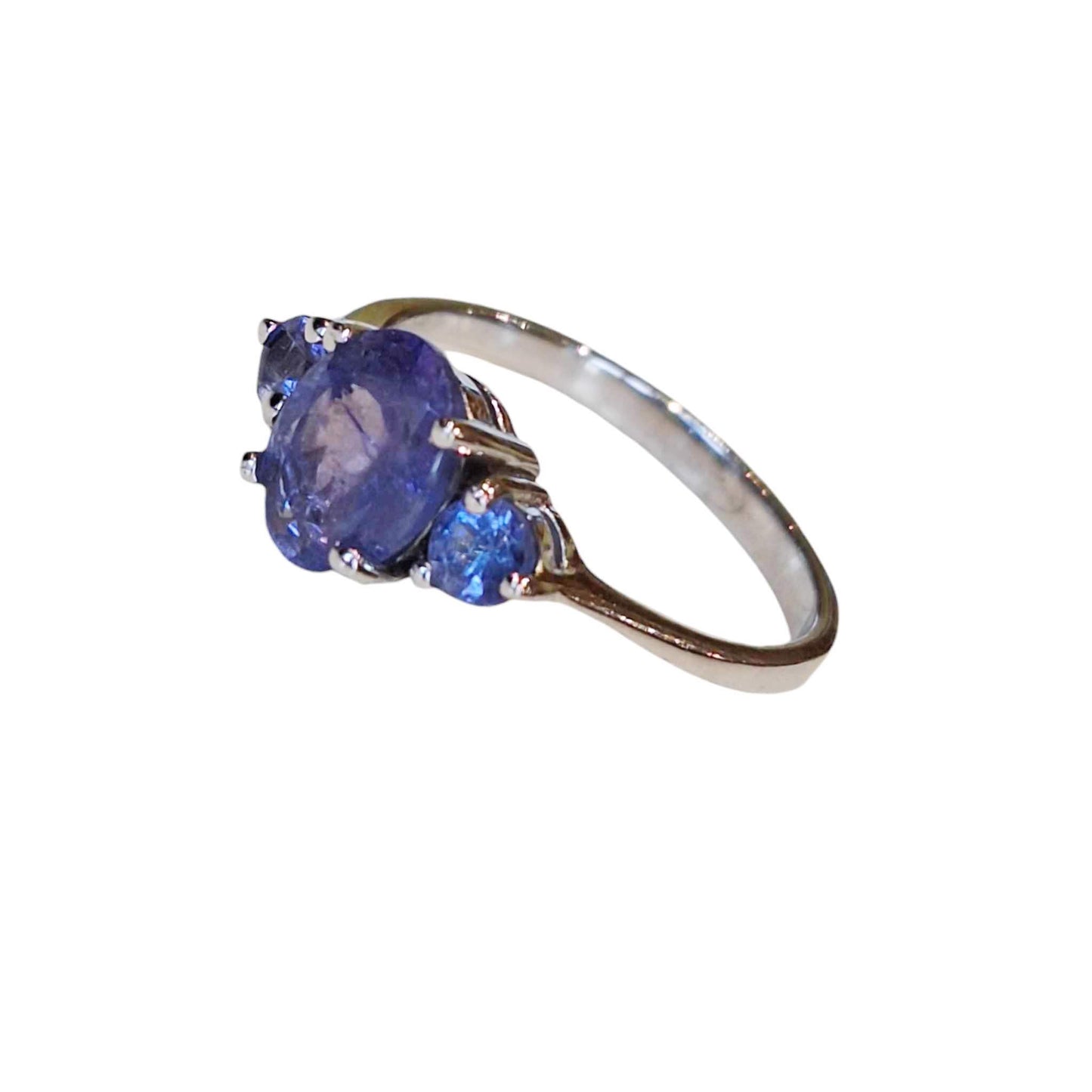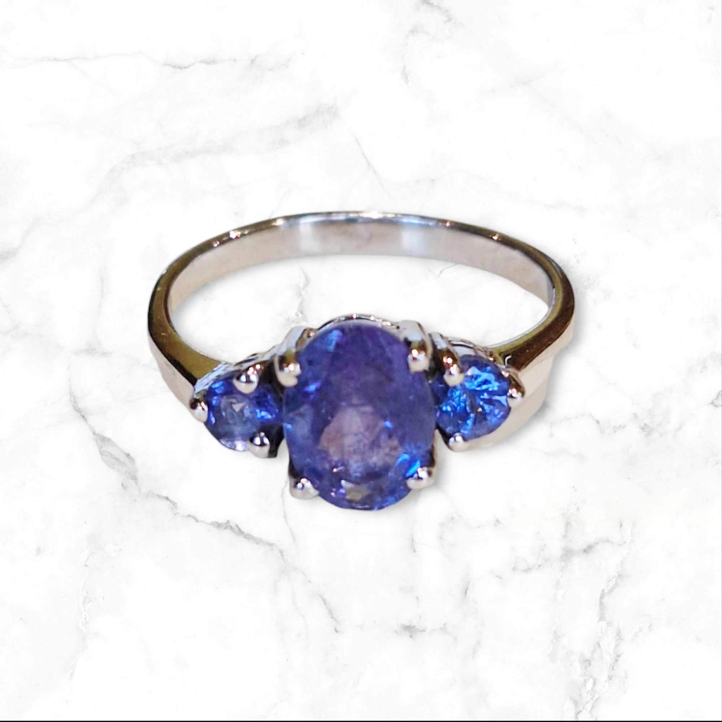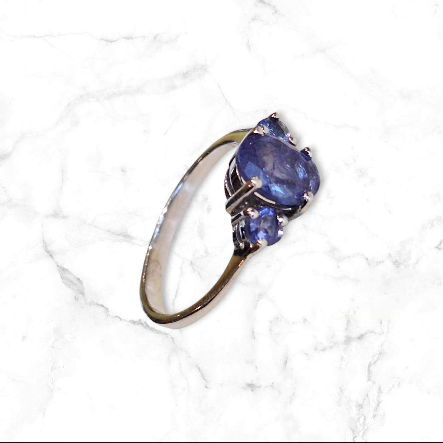 Embrace the serene beauty of a faceted violet tanzanites, set in sterling silver with a luxurious white rhodium finish. This ring's minimalistic and classic design offers a perfect blend of sophistication and poetic charm, making it a cherished piece.