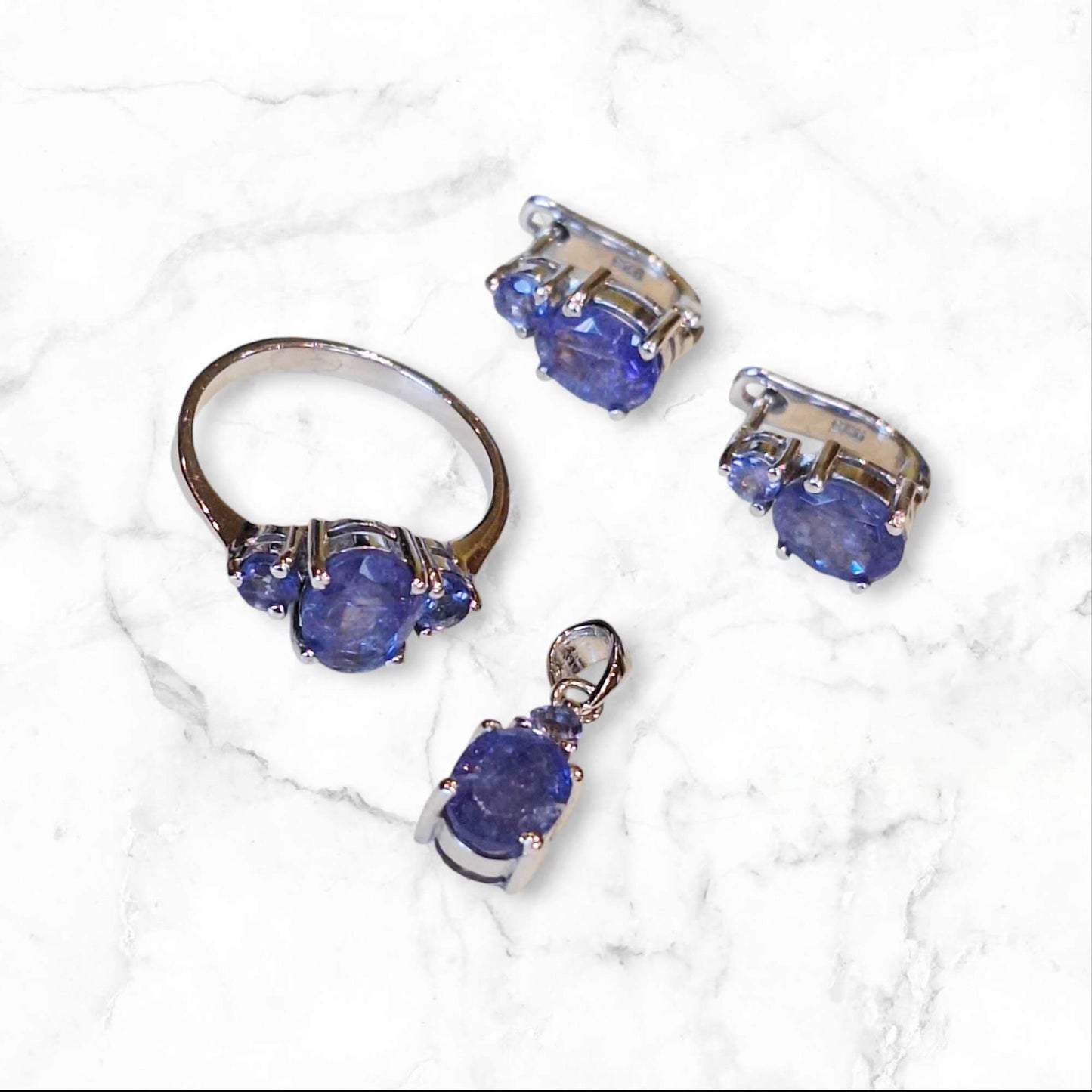 Natural gemstones: Tanzanites 1 pc. (0.6 cm x 0.8 cm), 2 pcs. (0.3 cm x 0.3 cm)